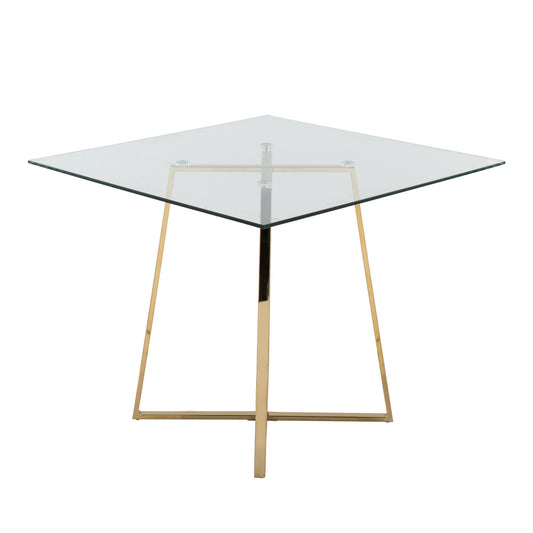 Majestic Office Furniture Contemporary/glam Square Dining Table with Gold Metal Legs and Clear Glass Top