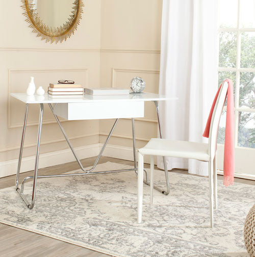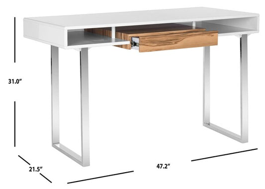 Paley 47'' W One Drawer Lacquer & Chrome Desk
