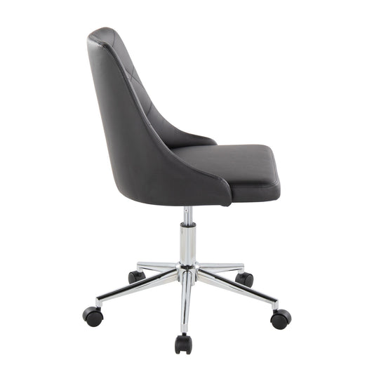 Majestic Office Furniture Contemporary Swivel Task Chair with Casters in Chrome Metal and Black Faux Leather