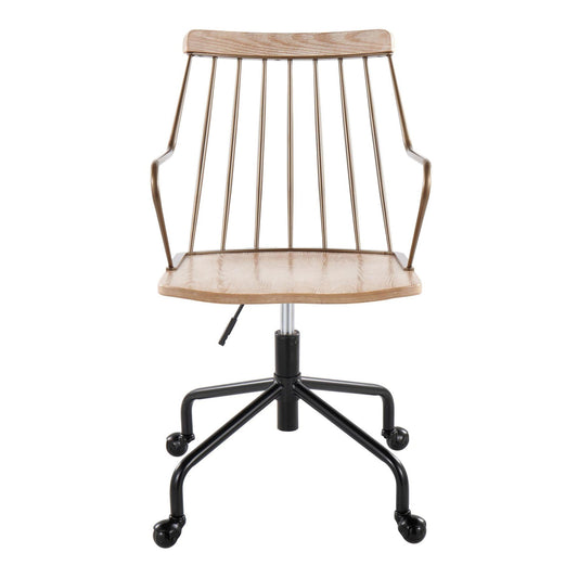Majestic Office Furniture Farmhouse Adjustable Office Chair in Black Metal, Antique Copper and White Washed Wood
