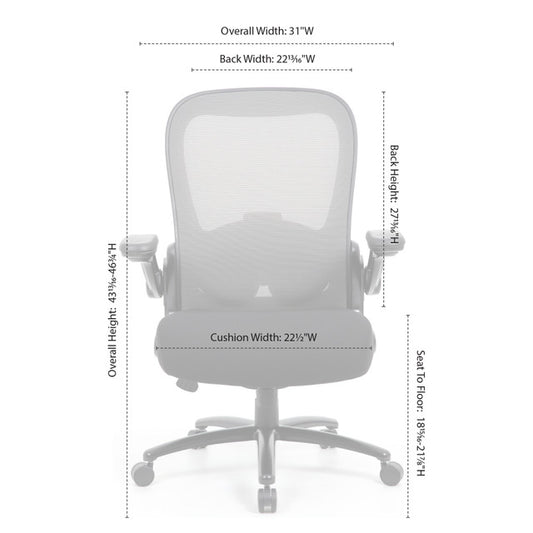 OfficeSource | Ryde | Big & Tall High Back Mesh Task Chair with Flip Arm