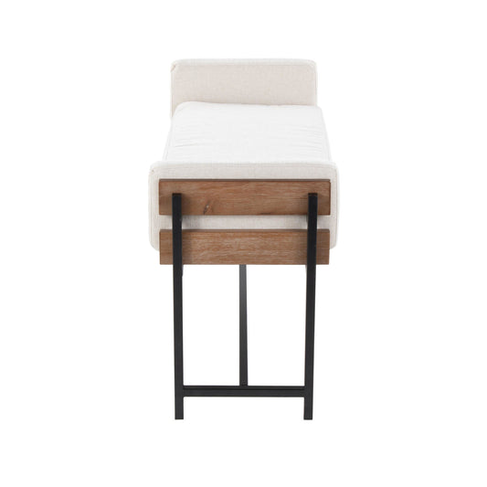 Majestic Office Furniture 18" Farmhouse Bench with Black Metal, Brown Wood and Cream Fabric