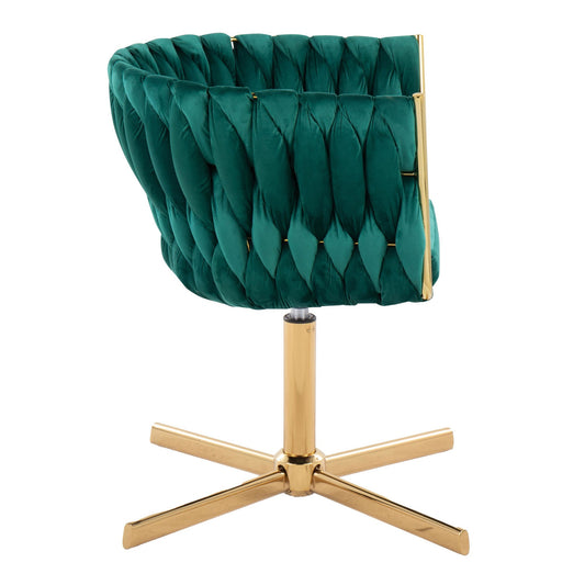 Majestic Office Furniture Renee Contemporary Swivel Accent Chair with X-Pedestal Base in Gold Metal and Green Velvet