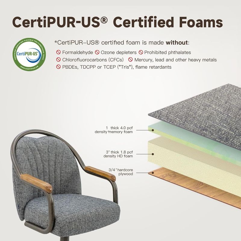 Experience the ultimate comfort with Chromcraft chairs. Cushioned seats and backs feature CertiPUR-US certified foams, including one full inch of memory foam. Designed to provide exceptional support for your hips and back while sitting, the foam has resilience and is durable. Sit back, relax, personalize your comfort, and indulge in unrivaled comfort for years to come.