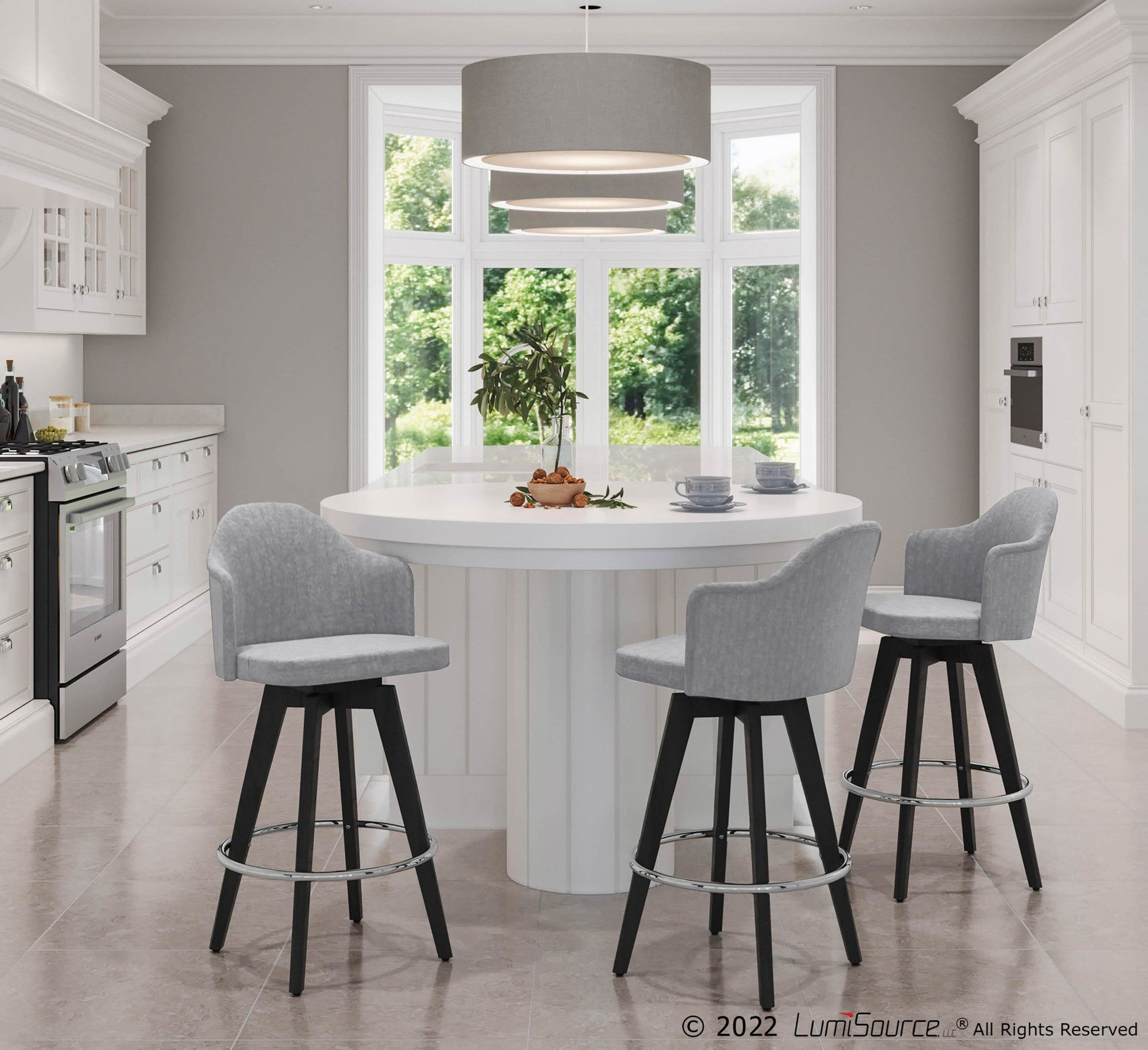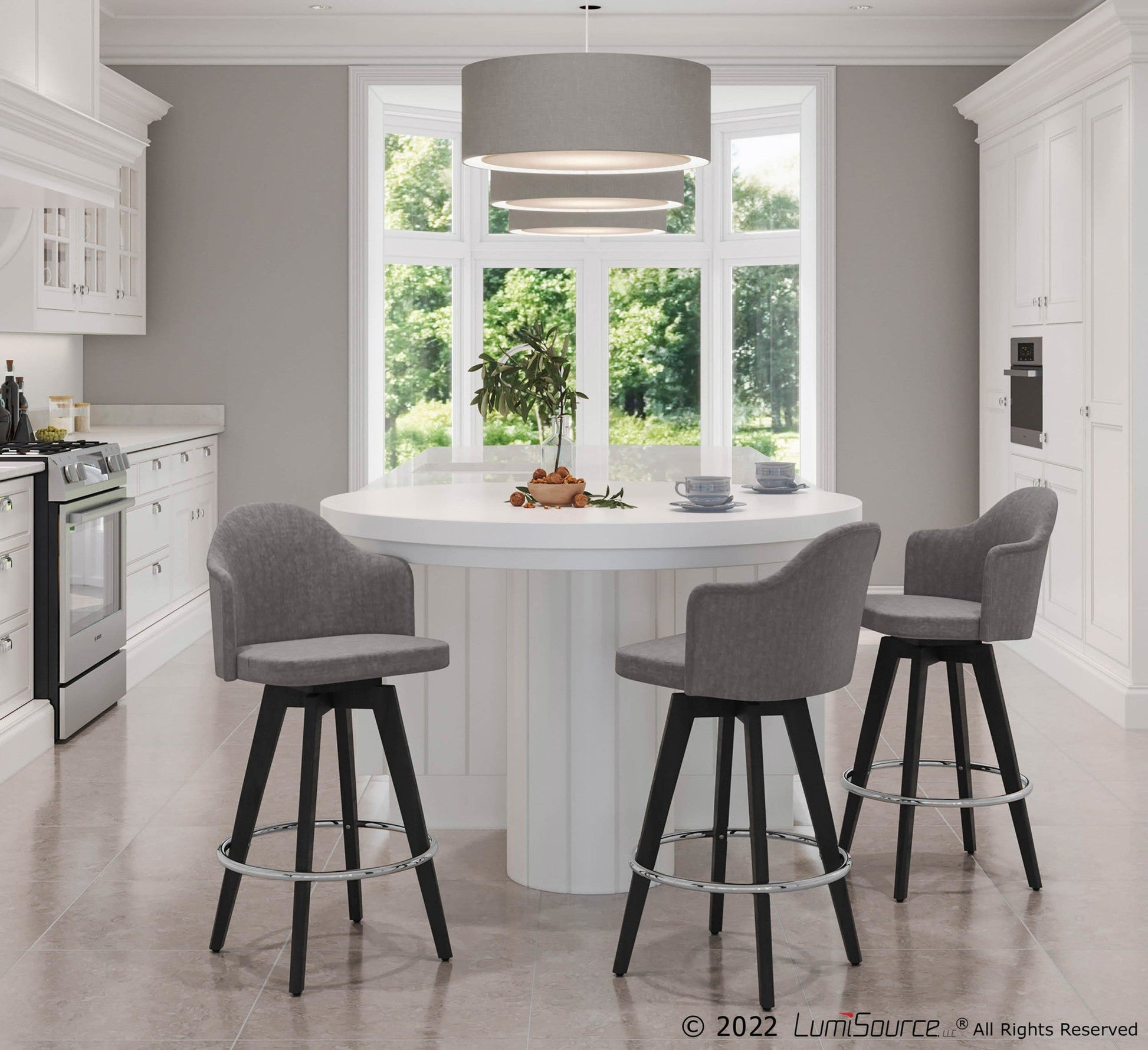 The contemporary charm of the Counter Stool combines sturdy construction with aesthetic appeal. Sleek fabric upholstery is accented by stylish wood legs. Available in a variety of color and pattern combinations.