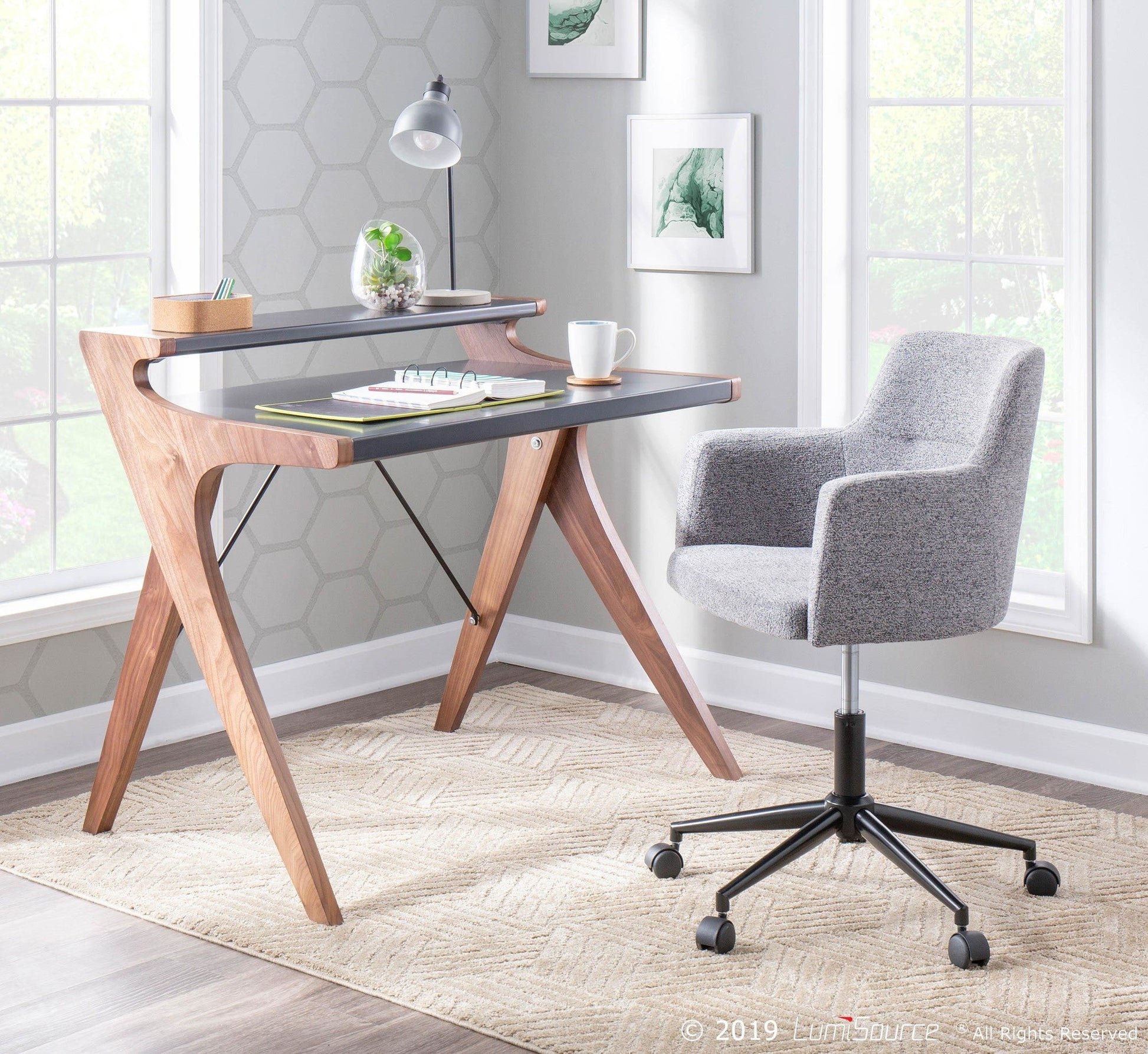 Create a beautiful workspace you can call your own with the Desk by Majestic Office Furniture. Featuring a walnut wood frame, grey wood top, this two-tier contemporary design is perfect for keeping your space organized and getting work done. Perfect for large or small spaces and available in a variety of finishes, choose the one that suits your space the best.