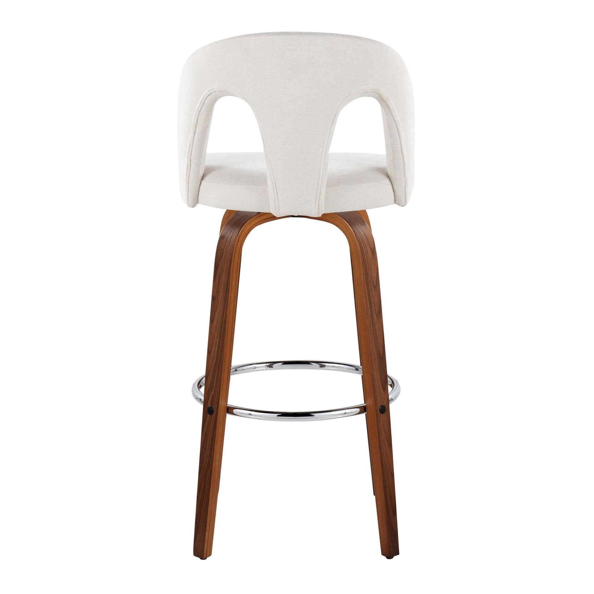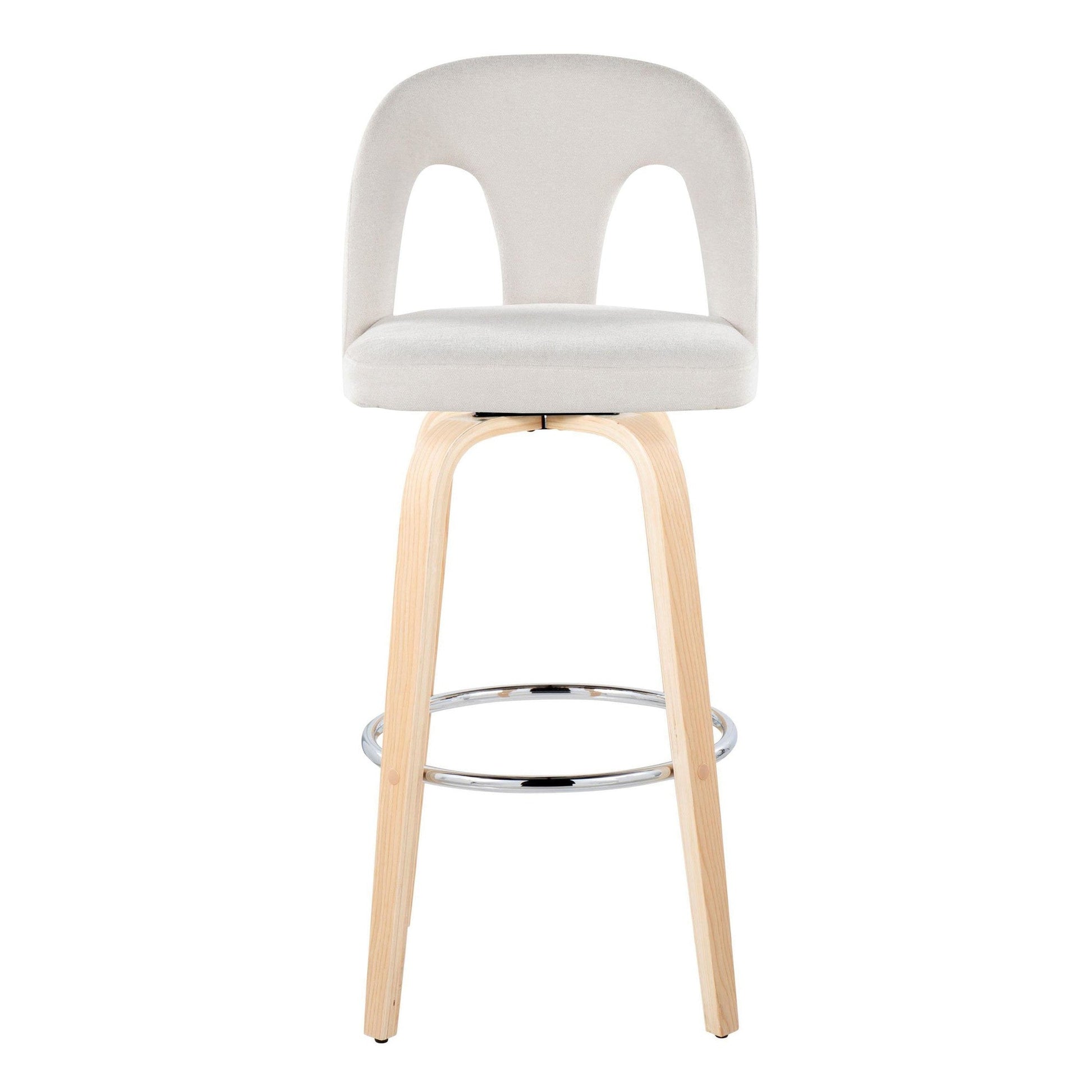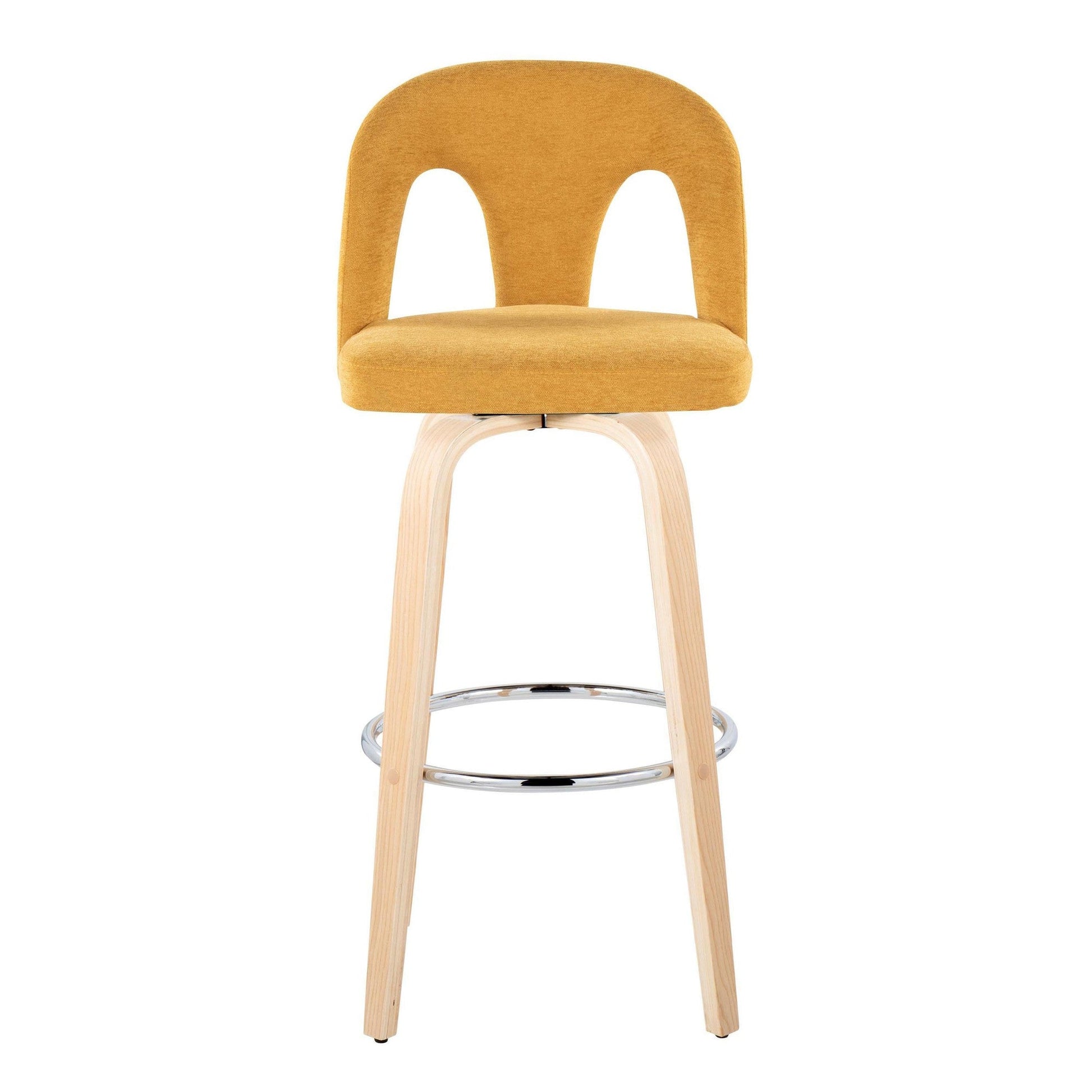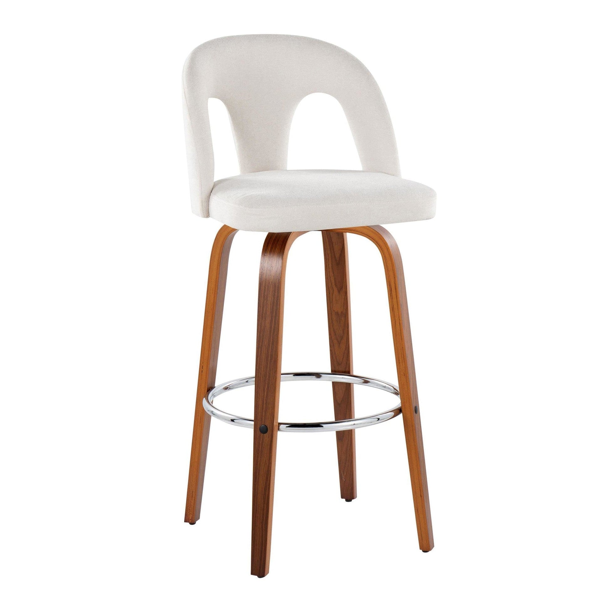 Bent wood legs with round chrome footrest
