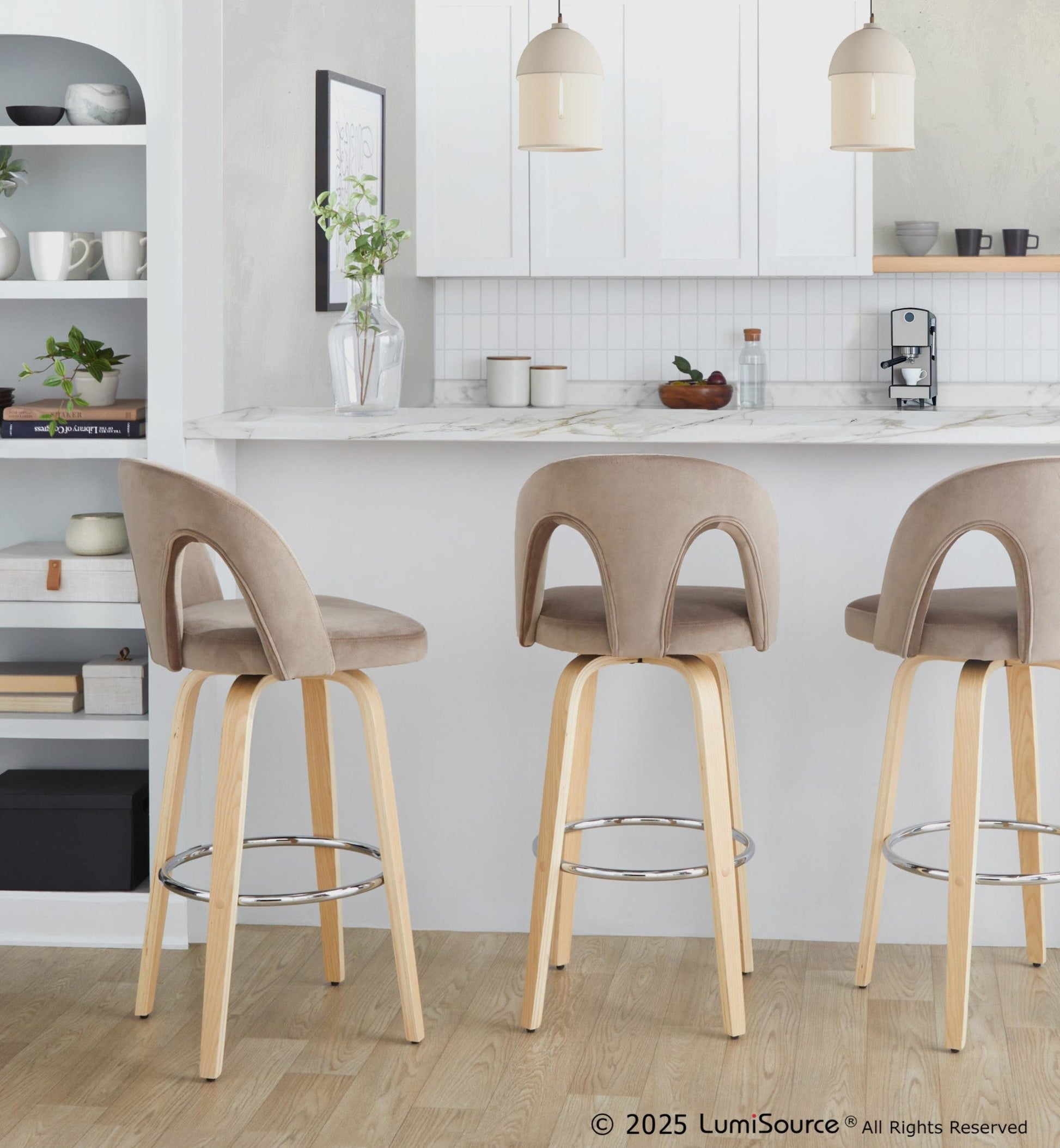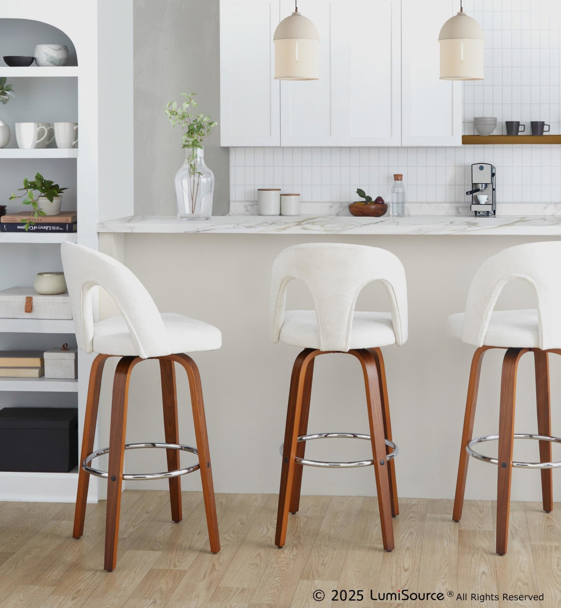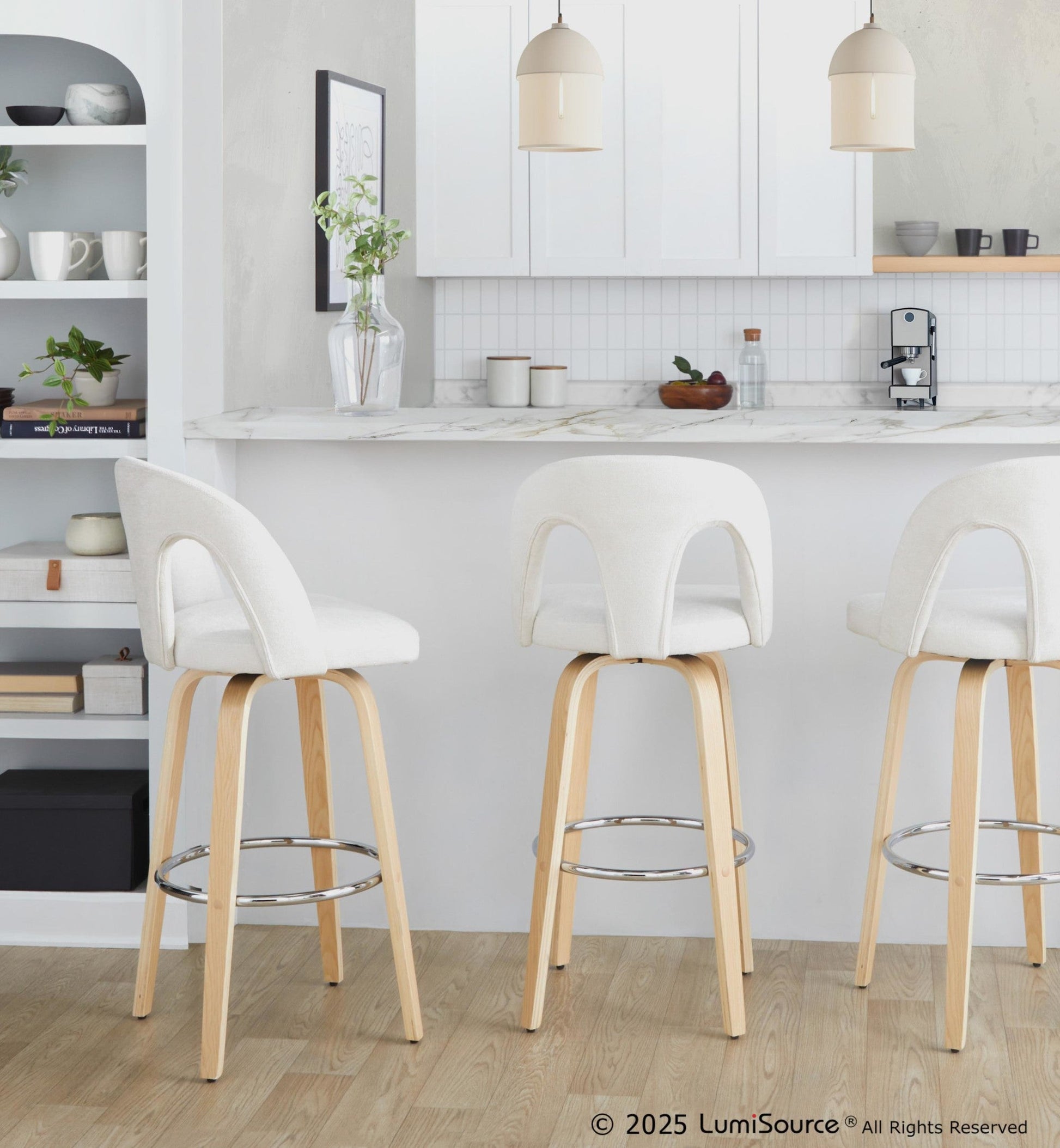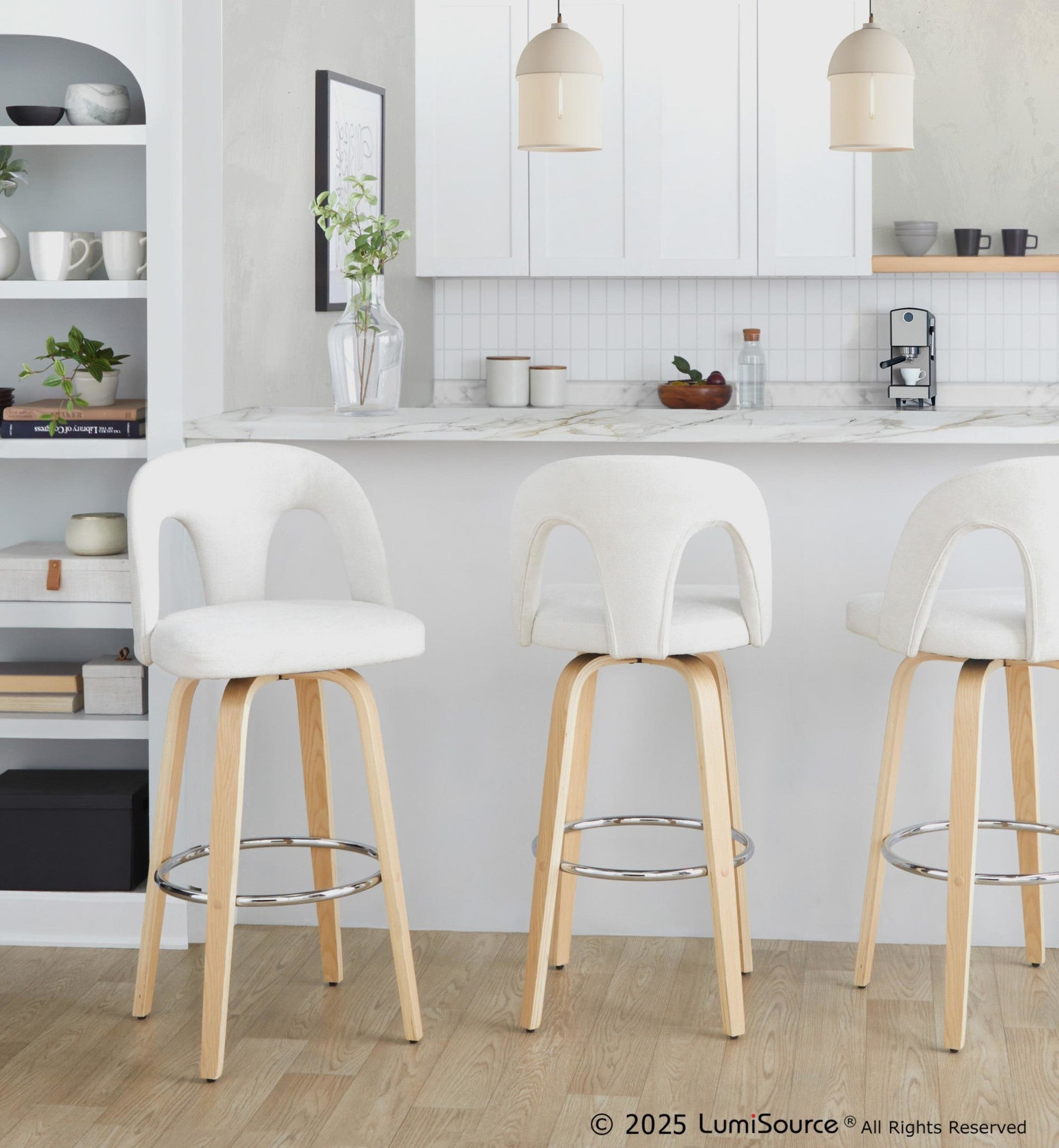 Bent wood legs with round chrome footrest