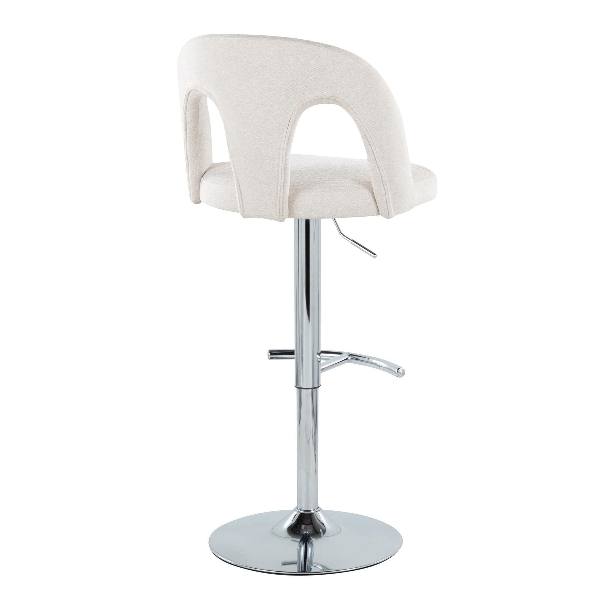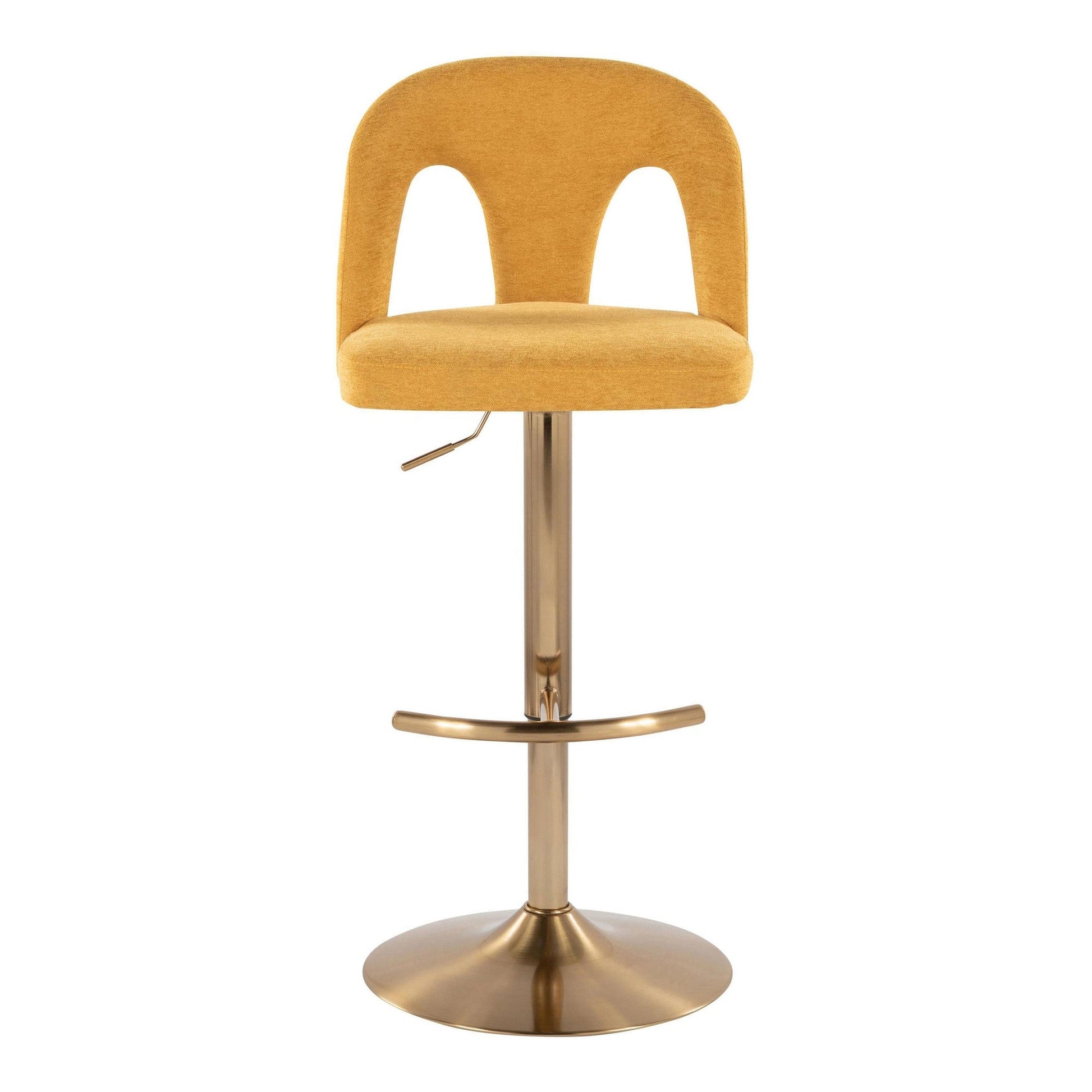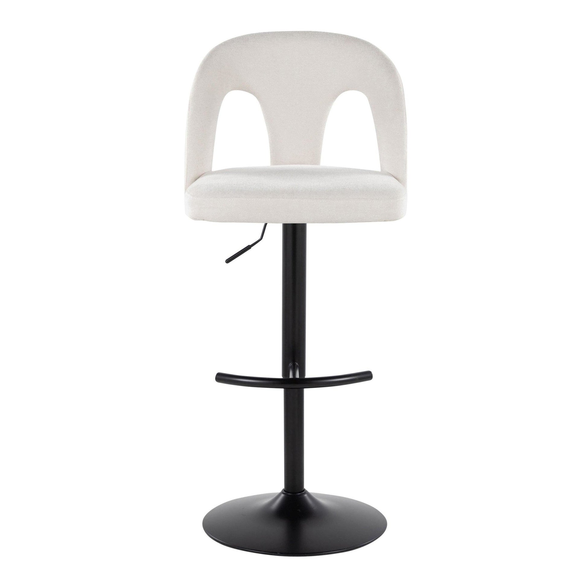 Introducing the Upholstered Adjustable Barstool by Majestic Office Furniture, where contemporary design meets unmatched comfort. Featuring a padded upholstered seat with a stylish arched cut-out backrest and a sleek metal base, this stool is the perfect eye catching piece to elevate your kitchen or bar area. A unique visual style that doesn't compromise comfort! Available in various color options, choose the one that suits your space best.
