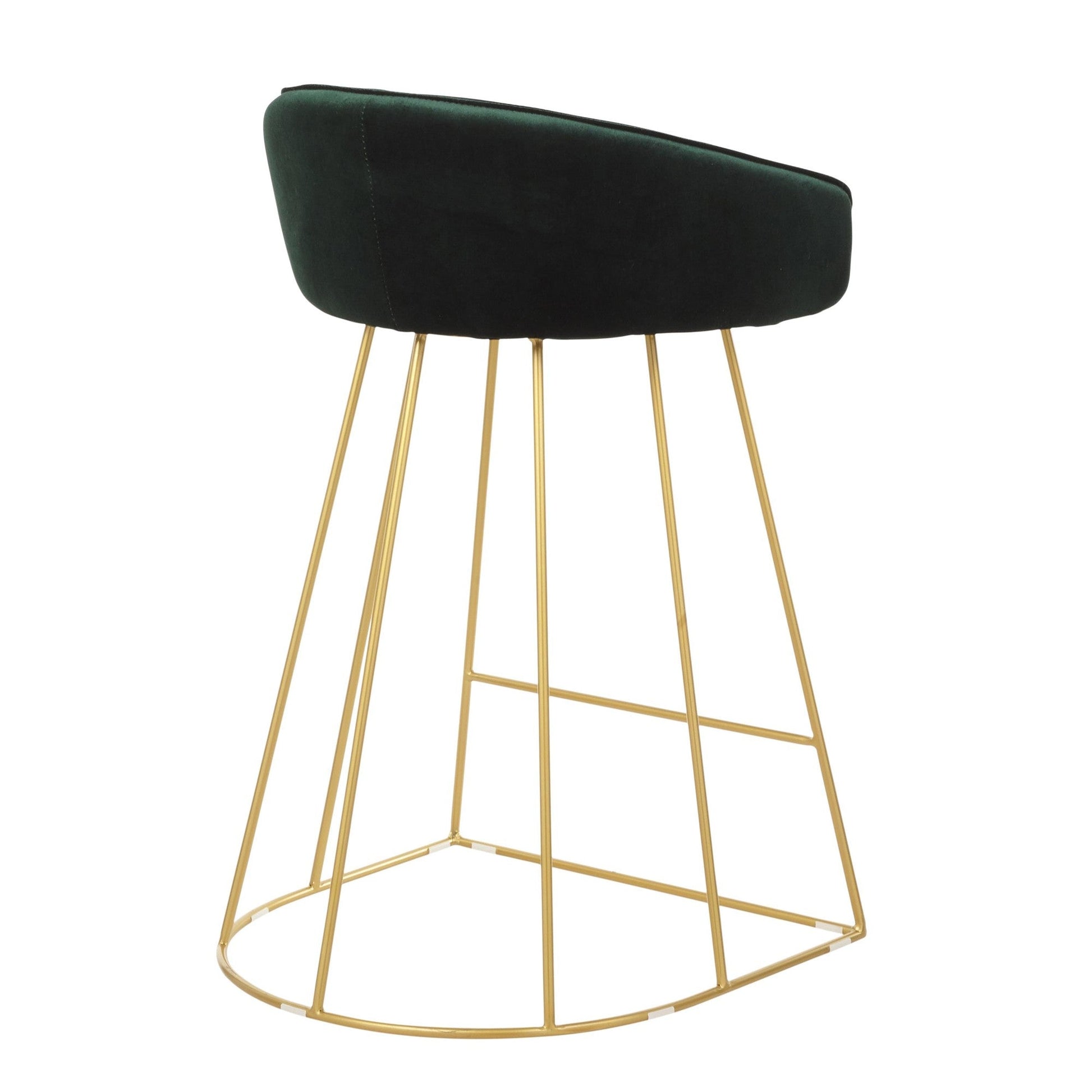 Opulent and confidently contemporary - that's the Counter Stool by Majestic Office Furniture. Features a captivating cage-like gold tone metal base with footrest, subtle curved backrest, and an elegant upholstered seat available in various modern colors. Definitely a bold touch of fancy for your seating needs.
