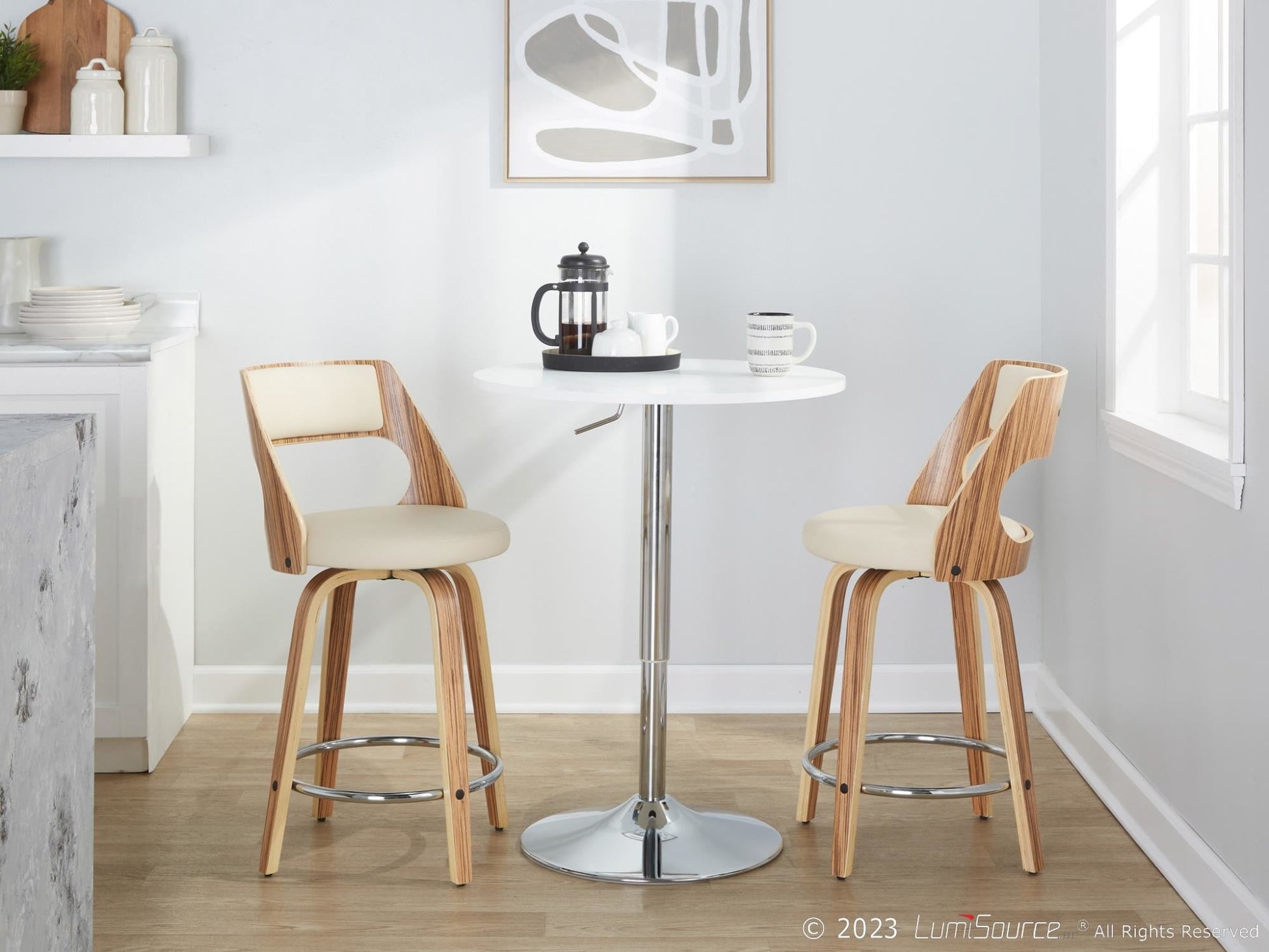 Step into the future of kitchen design with the modern appeal of the Fixed-Height Counter Stool by Majestic Office Furniture. A curved wood frame, footrest and swivel seat are smartly juxtaposed by a traditional high cushioned backrest and seat. Available in several color combinations.