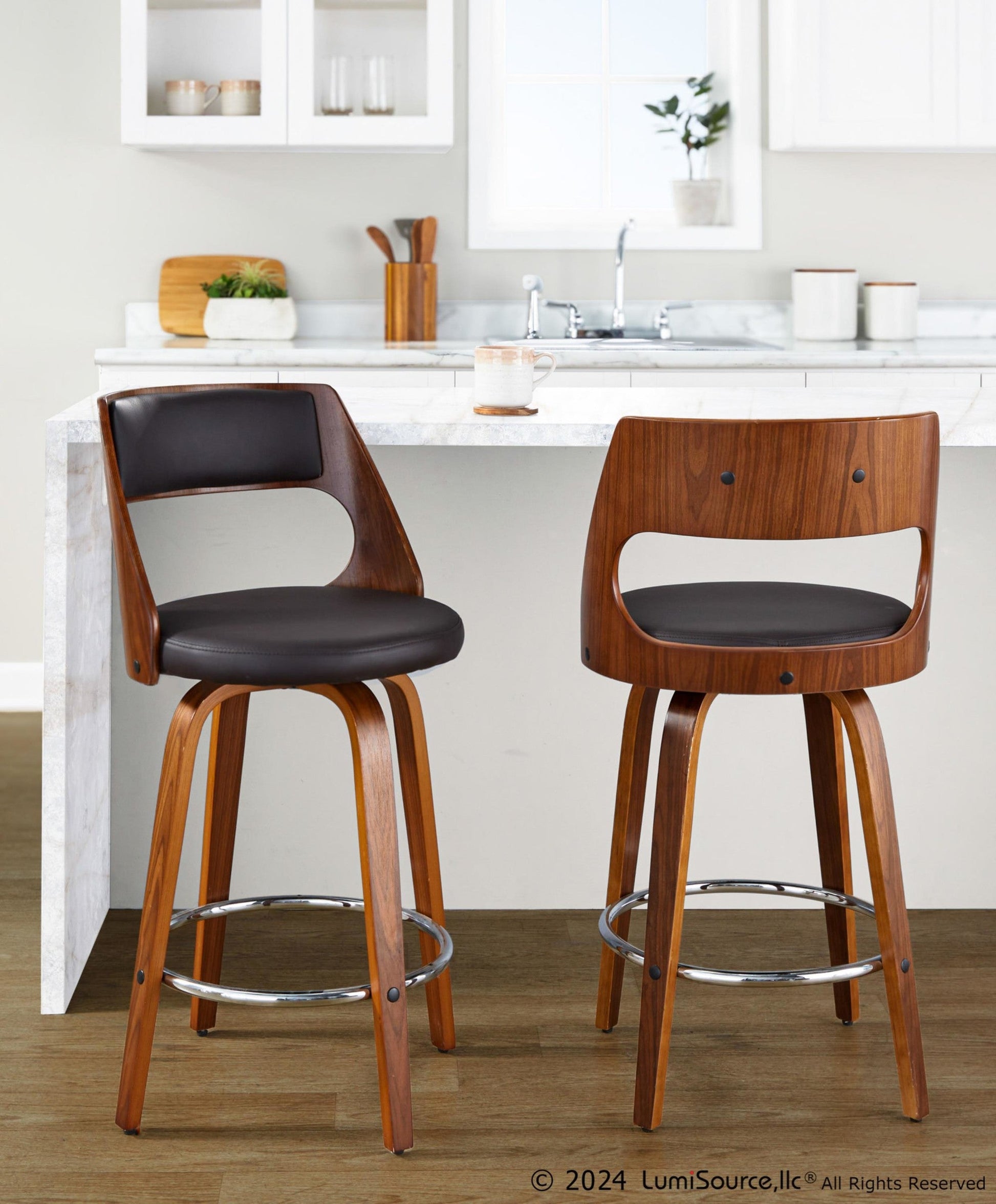 Step into the future of kitchen design with the modern appeal of the Fixed-Height Counter Stool by Majestic Office Furniture. A curved wood frame, chrome footrest, and swivel seat is juxtaposed by a traditional high cushioned and upholstered faux leather backrest and seat. Available in a variety of upholstery colors, choose the one that fits your space best.