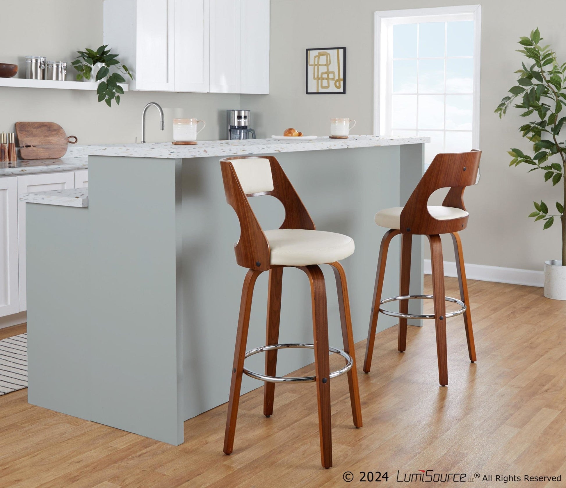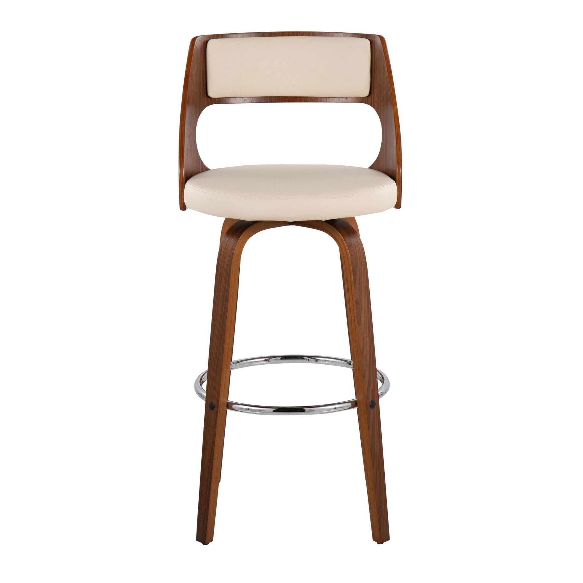 Step into the future of kitchen design with the modern appeal of the Barstool by Majestic Office Furniture. A curved wood frame, chrome footrest, and swivel seat is juxtaposed by a traditional high cushioned backrest and seat.