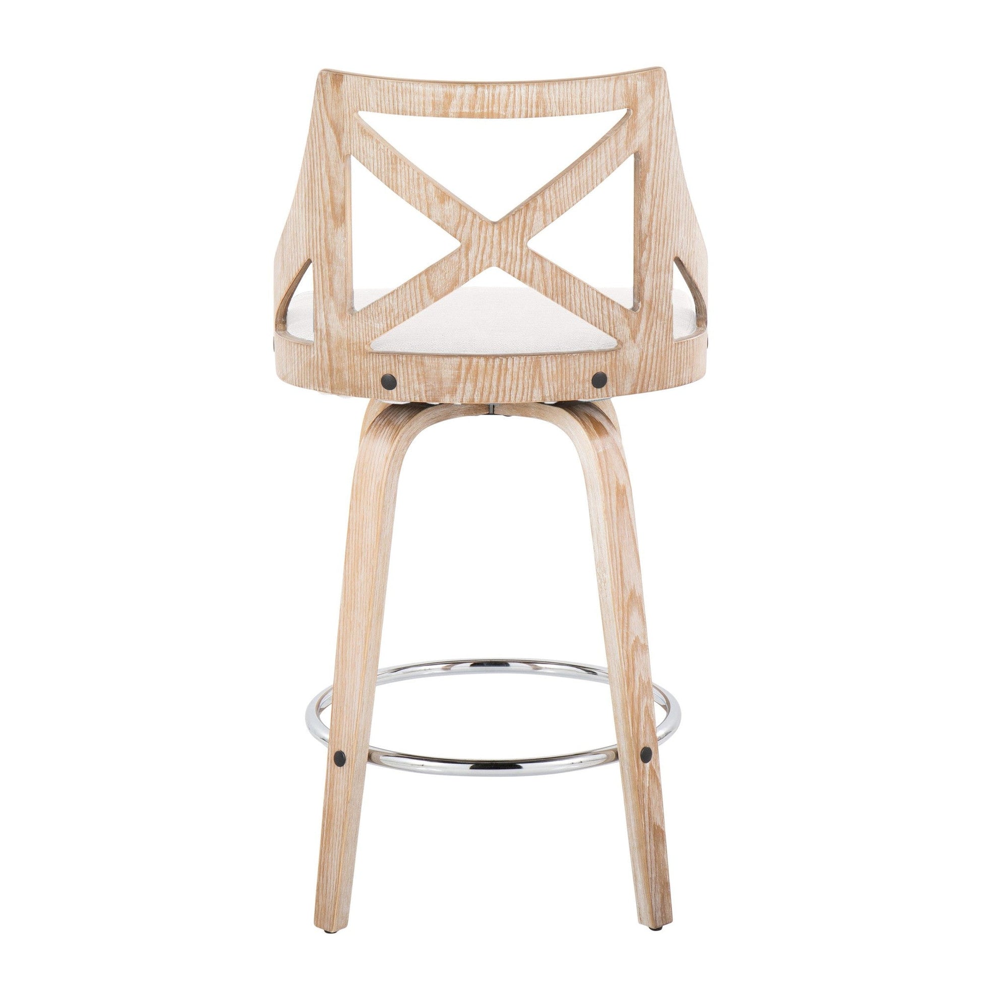 Spruce up your dining area with the Fixed-Height Counter Stool by Majestic Office Furniture. With elegant styling, the backrest shows off an X-shaped accent. Featuring white wash wood, fabric upholstery, and a swivel seat, the Counter Stool beautifully straddles the line between traditional and farmhouse styles.