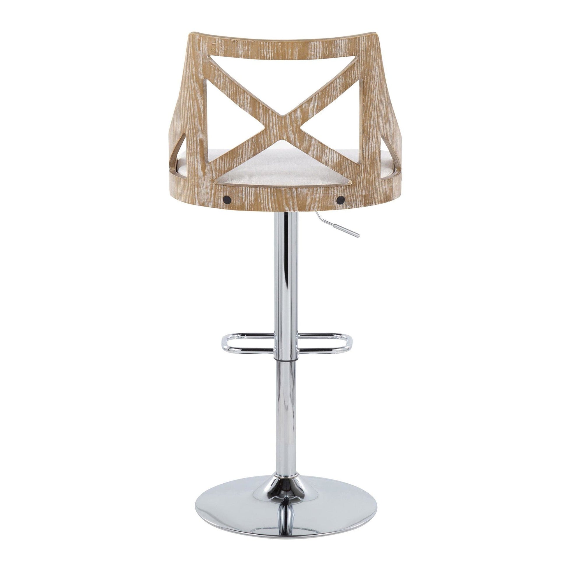 Spruce up your dining area with the Adjustable Barstool by Majestic Office Furniture. With elegant styling, the backrest shows off an X-shaped accent. Featuring white wash wood, fabric upholstery, and a swivel seat, the Barstool beautifully straddles the line between traditional and farmhouse styles.