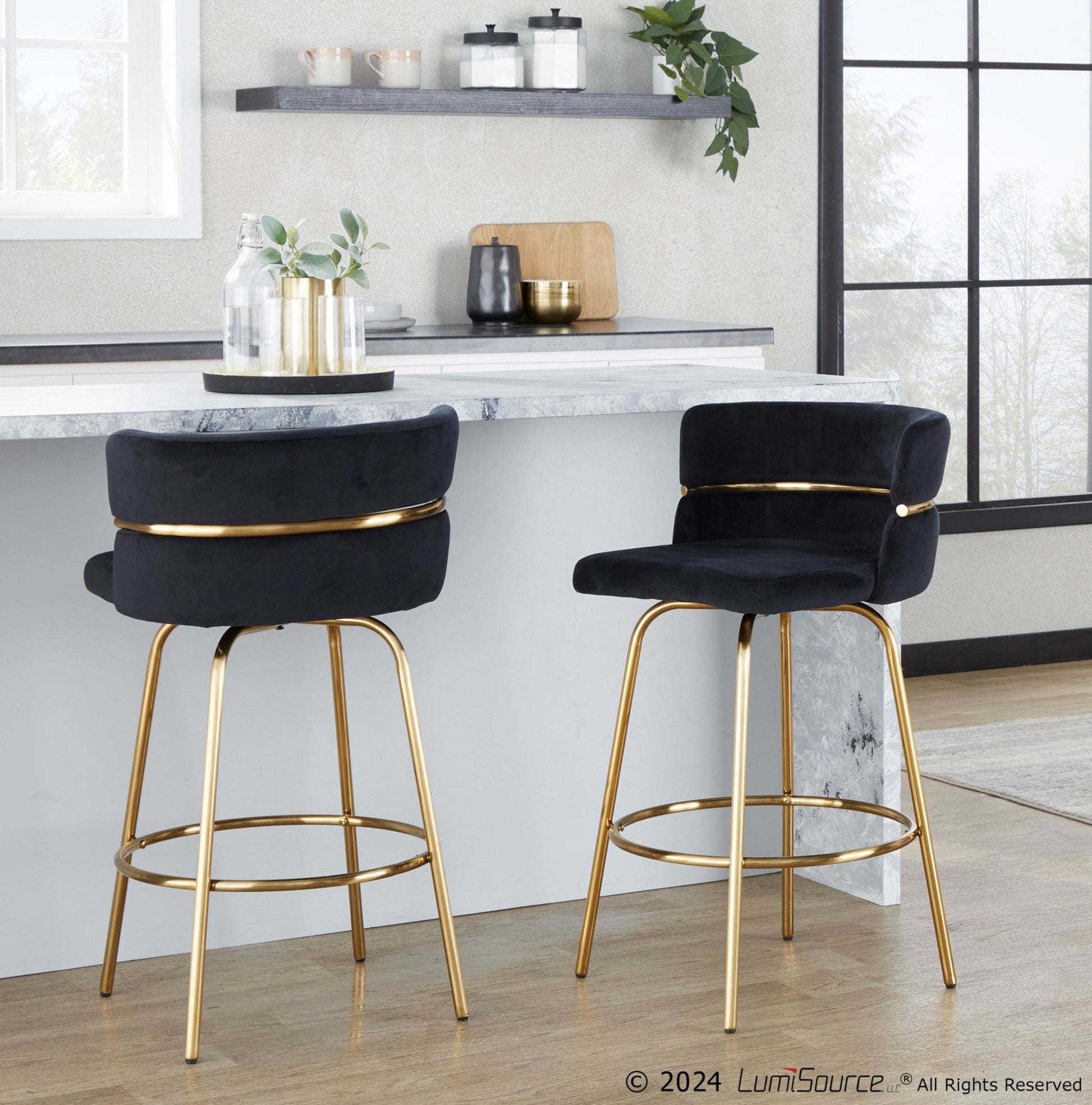Chic modern style shines bright with the unique design of the Claire Fixed-Height Counter Stool by Majestic Office Furniture. Featuring a metal accent bar design and padded upholstered seat that swivels, the Claire Counter Stool provides both a stylish and practical design. Available in various color options, choose the one that suits your space best.