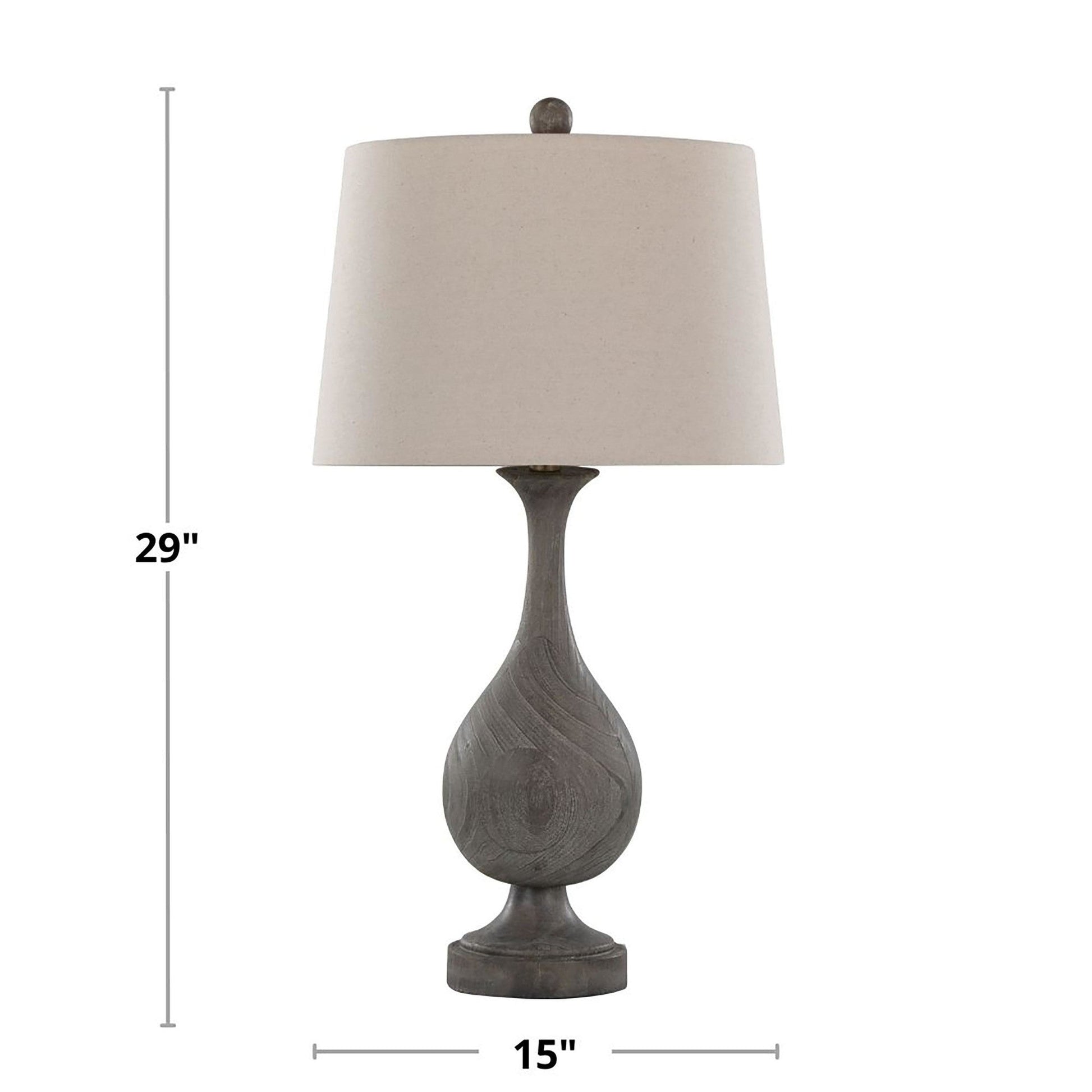 Add a rustic design element to your space with the Table Lamp from Grandview Gallery by Majestic Office Furniture. This polyresin lamp features a tapered linen drum shade and faux wood design and showcases a teardrop body with an hourglass stem. Whether resting on your nightstands, set on side tables in the den, or tucked into your favorite reading nook, this set of lamps adds a touch of warmth to any space.