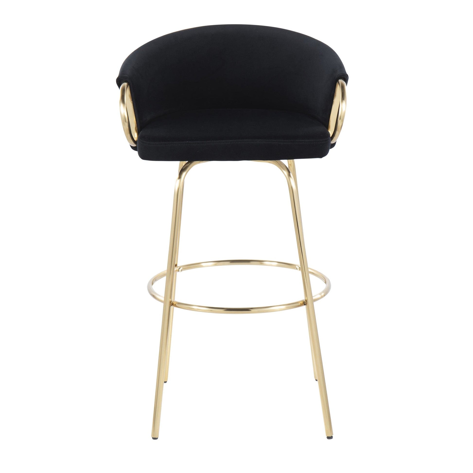 Chic modern style shines bright with the unique design of the Fixed-Height Bar Stool by Majestic Office Furniture. With a rounded and low backrest, sleek gold armrests, and gold metal frame, it's the perfect piece for your contemporary bar area. The Bar Stool has smooth swivel capability with lush velvet upholstery. Available in various bold colors.