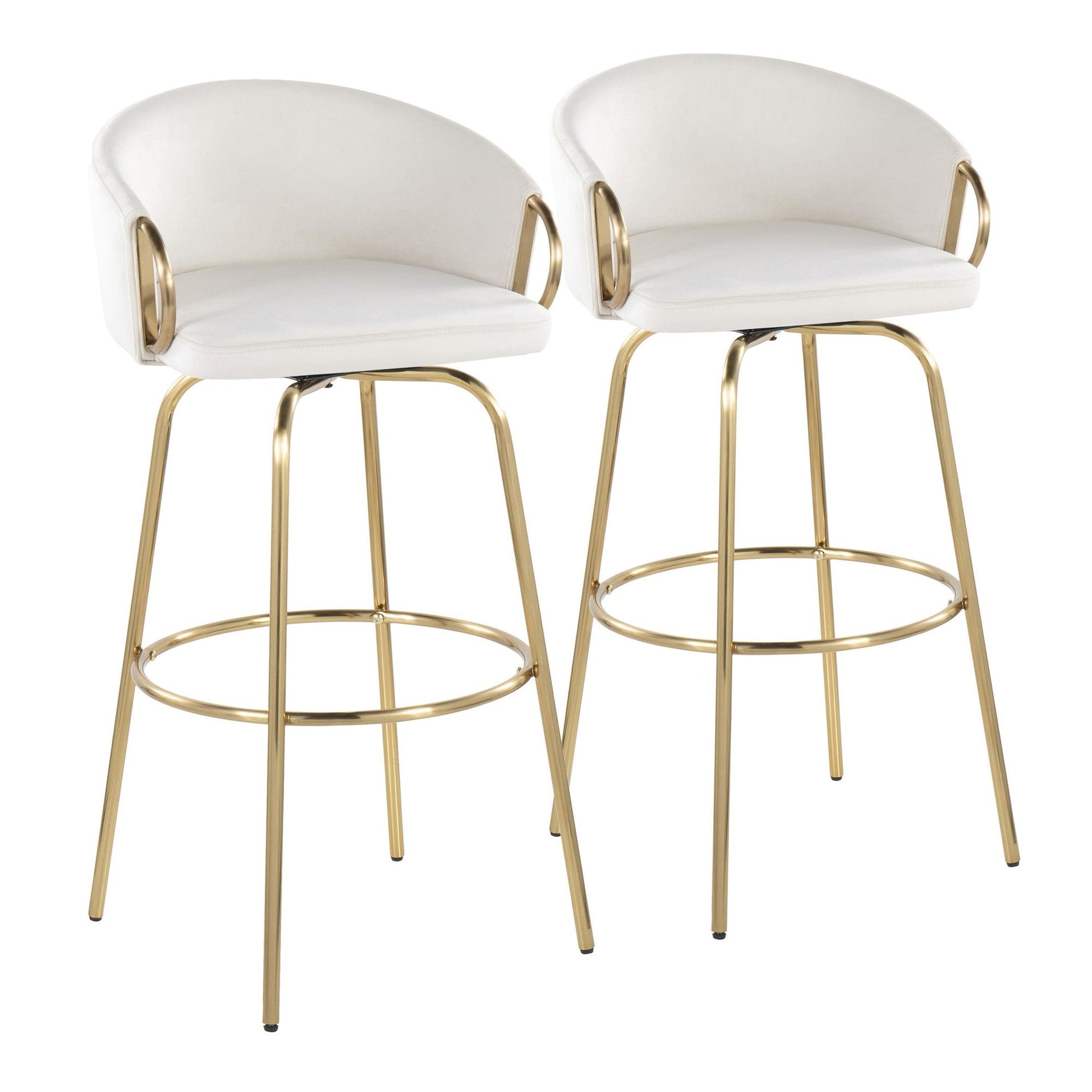 Chic modern style shines bright with the unique design of the Fixed-Height Bar Stool by Majestic Office Furniture. With a rounded and low backrest, sleek gold armrests, and gold metal frame, it's the perfect piece for your contemporary bar area. The Bar Stool has smooth swivel capability with lush velvet upholstery. Available in various bold colors.