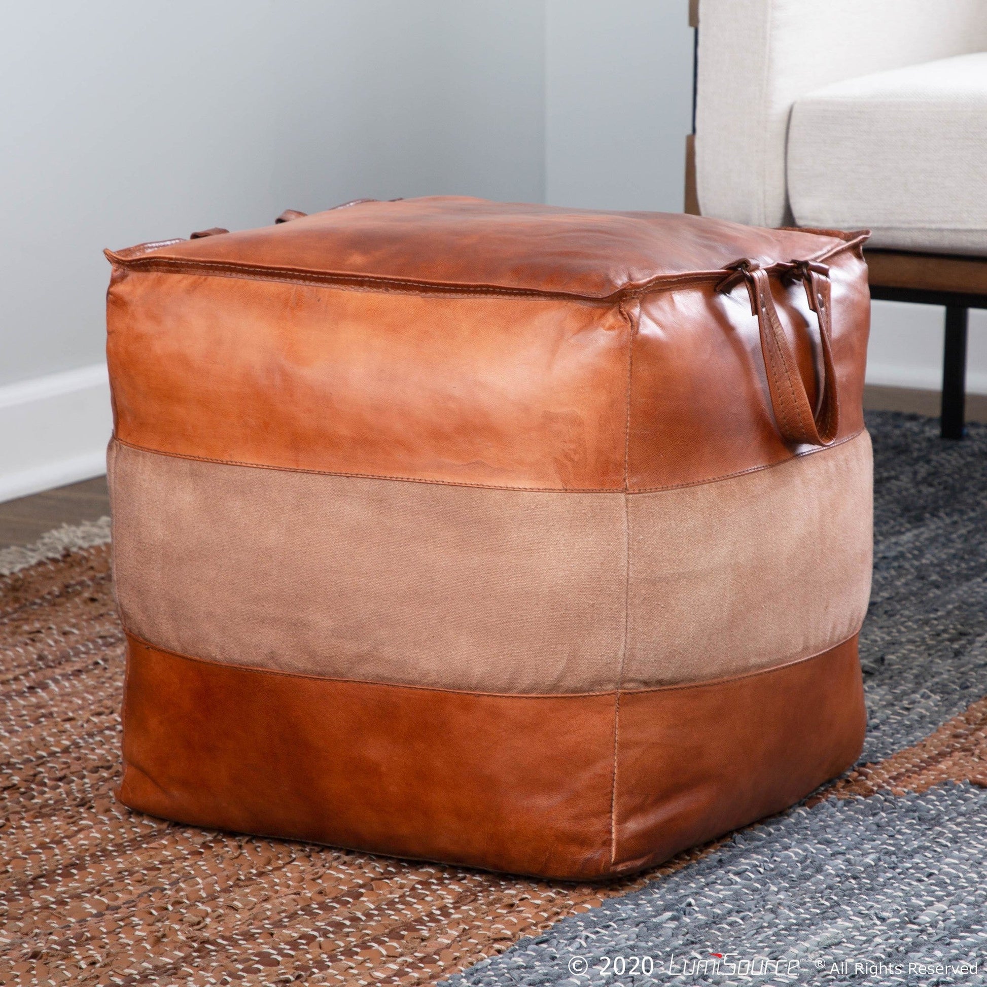 Warm-up your deacute;cor with the earthy look of the Cobber Pouf ottoman by Majestic Office Furniture. Perfect for propping up your feet or extra seating, this unique square pouf ottoman features unique leather patchwork stitching.
