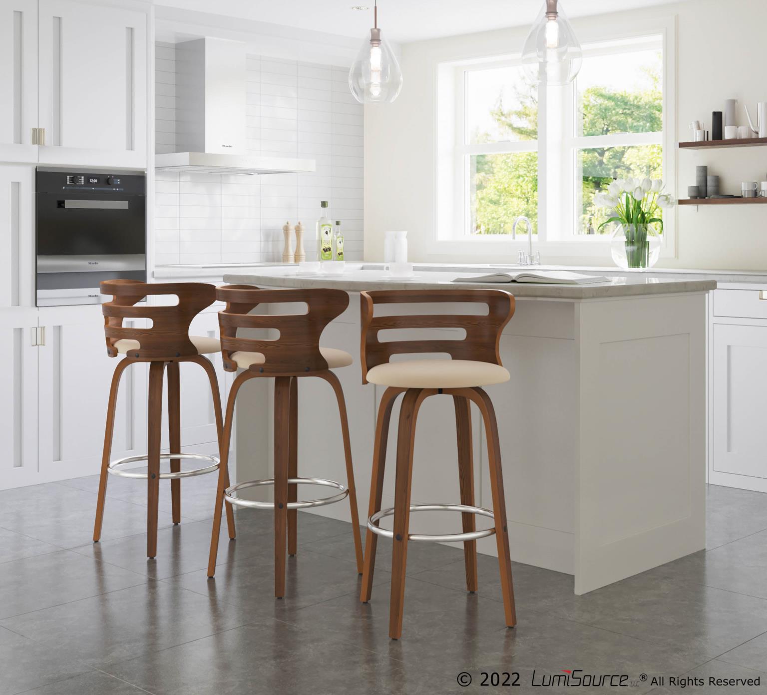 The walnut wood backrest of the Majestic Office Furniture Barstool hugs the body with graceful, curved lines. Tapered bent wood legs are joined by a circular chrome footrest for support and durability. Add in a cushioned upholstered seat and the Barstool becomes go-to seating for any group gathering.