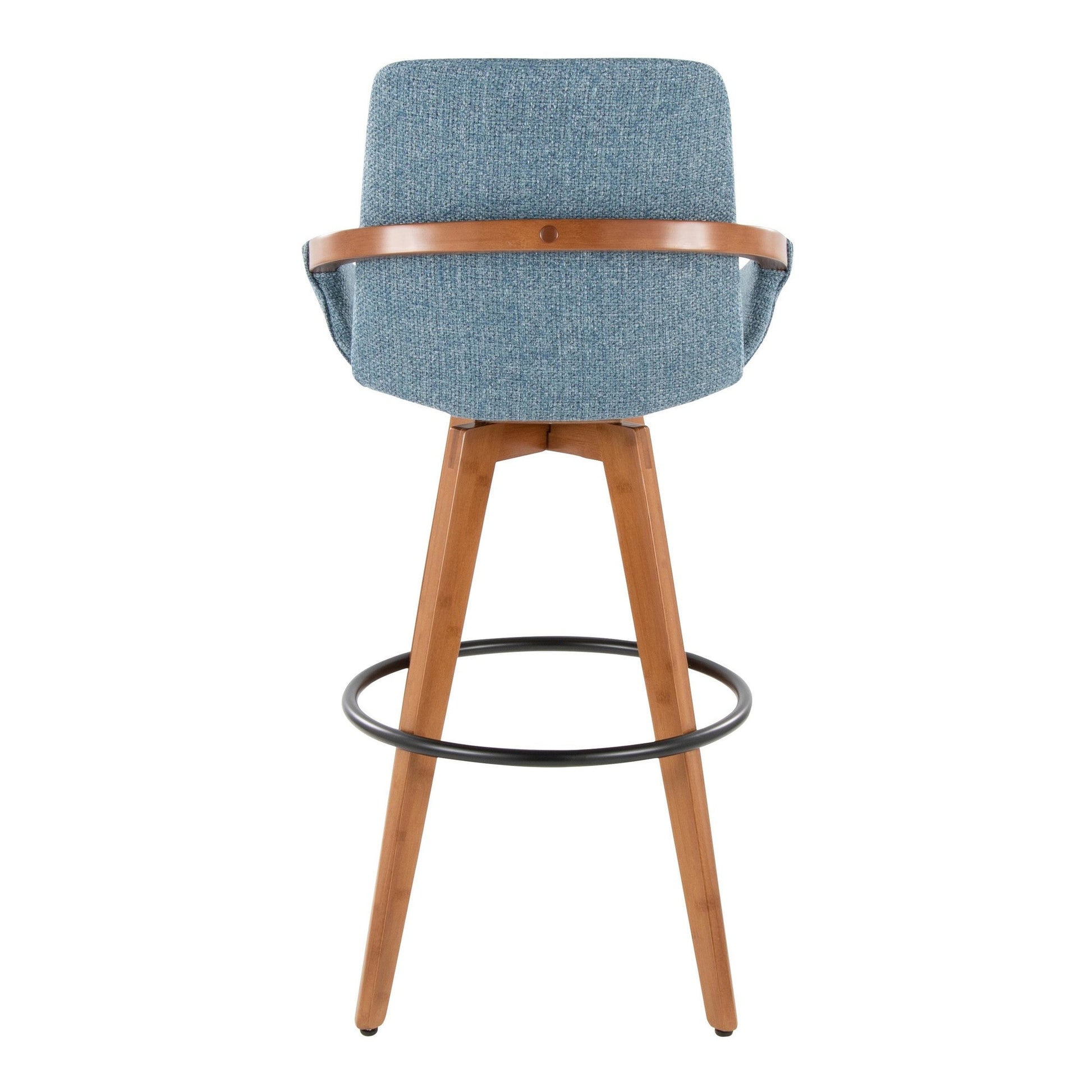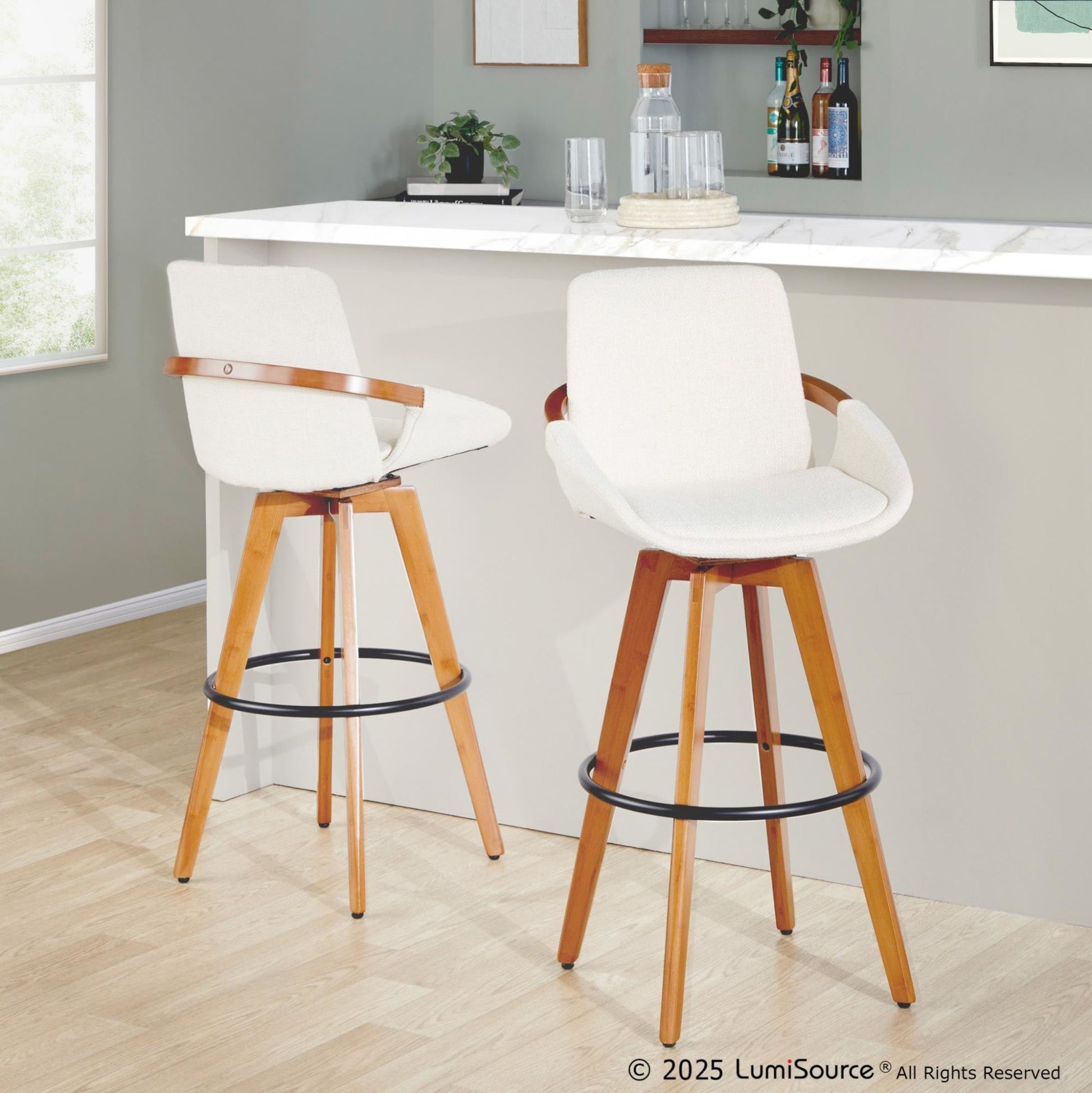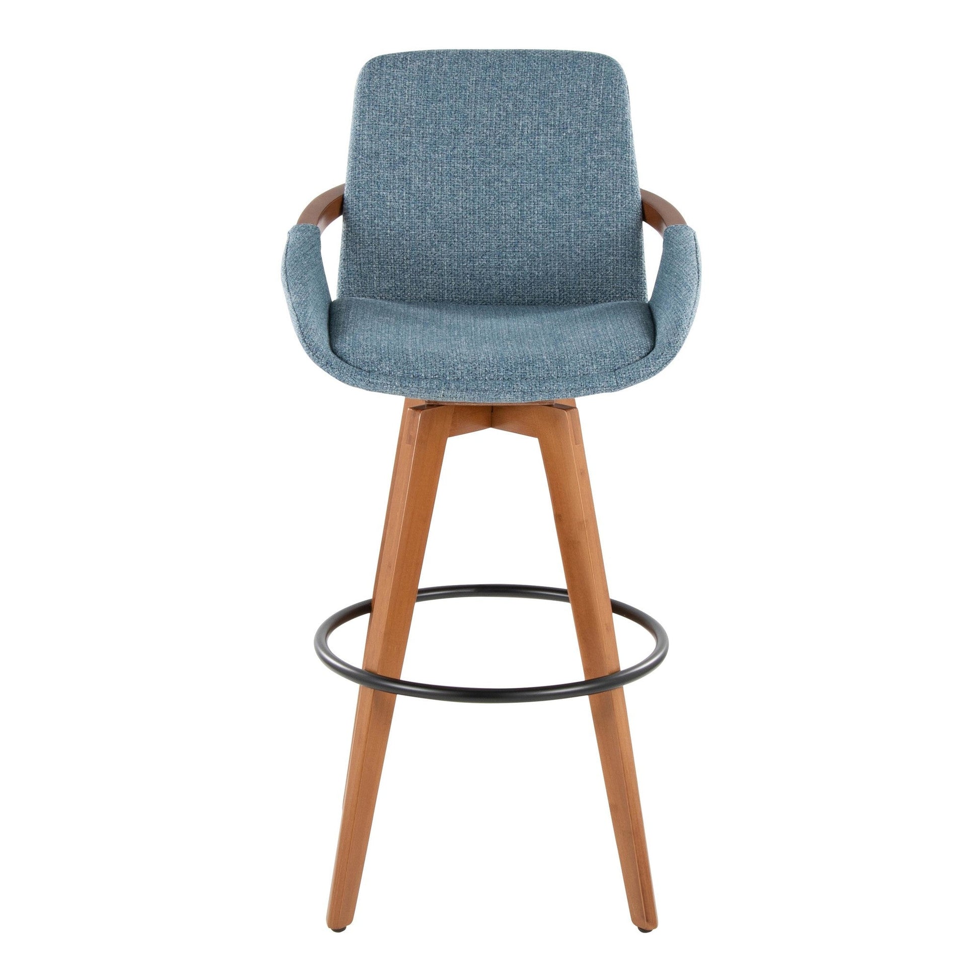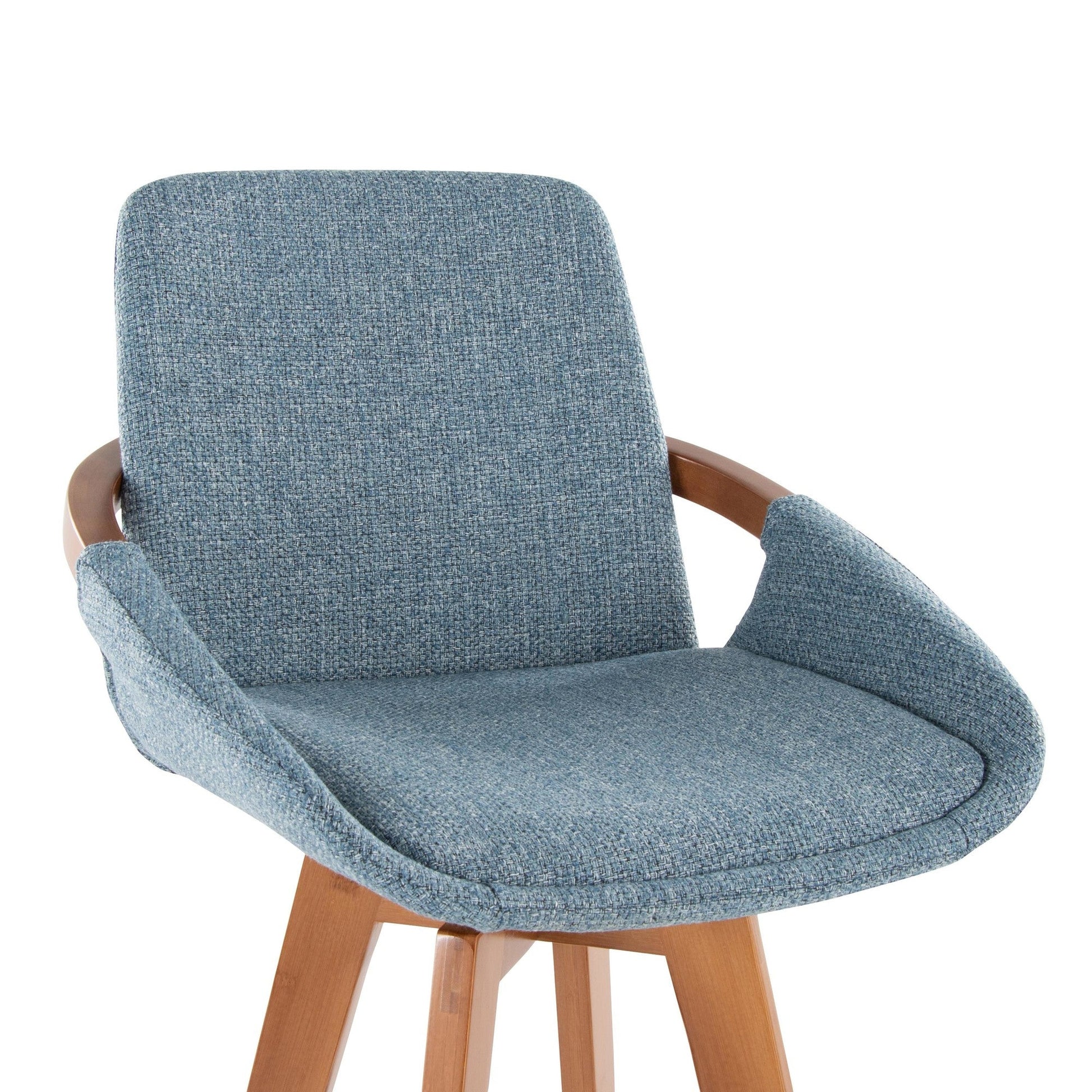 Mid-Century inspired, the Fixed-Height Barstool by Majestic Office Furniture combines style and comfort! An upholstered seat is accented by stylish walnut bamboo armrest and legs, with smooth swivel capability. Available in a variety of color combinations, choose the one that fits your space the best.