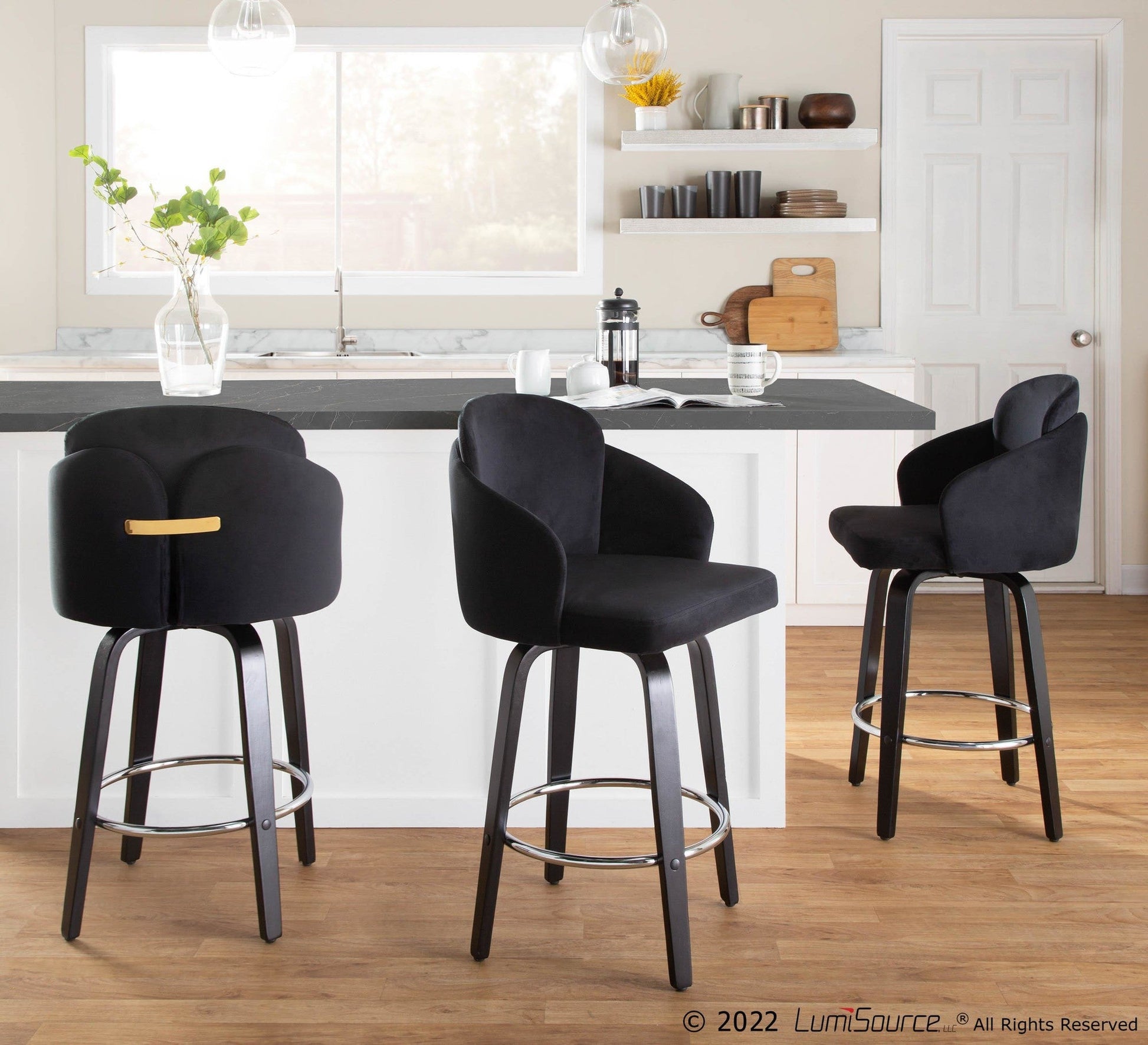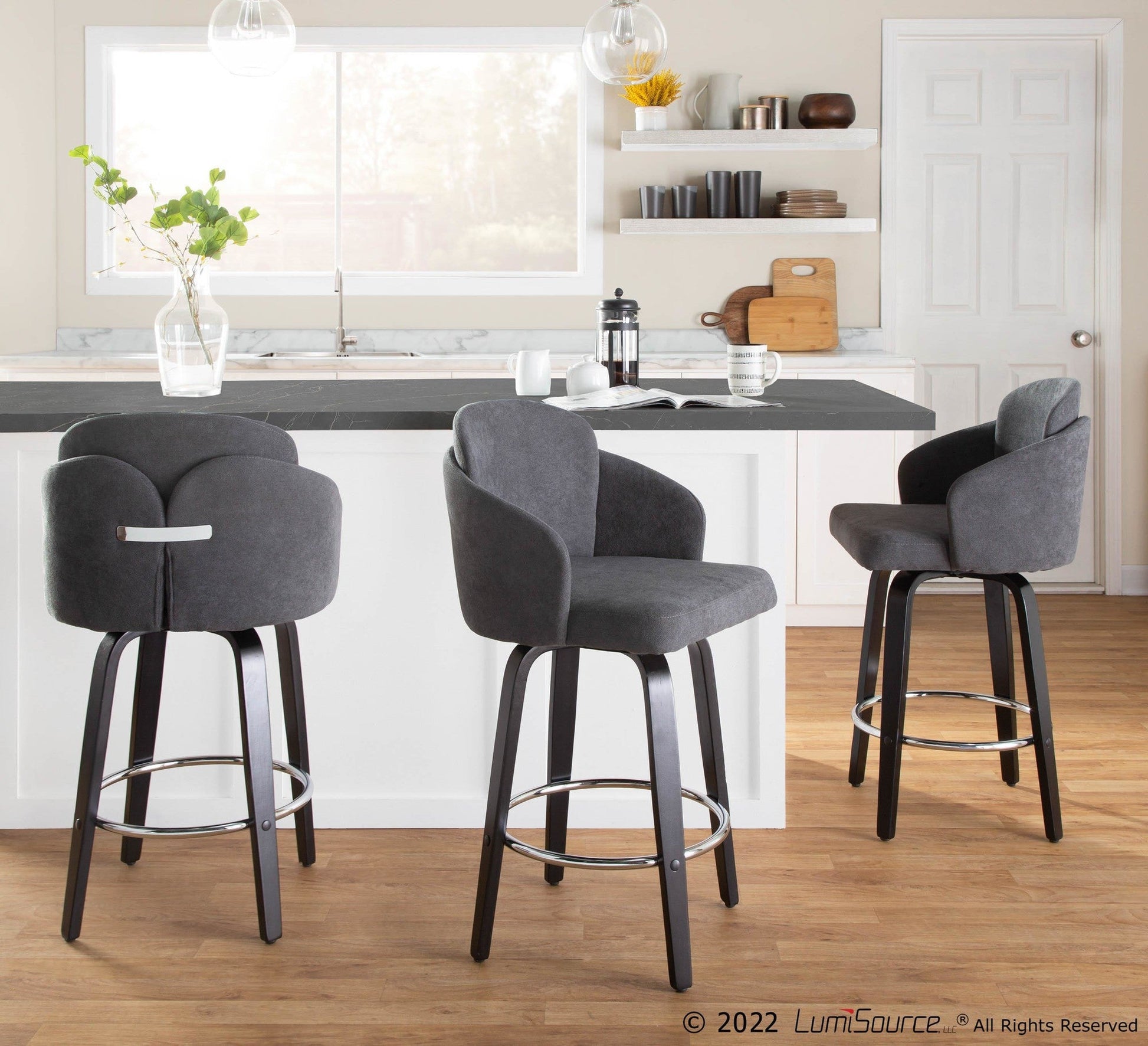 Fixed counter height with 360-degree swivel