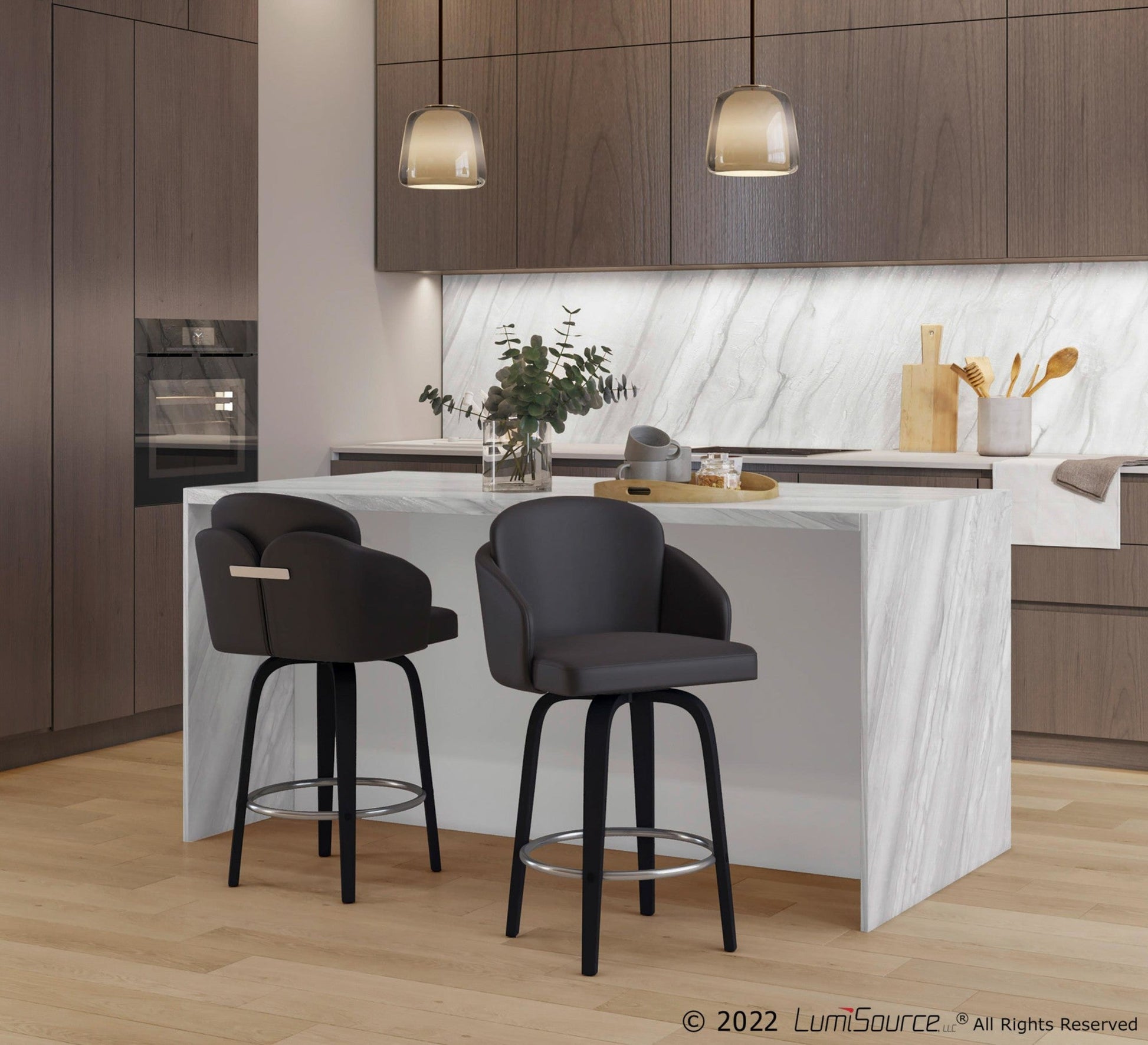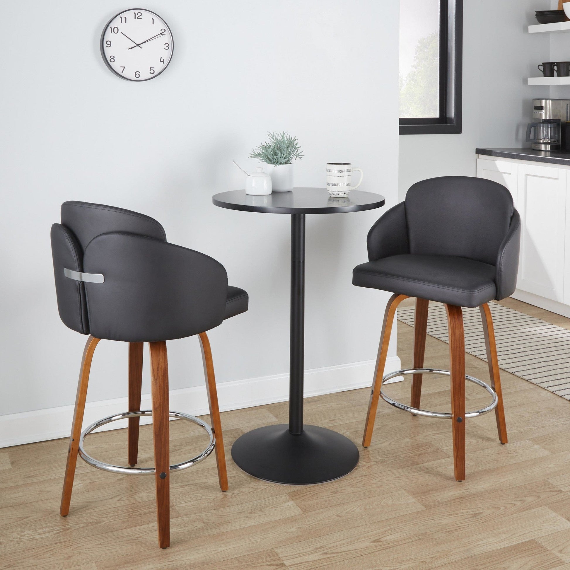 Includes two counter stools