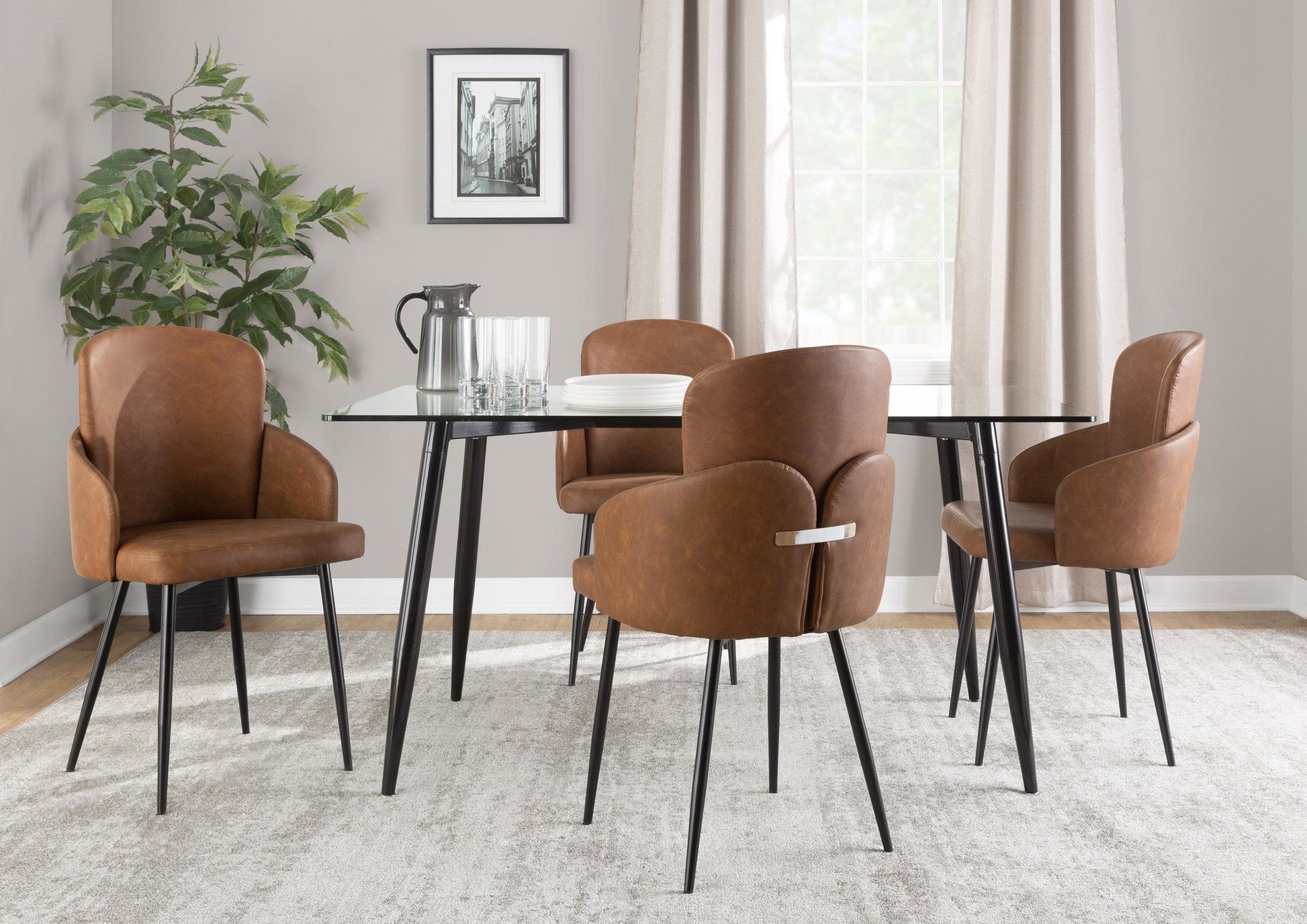 Includes two dining chairs