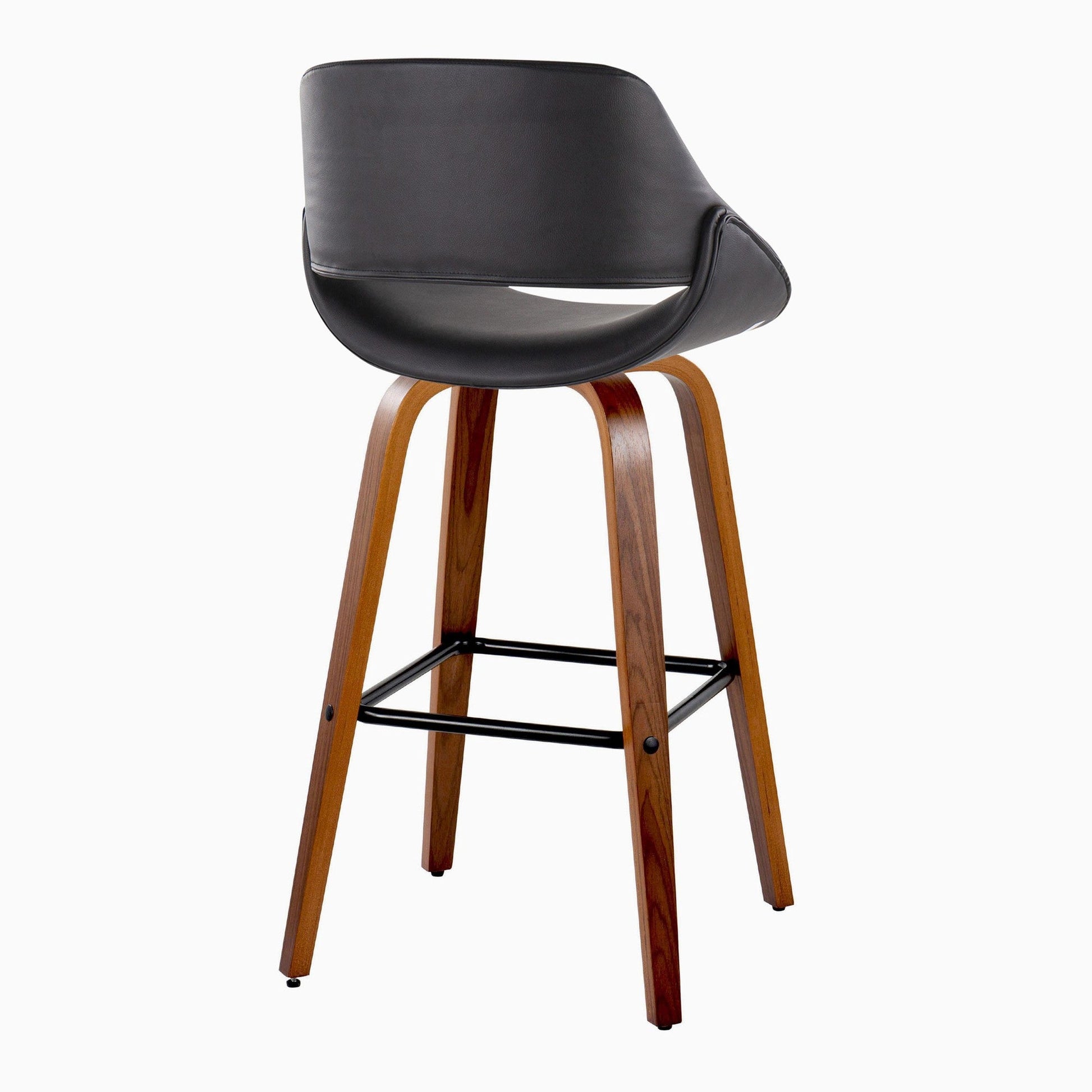 Bent wood legs with square black metal footrest