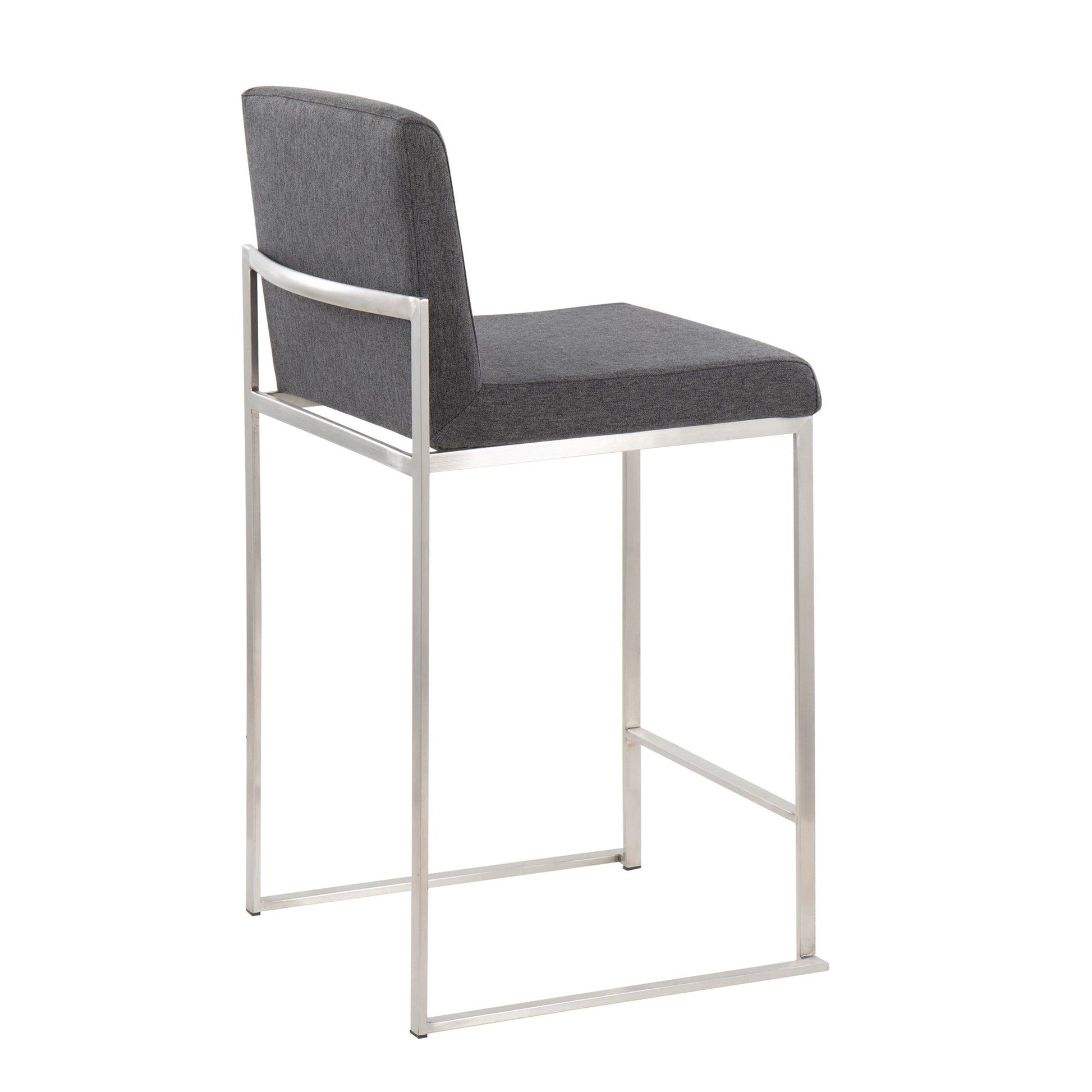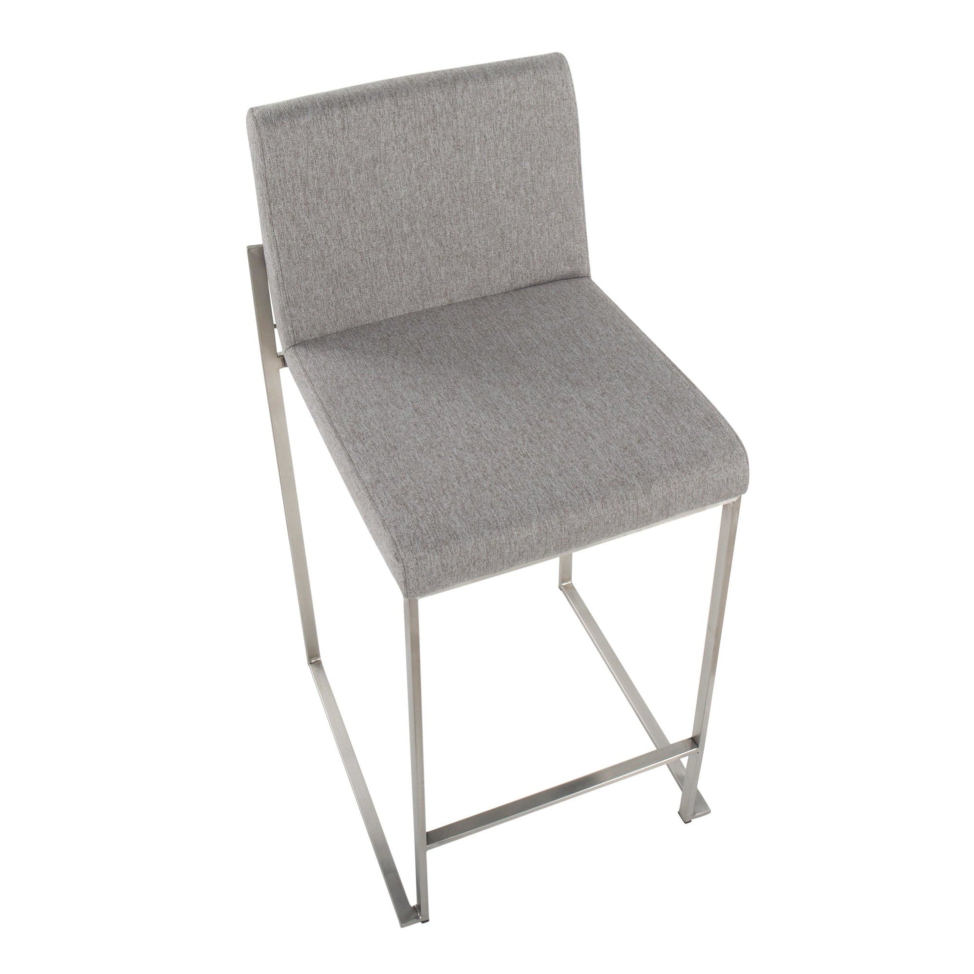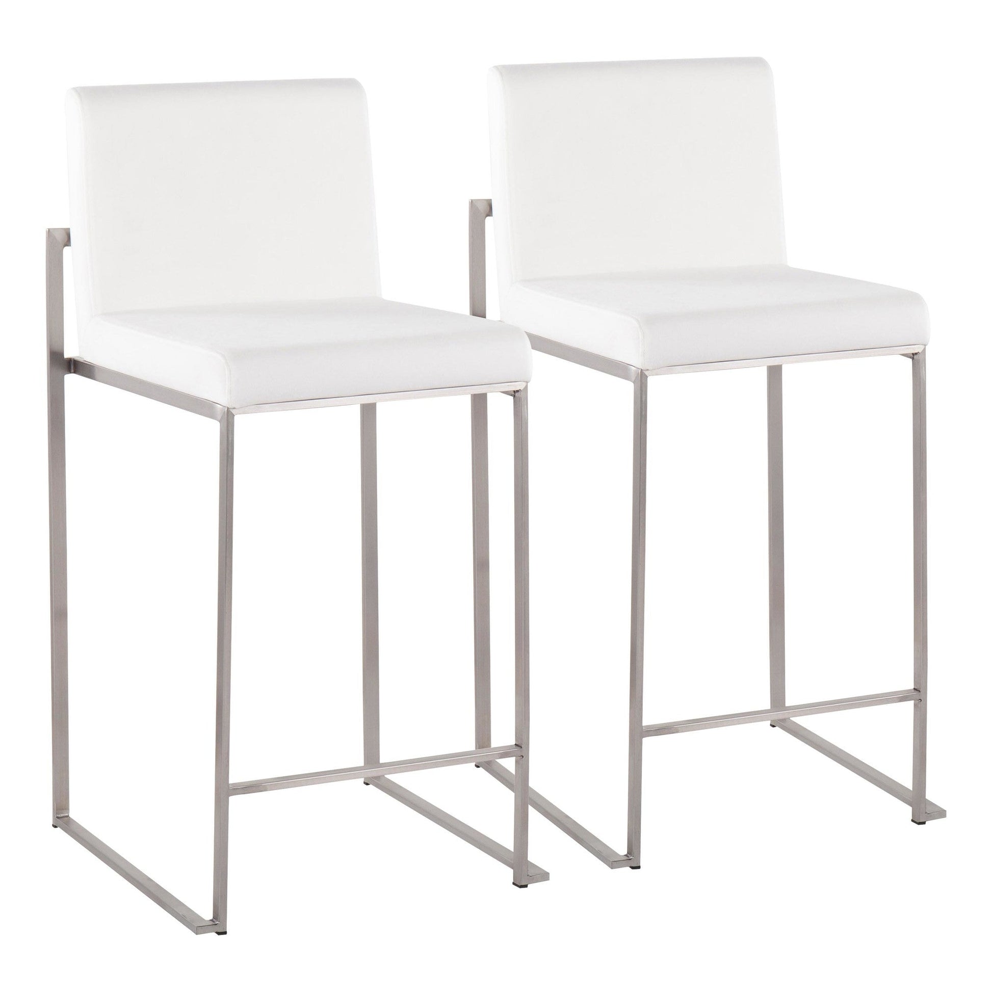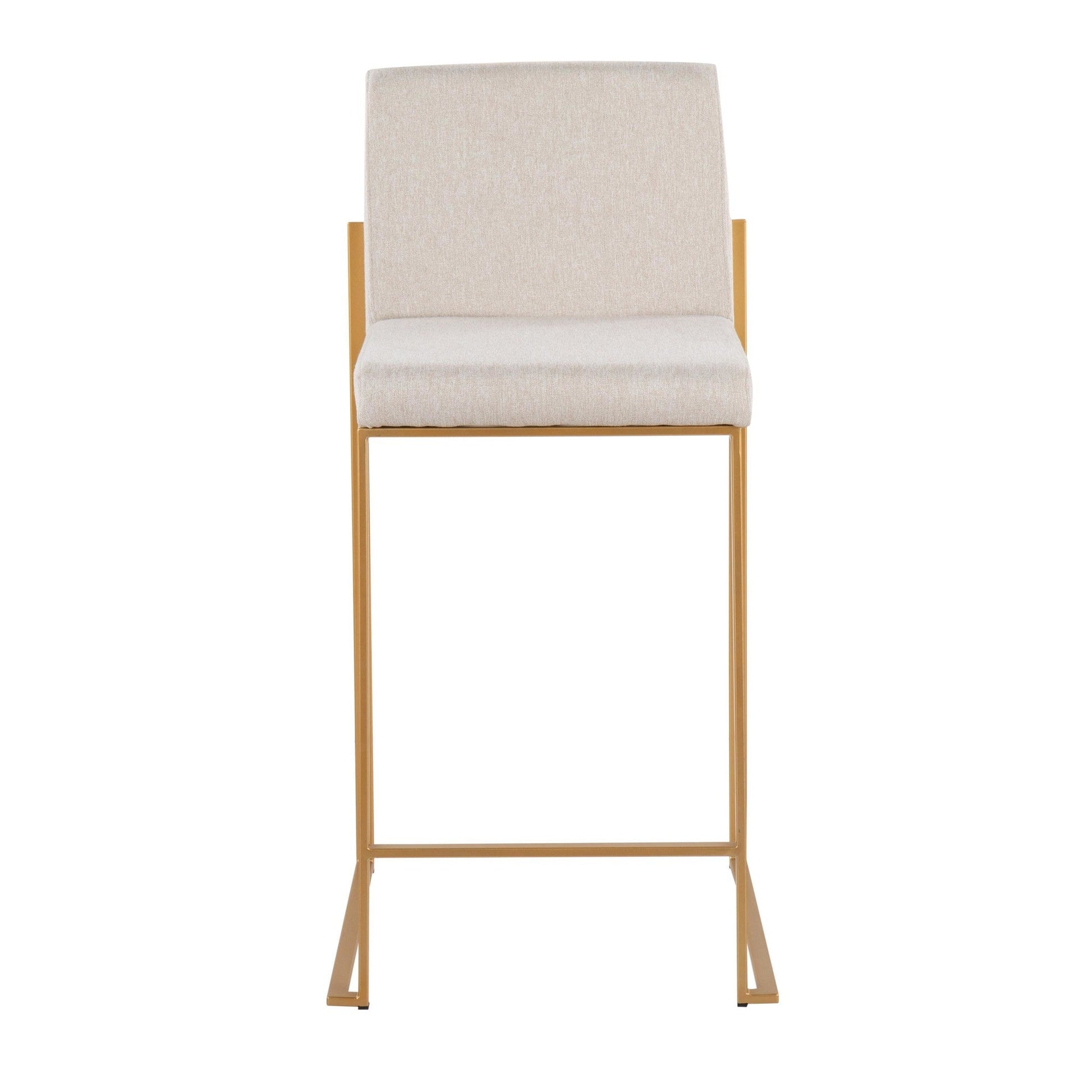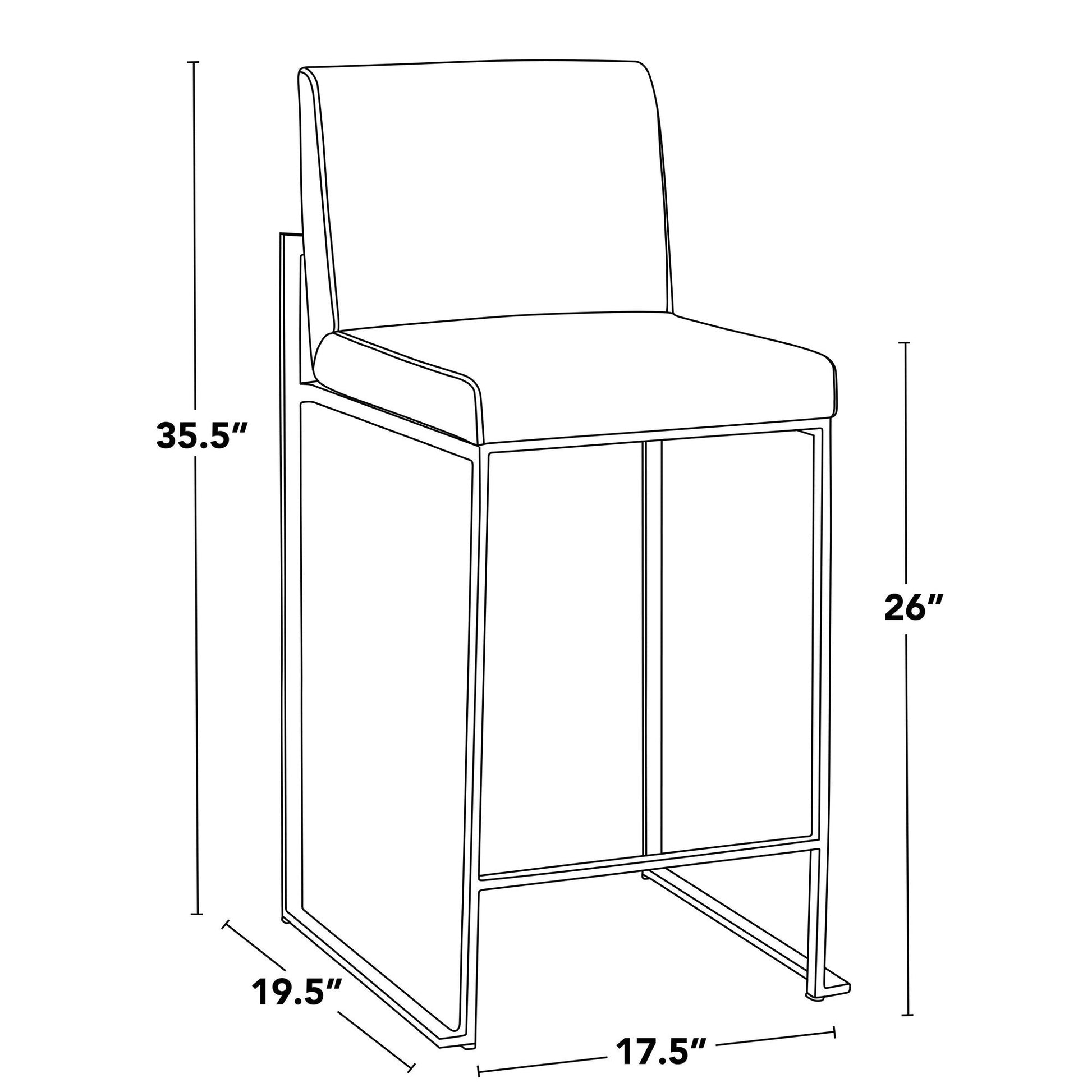 Modern elegance at its finest, the High Back Counter Stool features an extra-wide (and extra comfortable) upholstered seat, a high padded backrest, and a stylish metal frame. The perfect contemporary counter stool, the is available in a stainless steel or gold metal frame and comes in a variety of sleek upholstery colors.