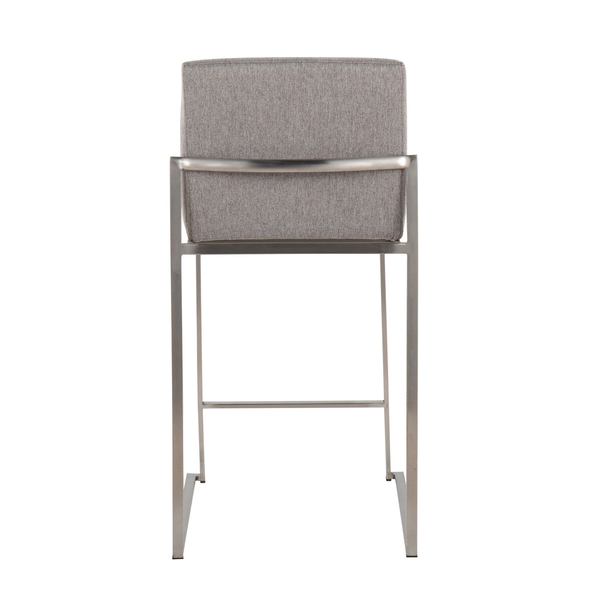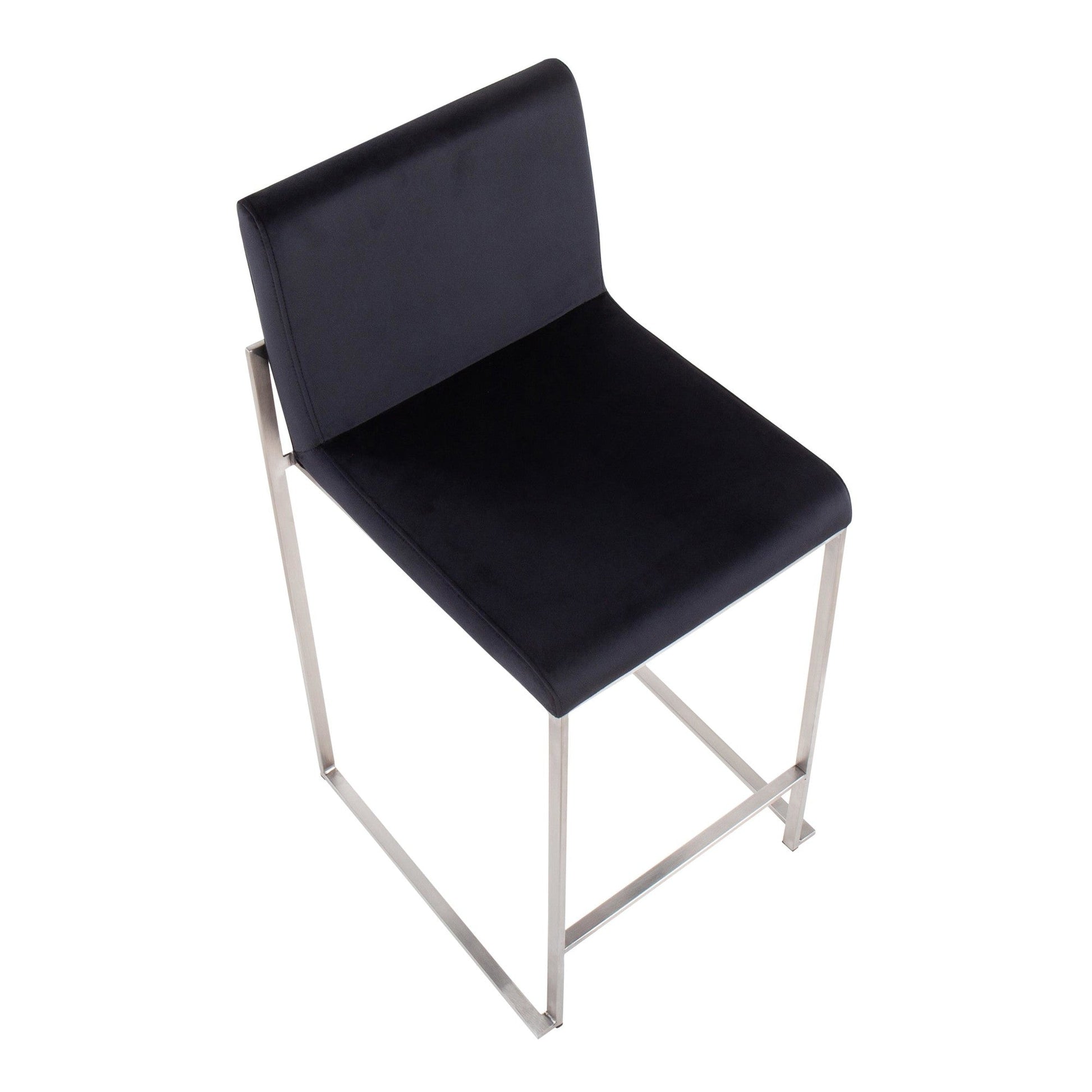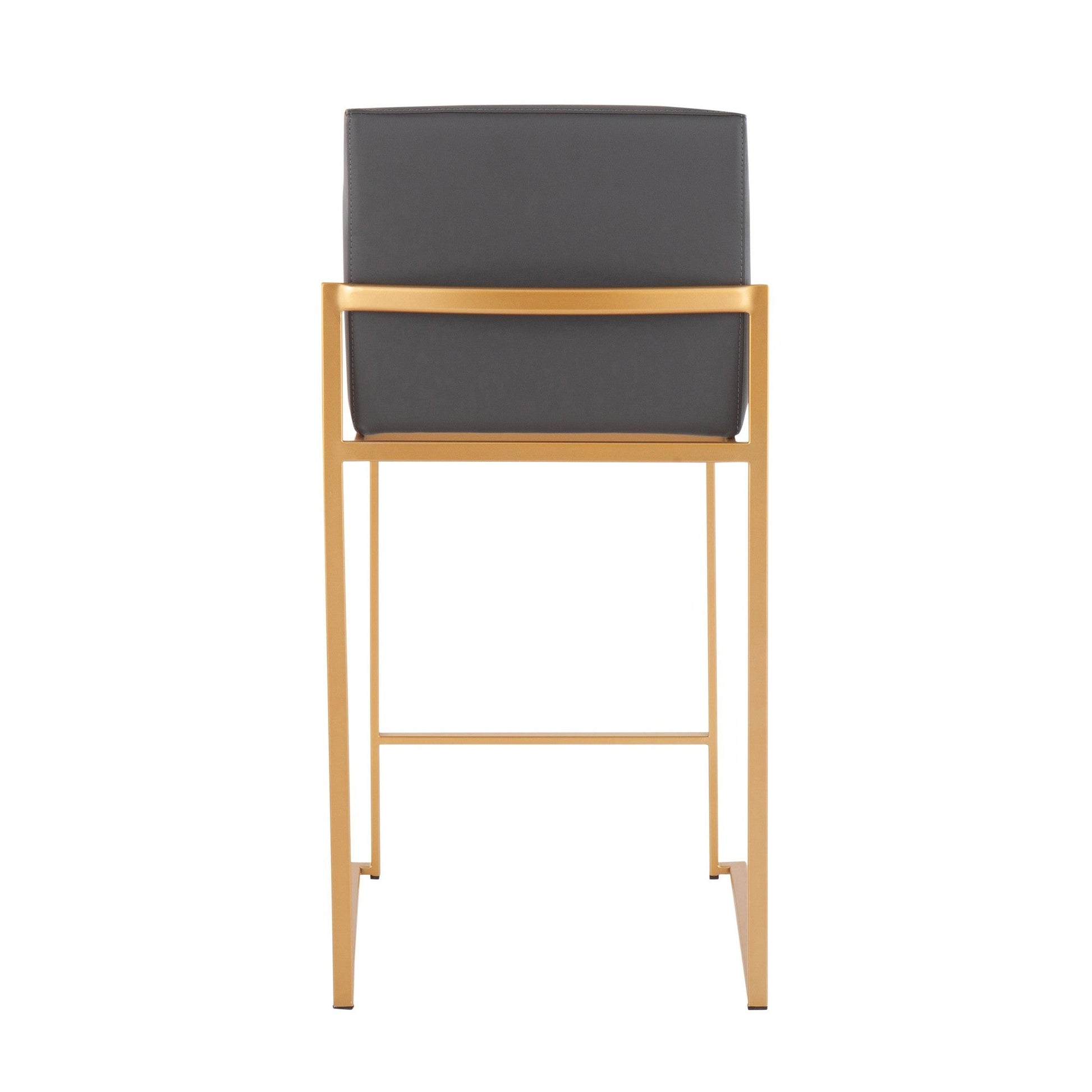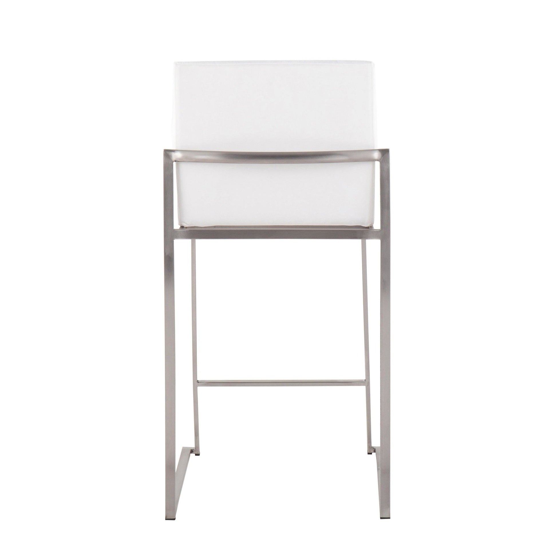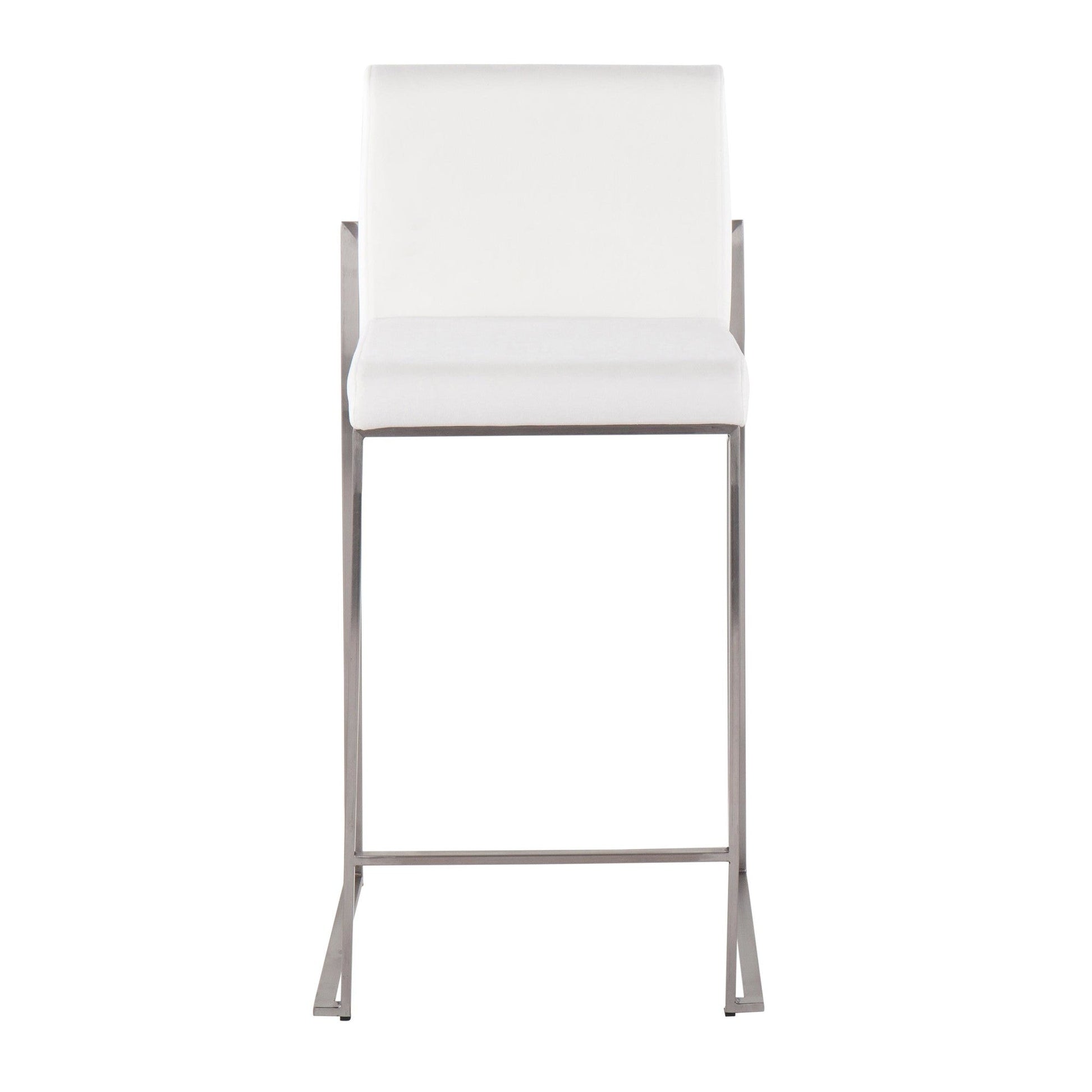 Modern elegance at its finest, the High Back Counter Stool features an extra-wide (and extra comfortable) upholstered seat, a high padded backrest, and a stylish metal frame. The perfect contemporary counter stool, the is available in a stainless steel or gold metal frame and comes in a variety of sleek upholstery colors.