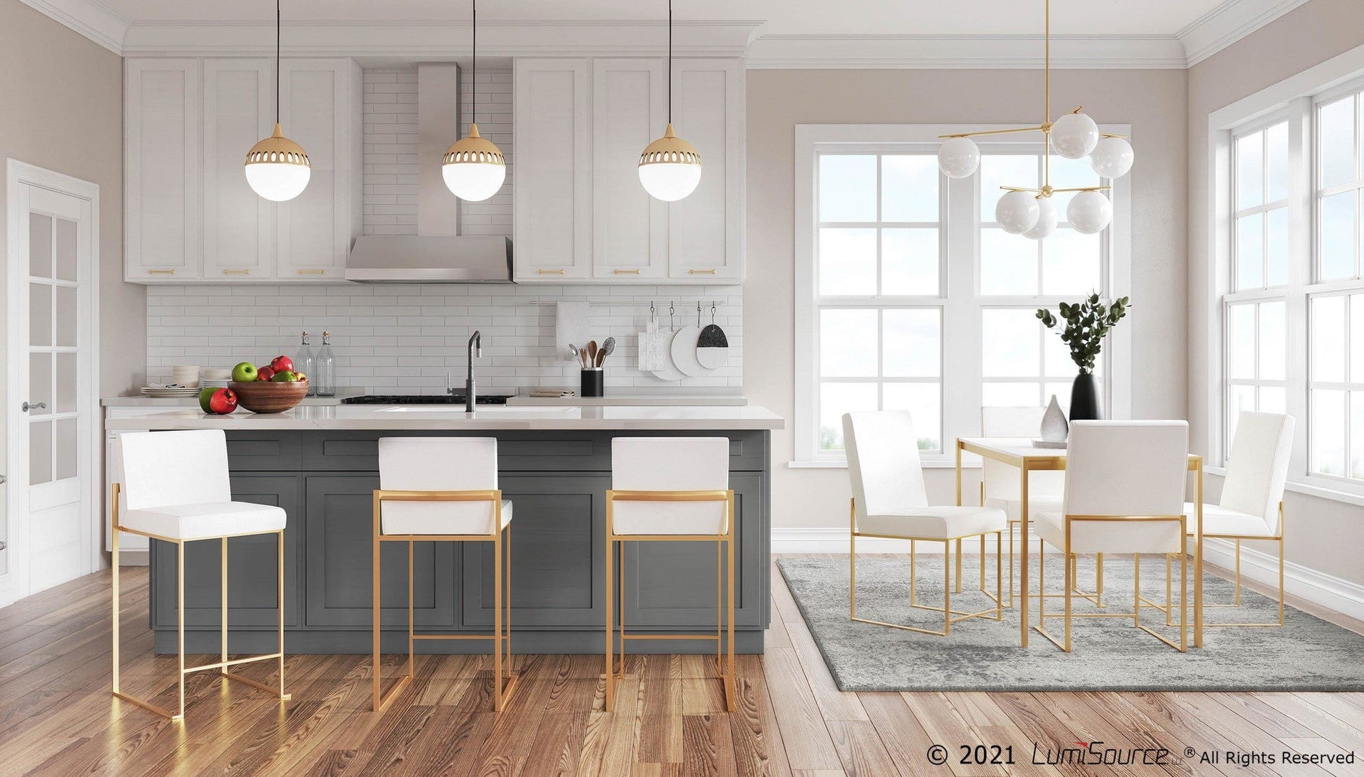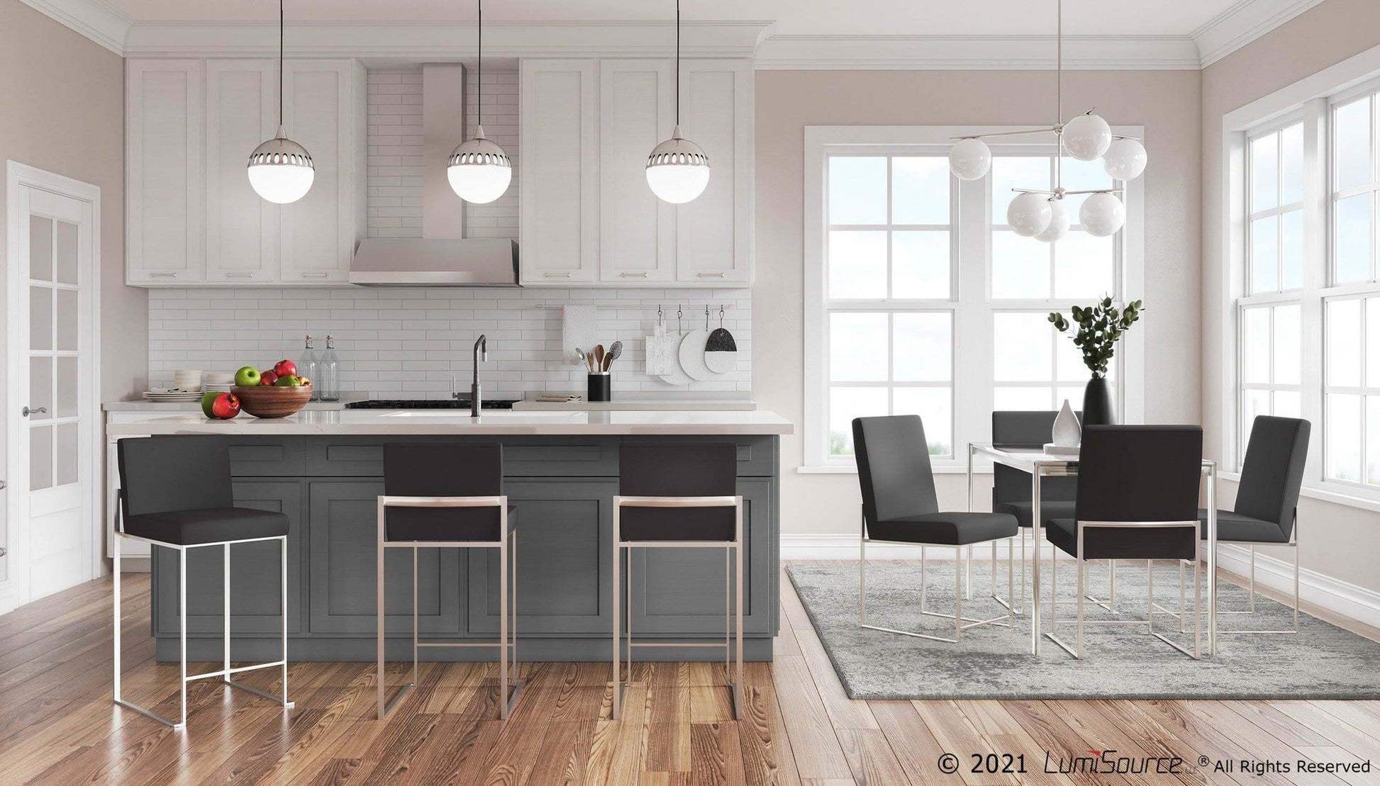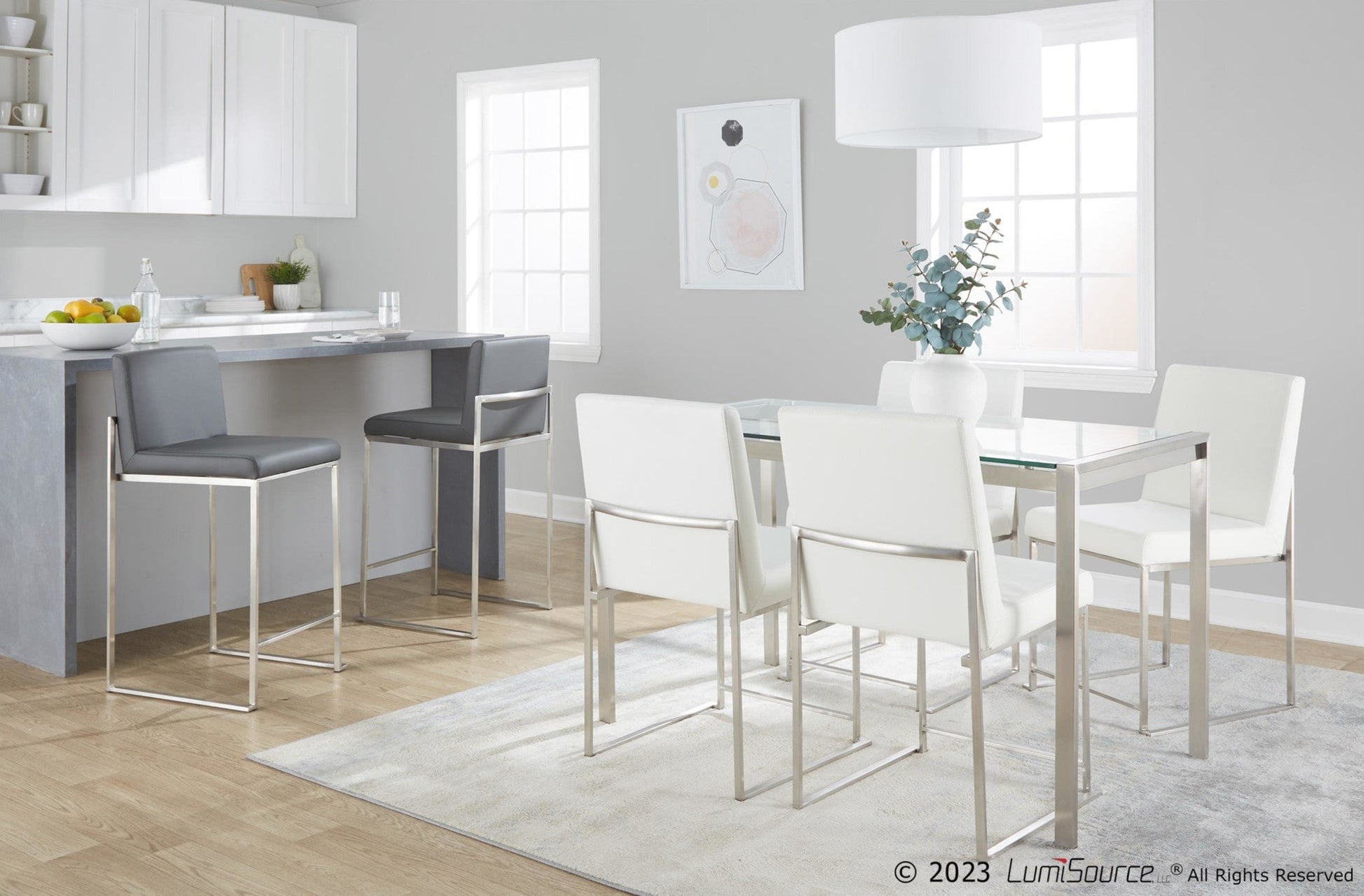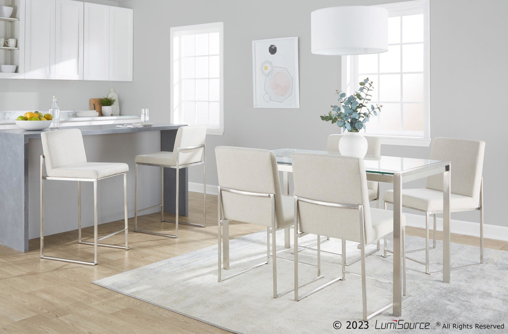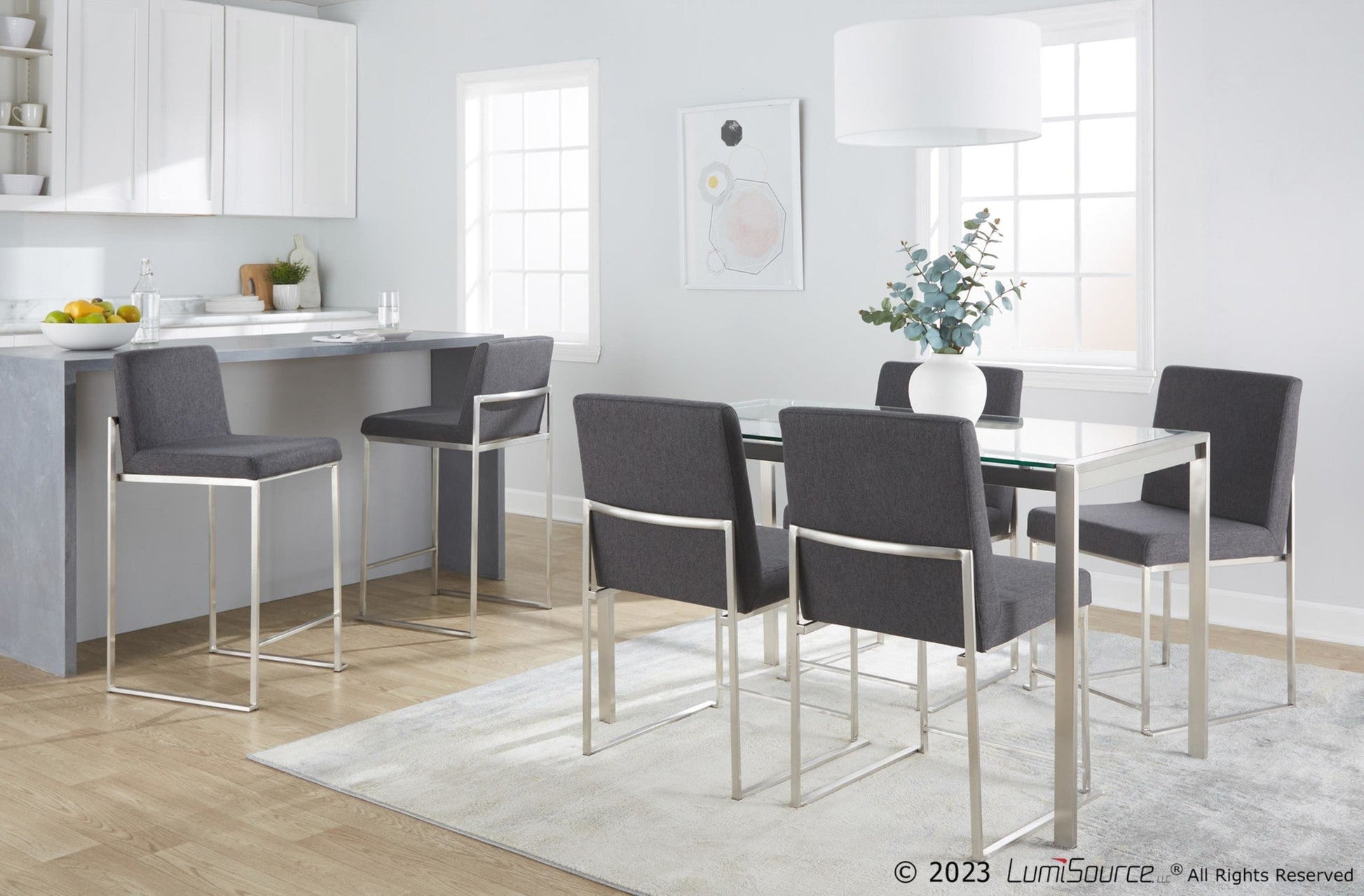 Modern elegance at its finest, the High Back Counter Stool features an extra-wide (and extra comfortable) upholstered seat, a high padded backrest, and a stylish metal frame. The perfect contemporary counter stool, the is available in a stainless steel or gold metal frame and comes in a variety of sleek upholstery colors.