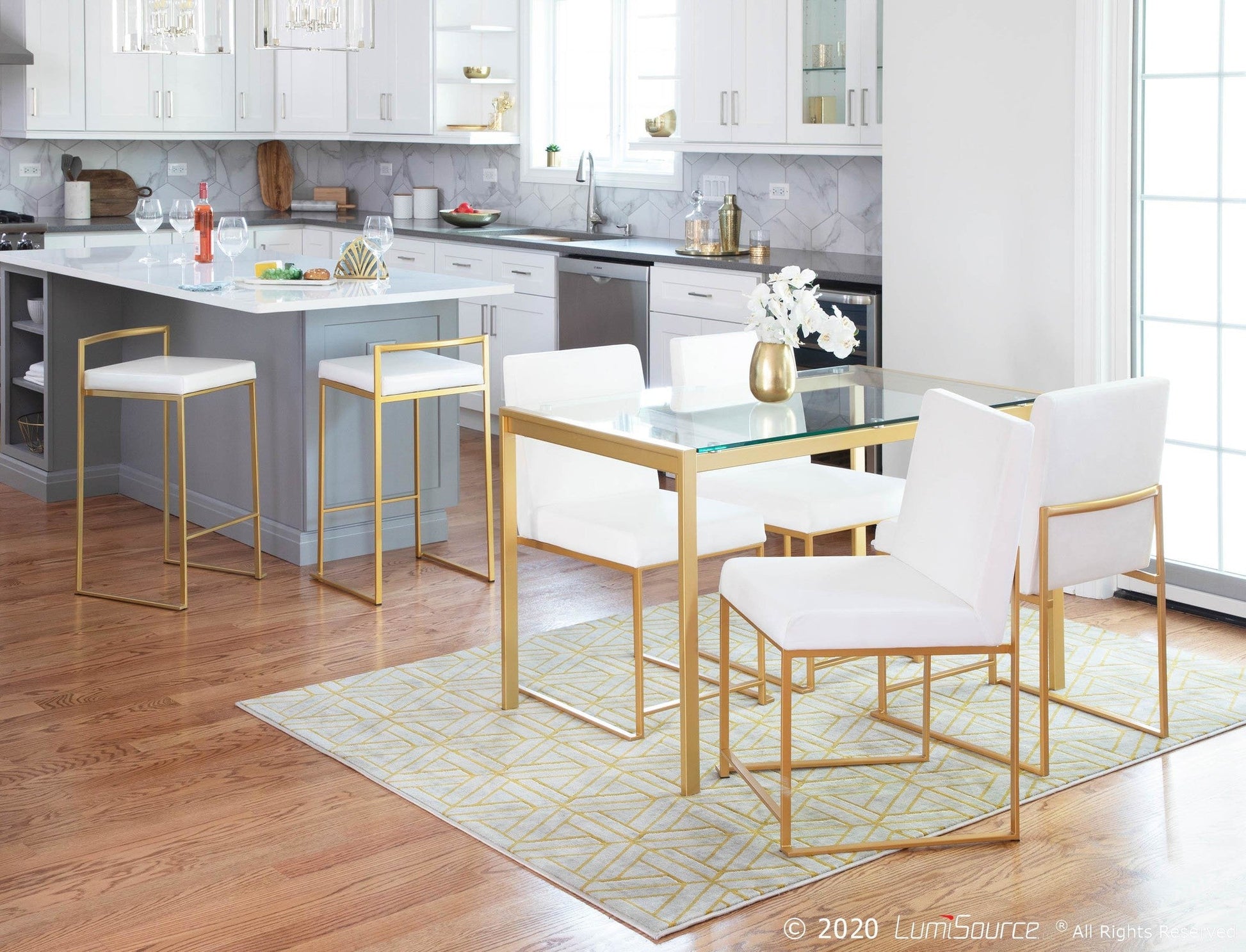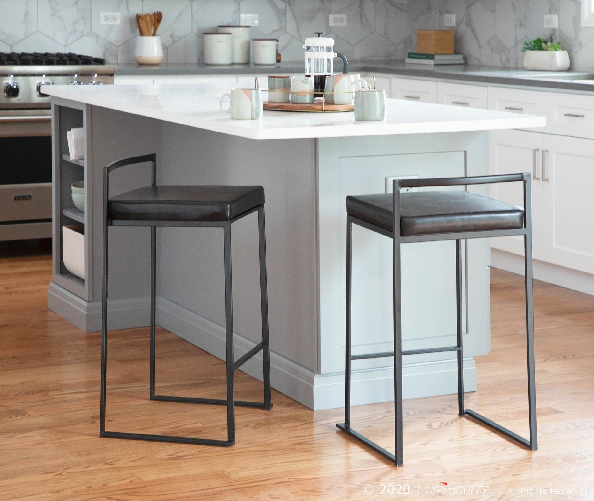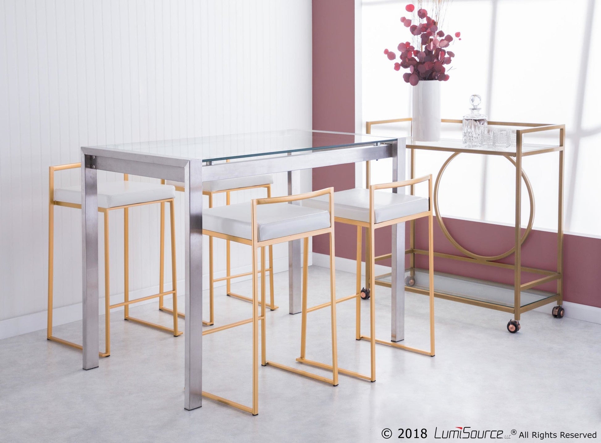 Includes two counter stools