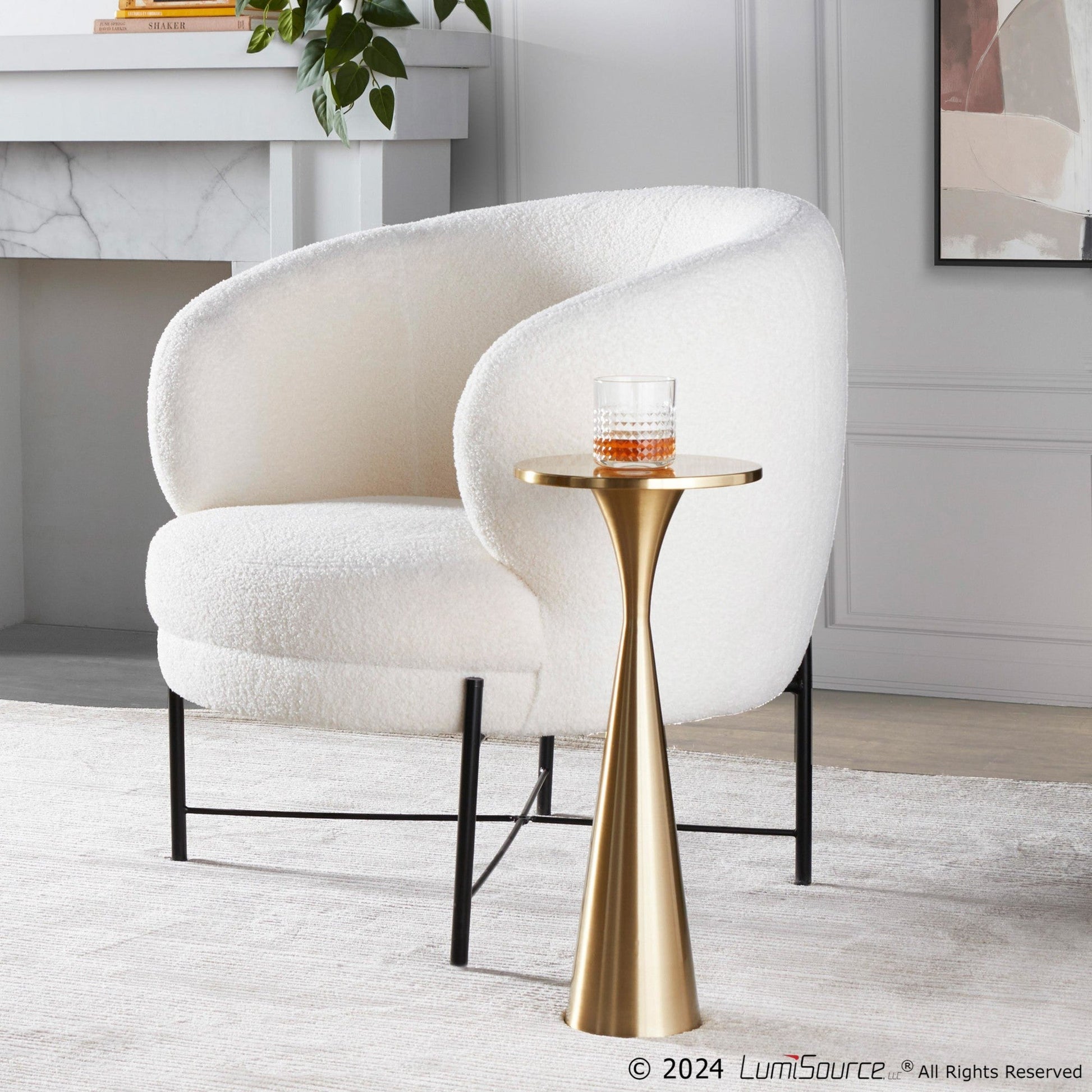The Metal Side Table from Grandview Gallery by Majestic Office Furniture will elevate any space with its sleek hourglass shape and dazzling metal finish. Available in gold, polished nickel, and black, this small, versatile table doubles as a chic cocktail table. Perfect for adding a touch of elegance to any room while holding your favorite drink or decor.