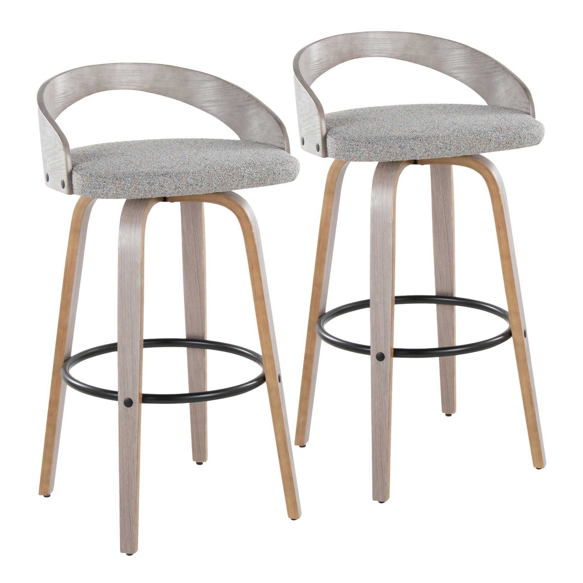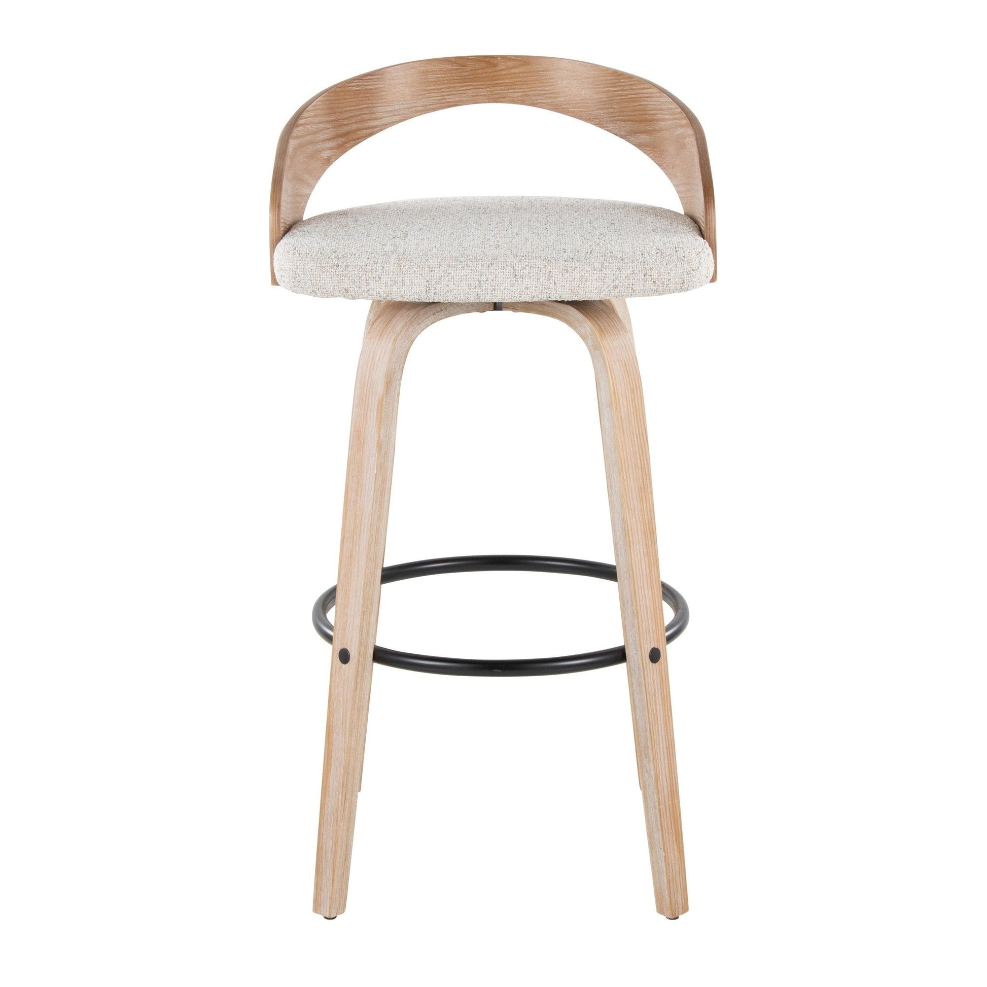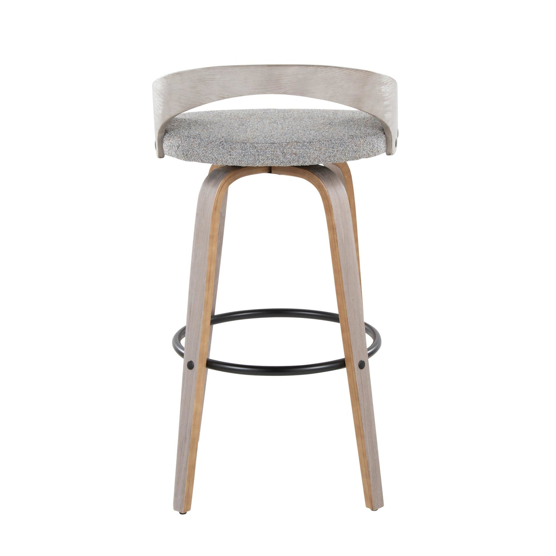 Bent wood legs with round black metal footrest