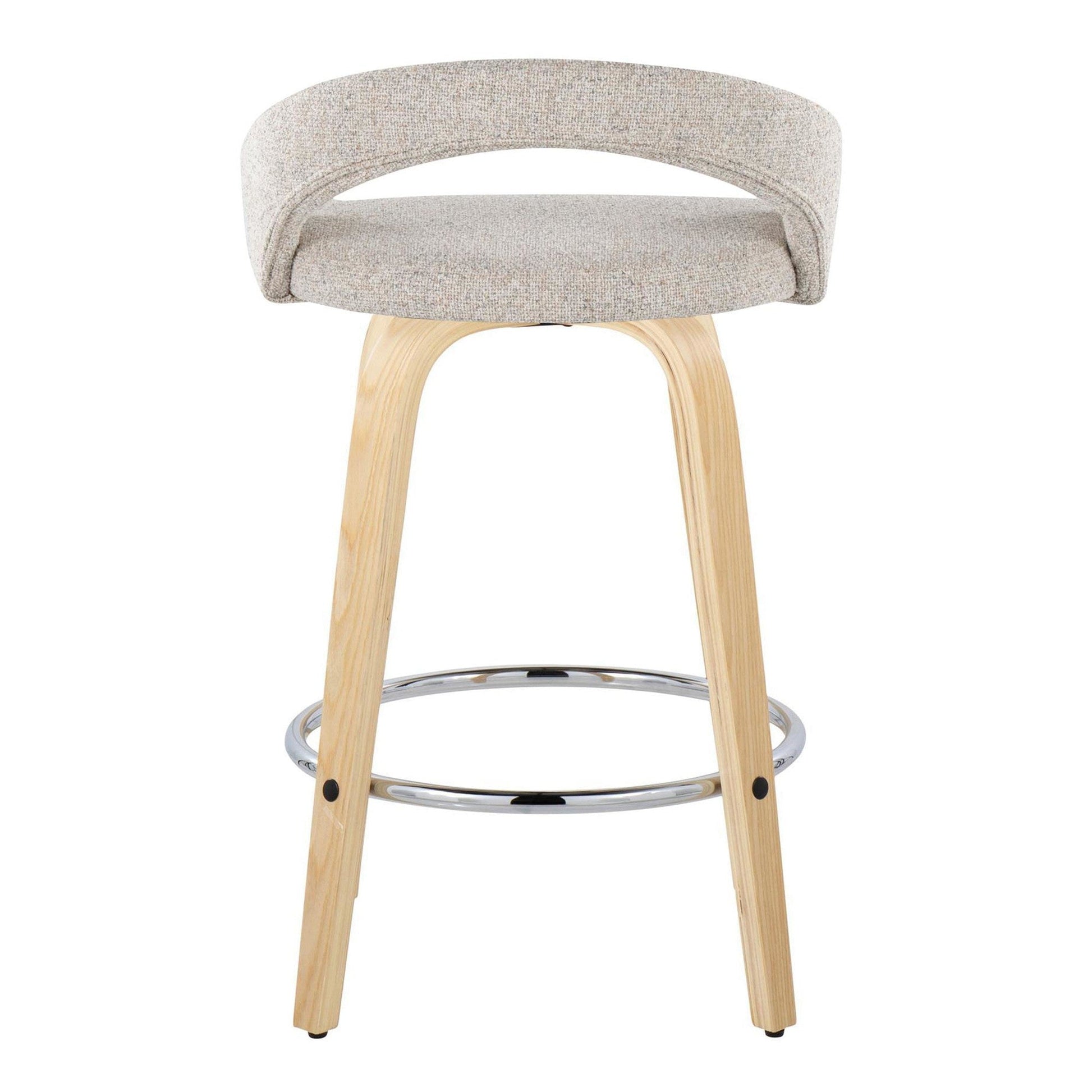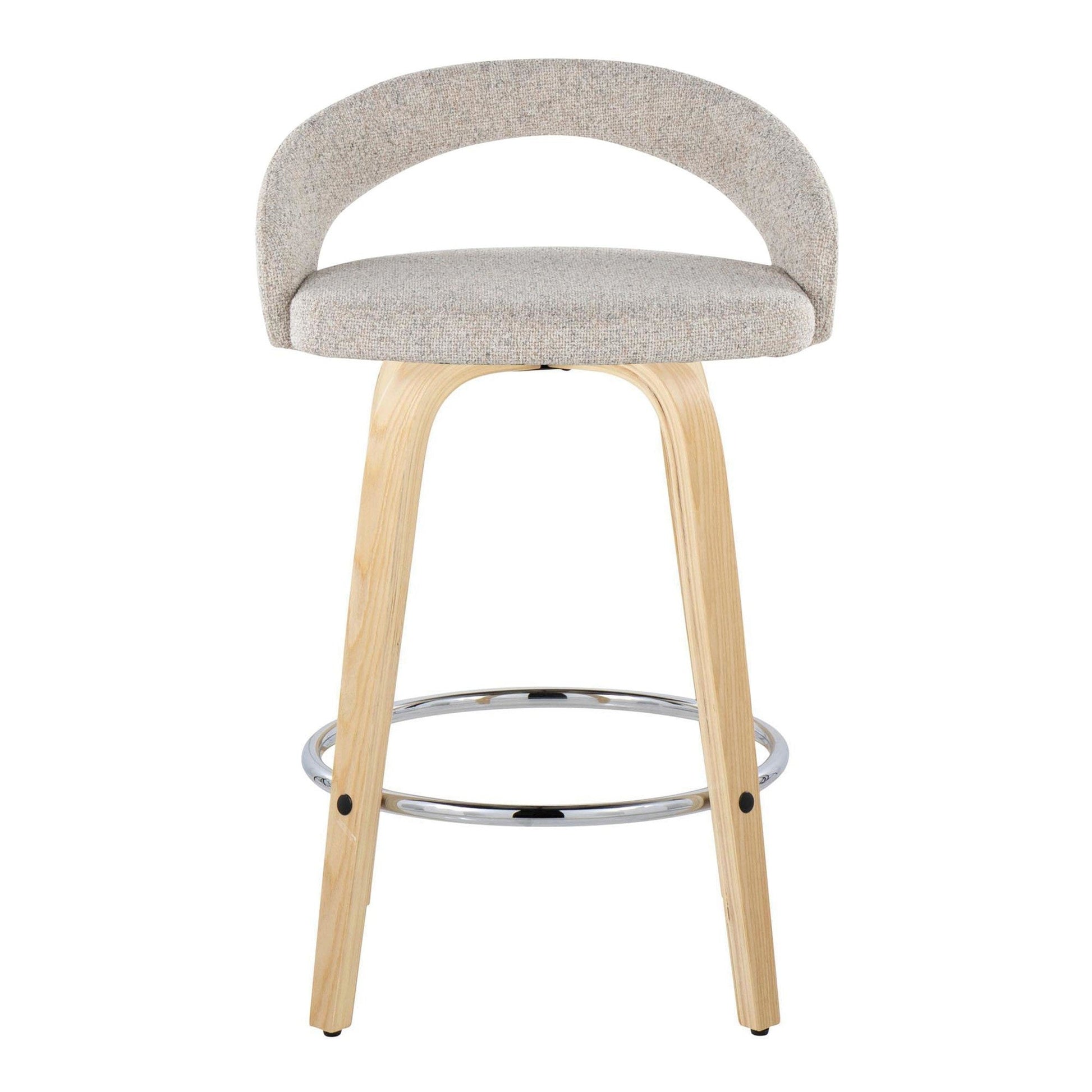 Bent wood legs with round chrome metal footrest