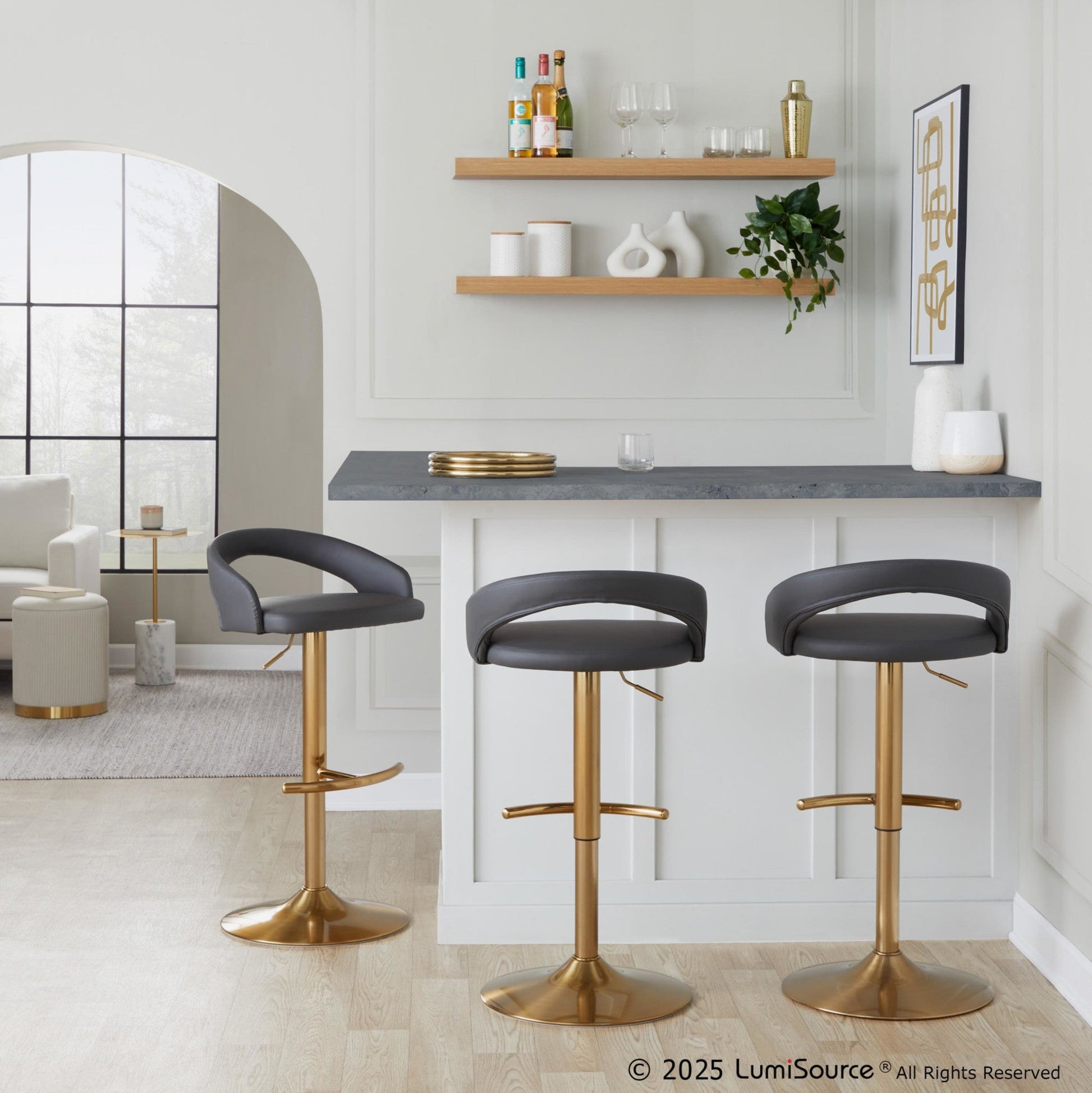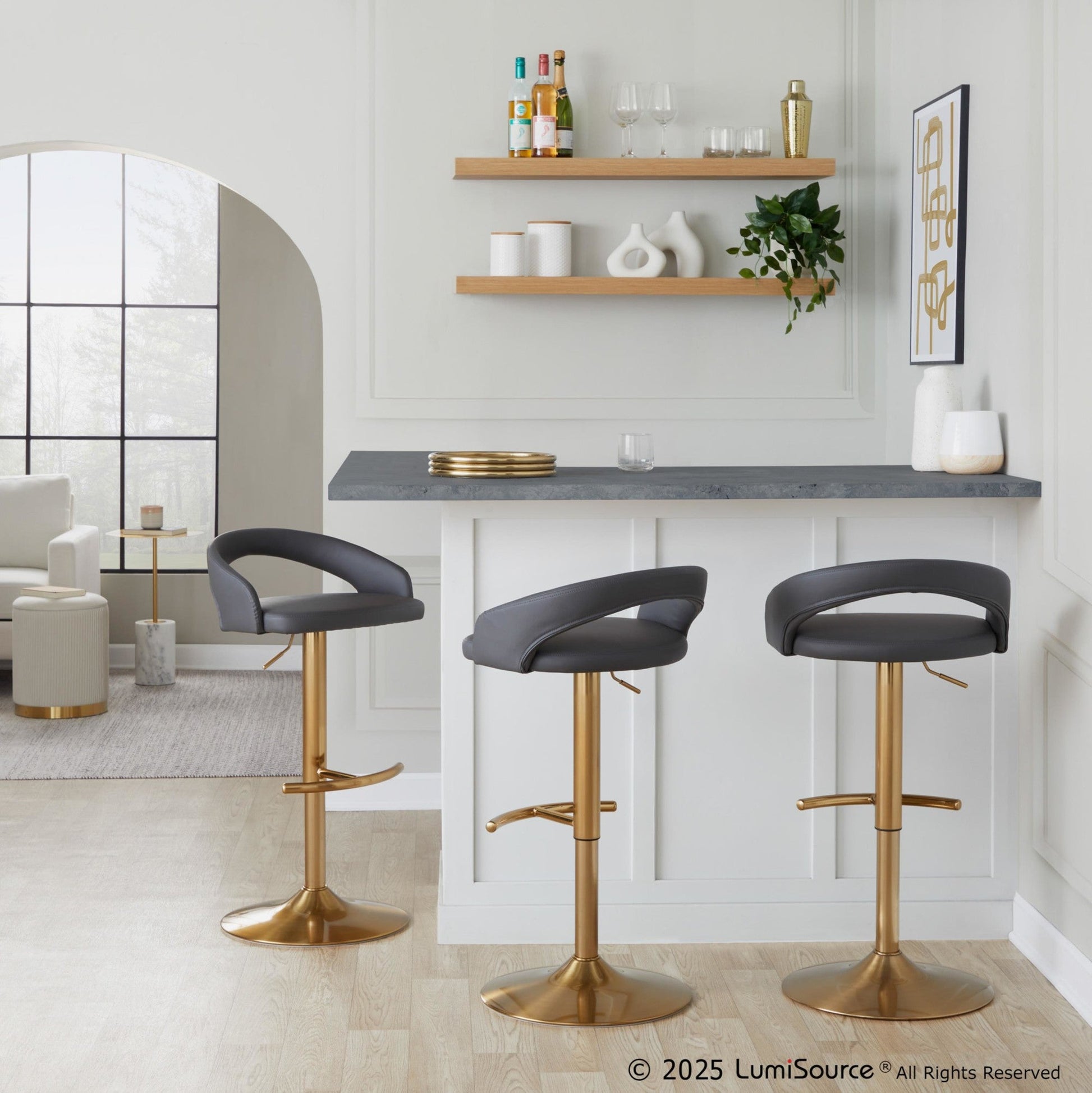 Gold metal base with rounded t footrest