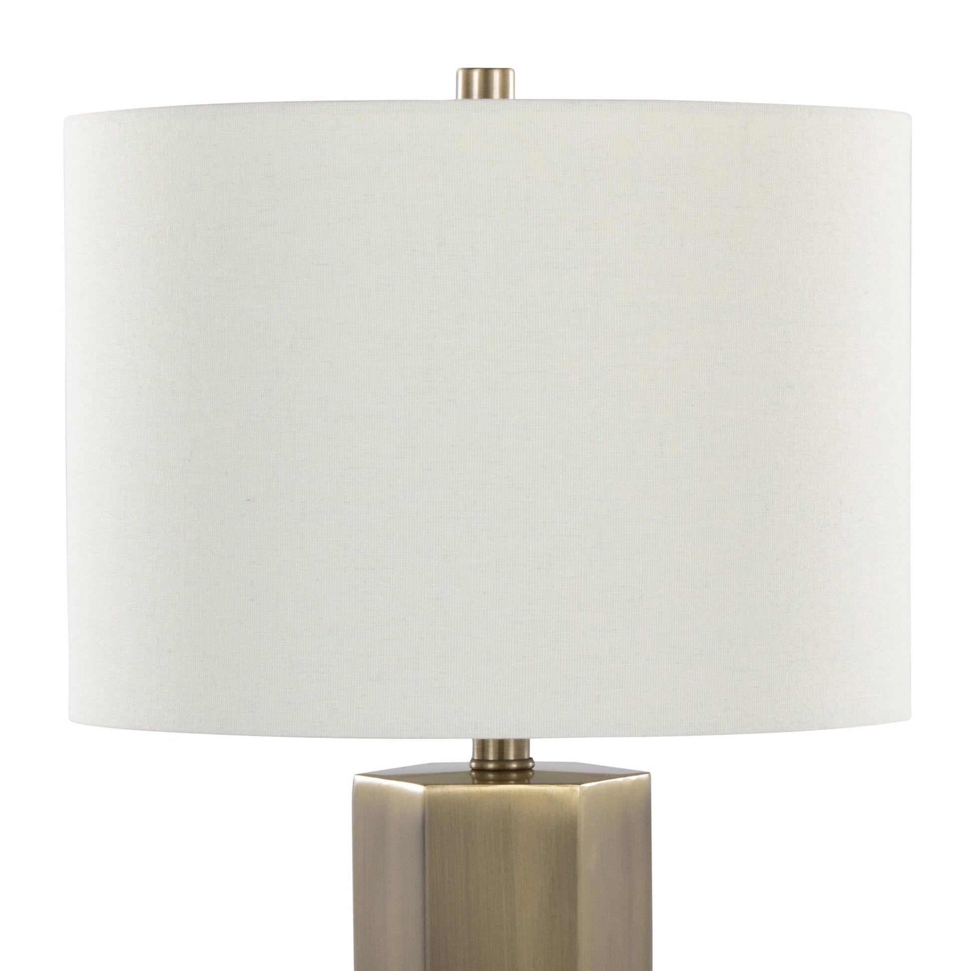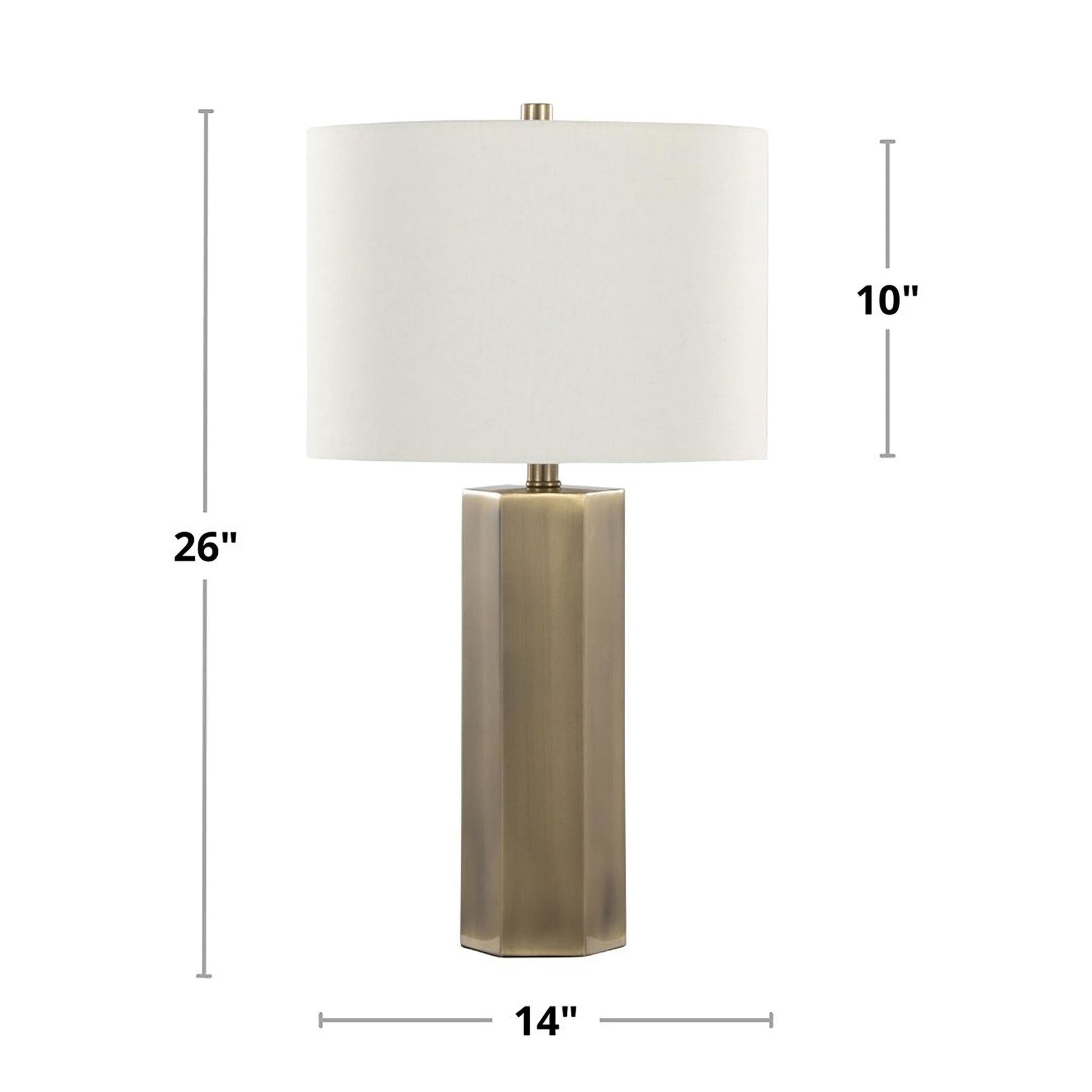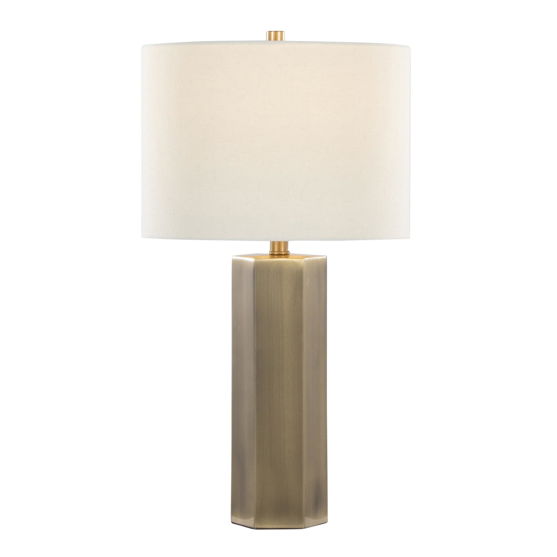 Illuminate your home with the Table Lamp by Majestic Office Furniture, where Art Deco flair meets contemporary design. The geometric hexagonal base in antique brass brings a stylish retro touch, while the soft white fabric shade provides a warm ambiance. Perfect for any space, this lamp effortlessly enhances your decor with its timeless elegance.