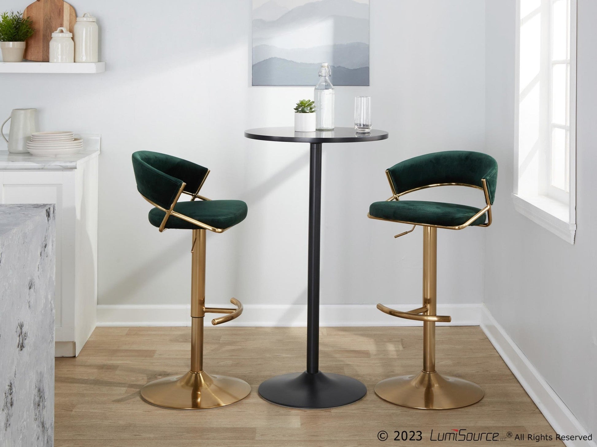 Glam and unique in design, the Adjustable Barstool by Majestic Office Furniture will look great in your kitchen or bar area. The features a sleek gold metal frame and stylish velvet upholstery. Available in a variety of colors, choose the one that suits your space.