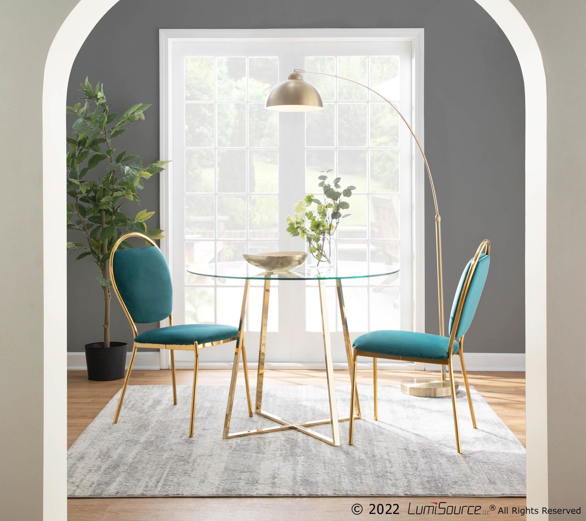 Update your contemporary glam style dining room with the sleek design of the Dining Chair by Majestic Office Furniture. These dining chairs feature a keyhole design with a unique curved metal frame and tapered legs. The gold metal frame of these chairs stands out against the stylish velvet upholstery. Available in a set of two, the Dining Chair comes in a variety of upholstery colors