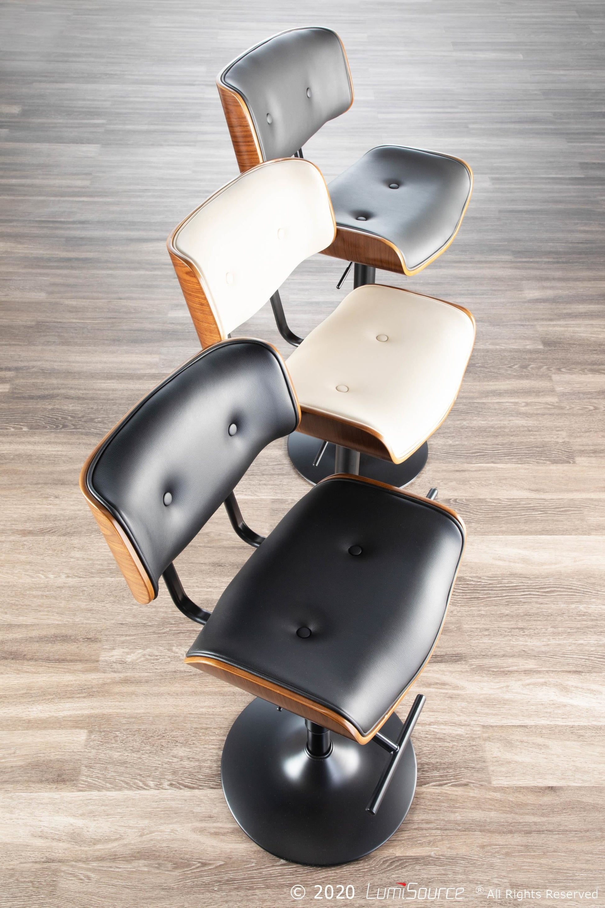 Add mid-century flair to your bar or counter area with the Majestic Office Furniture Barstool. Enjoy the plush tufted leatherette seats and backrest over bent wood providing optimal support and comfort. The adjusts to your preferred height and swivels 360 degrees. Available in three color choices, black, cream and grey, choose the color that suits your space best.