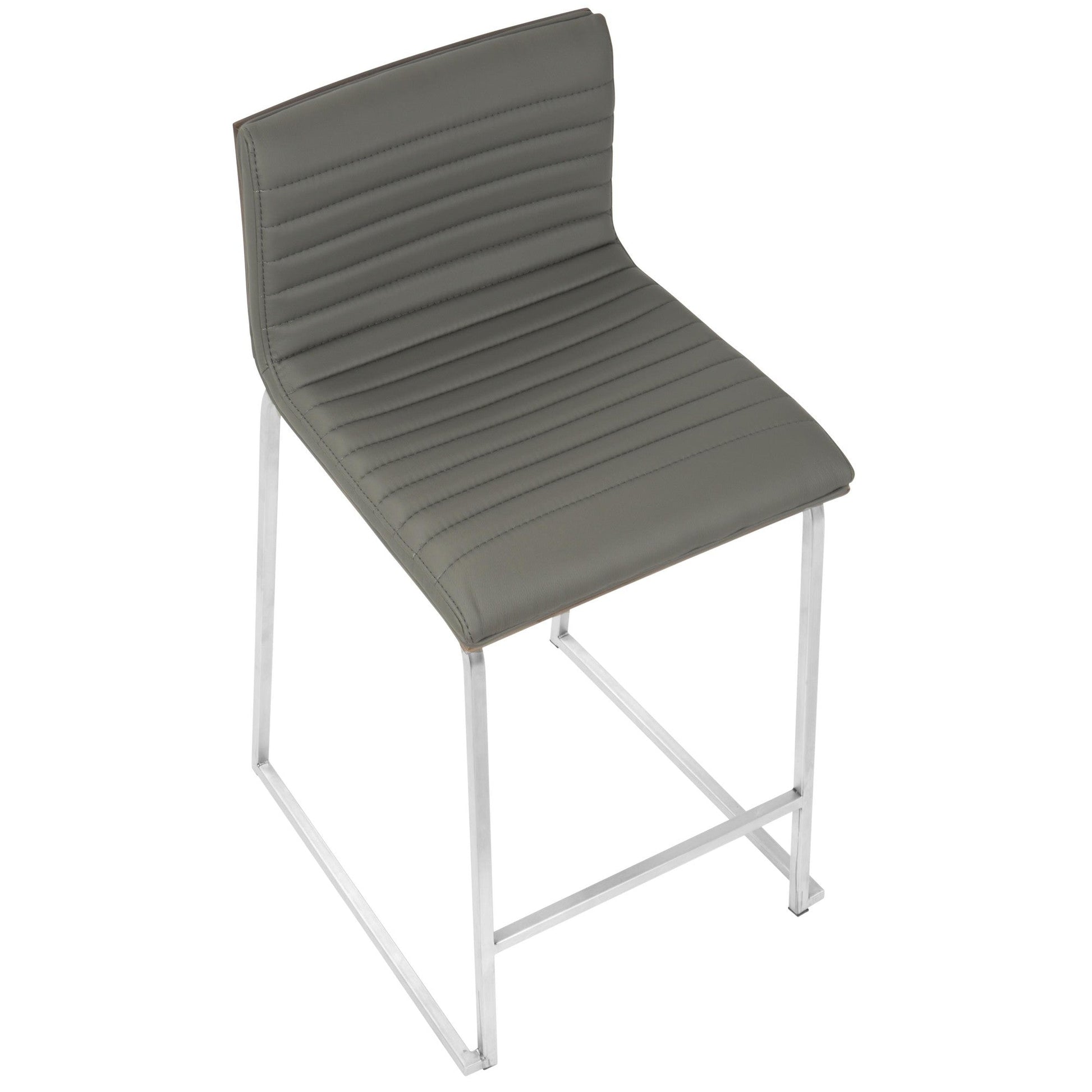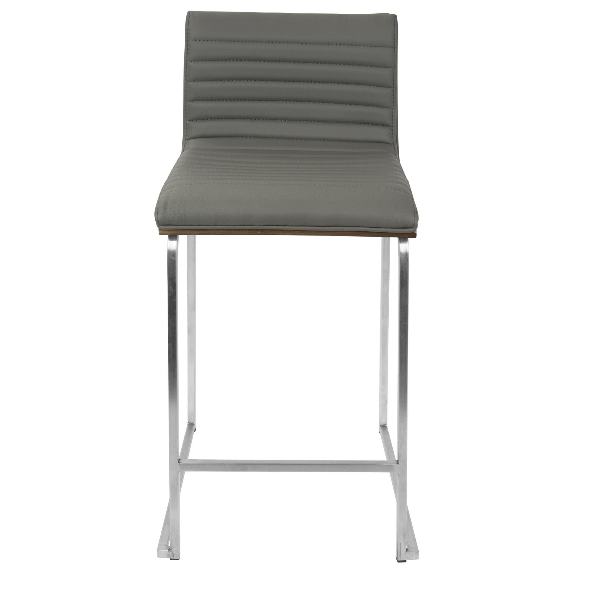 Elegant and modern, the Majestic Office Furniture Counter Stool has a simple design with gorgeous elements. Featuring a tufted faux leather seat, a solid wood back and graceful stainless steel curved footrest and legs. Great for a kitchen, bar or for extra seating in a break room. This stylish design will fit a variety of decor styles. Sold in sets of two, pick the color that suits your space the best!