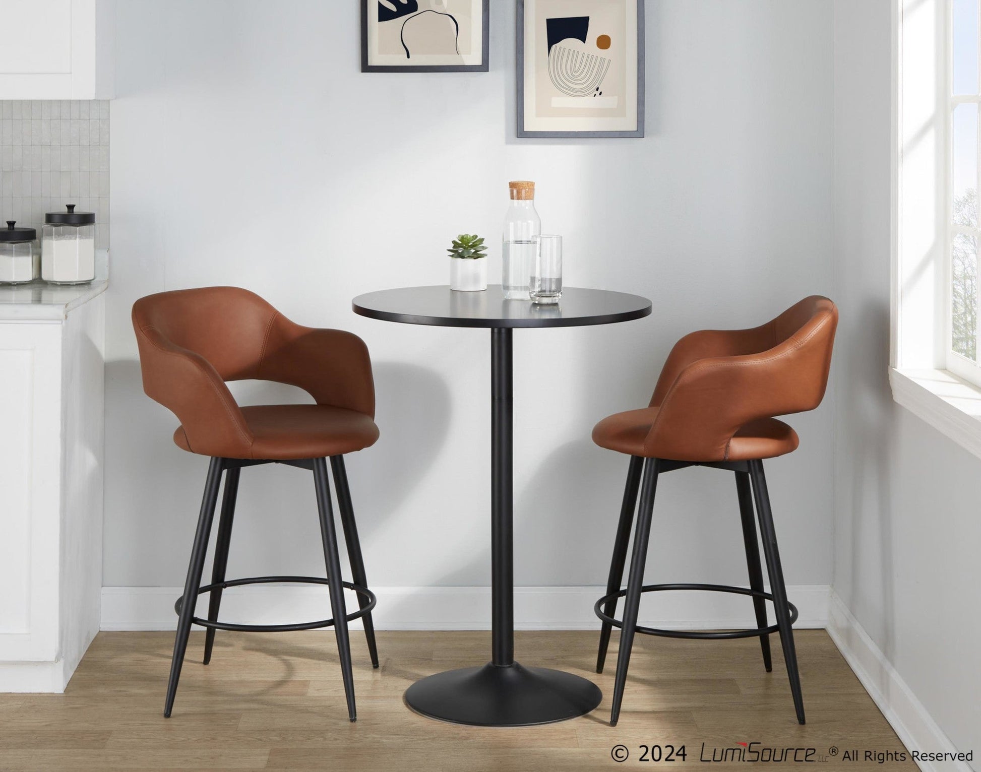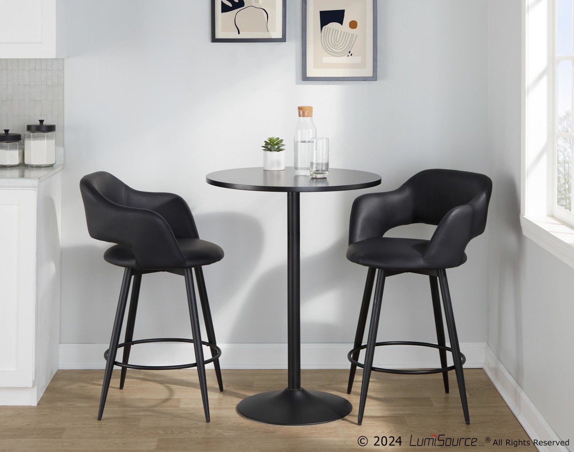 Includes two counter stools
