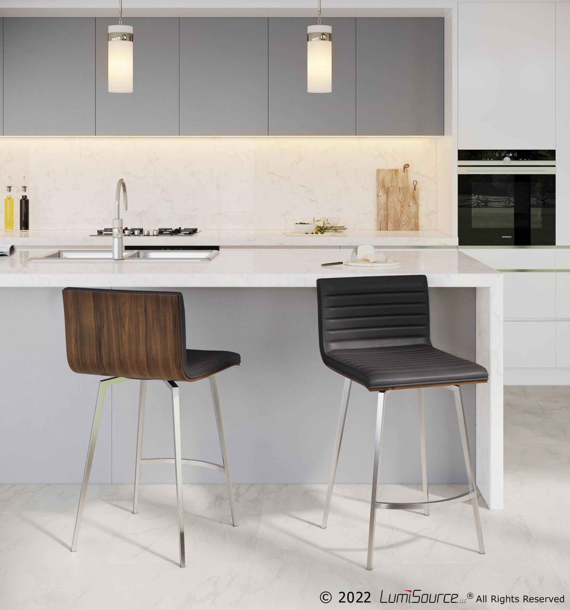 Bentwood Cn Aspen Poplar, Brushed Stainless Steel, Foam, PU Leather, Wood