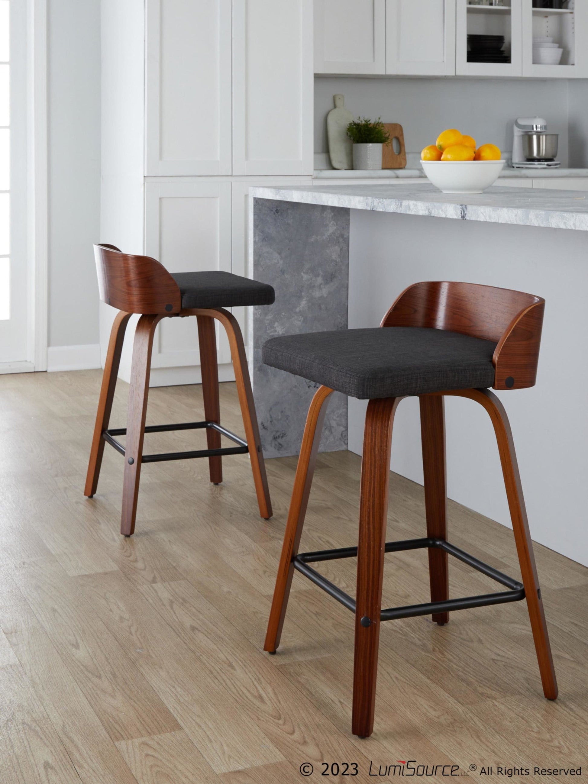 Includes two counter stools