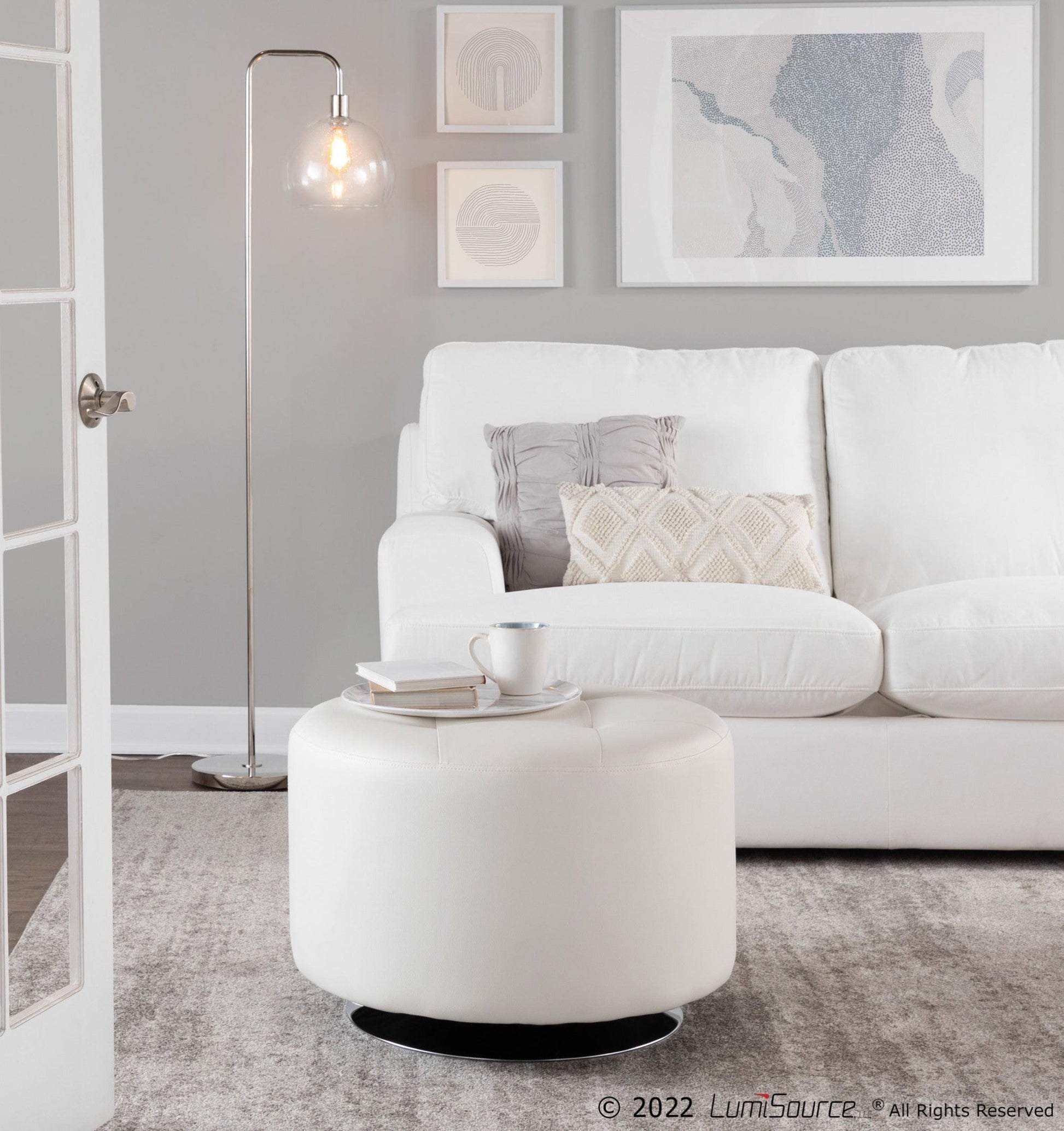 The Floor Lamp from Grandview Gallery by Majestic Office Furniture is sure to catch the eyes of anyone in its presence. This lamp features a speckled glass shade and allows you to admire the beautifully exposed bulb that will illuminate any dark corner or space within your home. Its sleek body and base come in several finishes, so choose one that suits you best today!