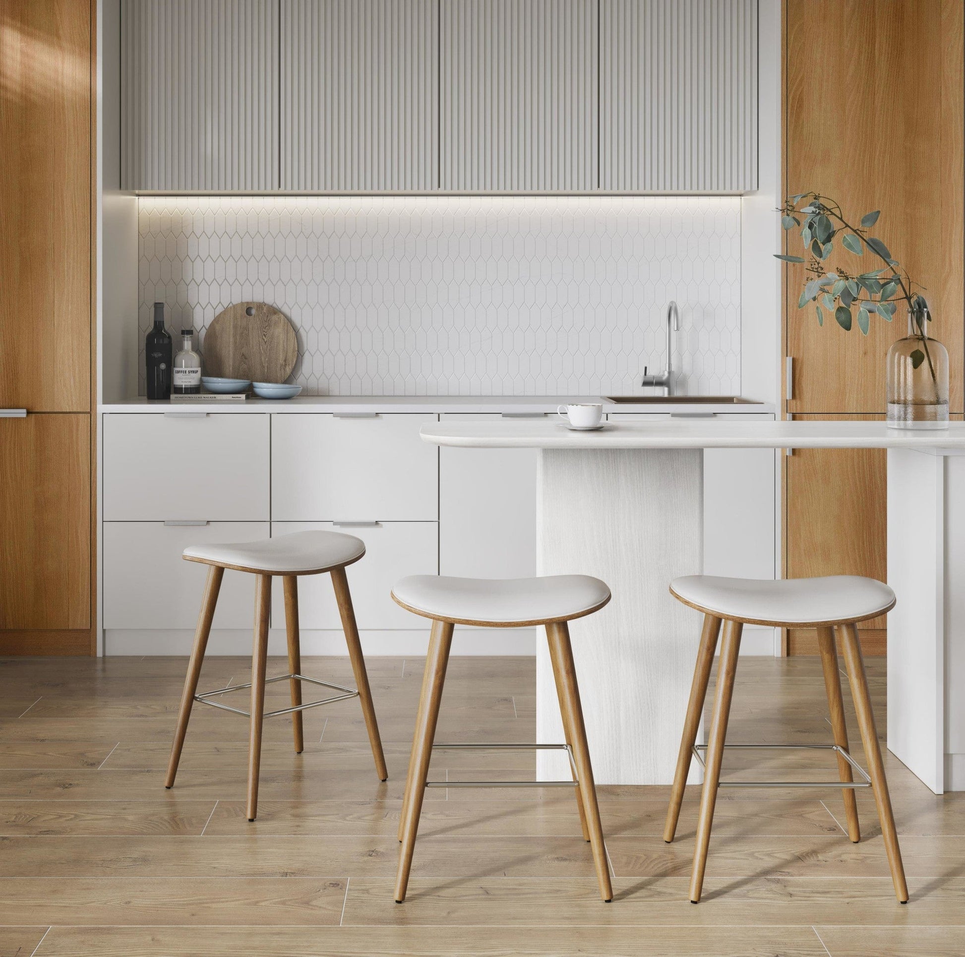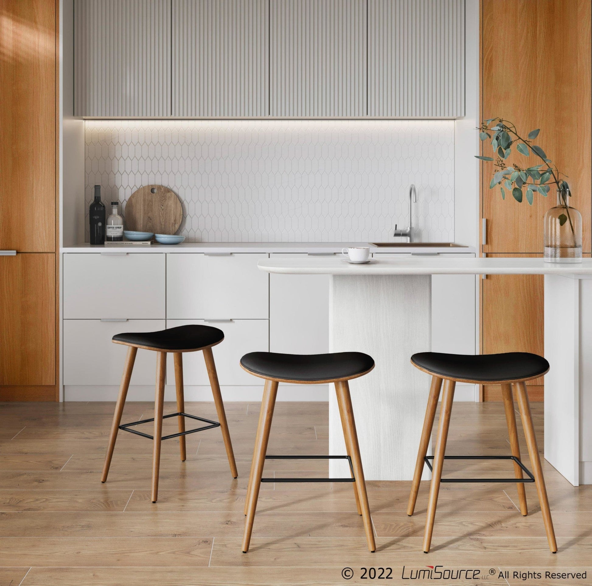 Ultimate comfort meets the ultimate style in the Counter Stool by Majestic Office Furniture. With a generous contoured faux leather seat atop tapered wood legs and metal footrests, this fixed-base stool puts you... in the saddle.