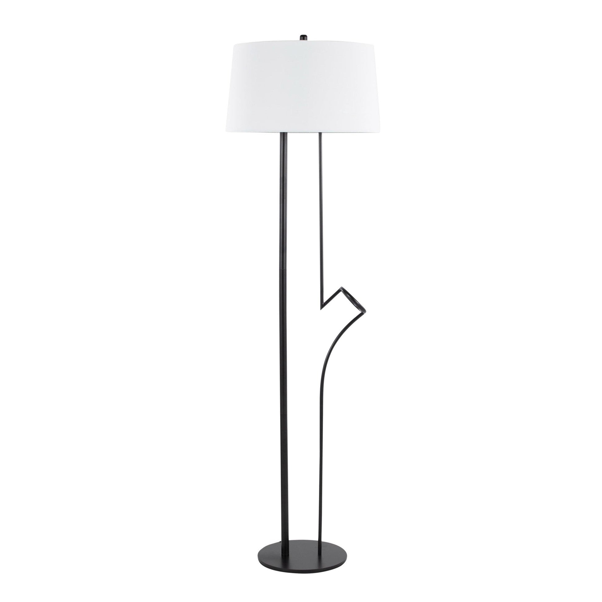 Asymmetrical in silhouette, the Floor Lamp by Majestic Office Furniture has a black metal base and a white linen Shade. This unique floor lamp will create an updated motif in any modern space.