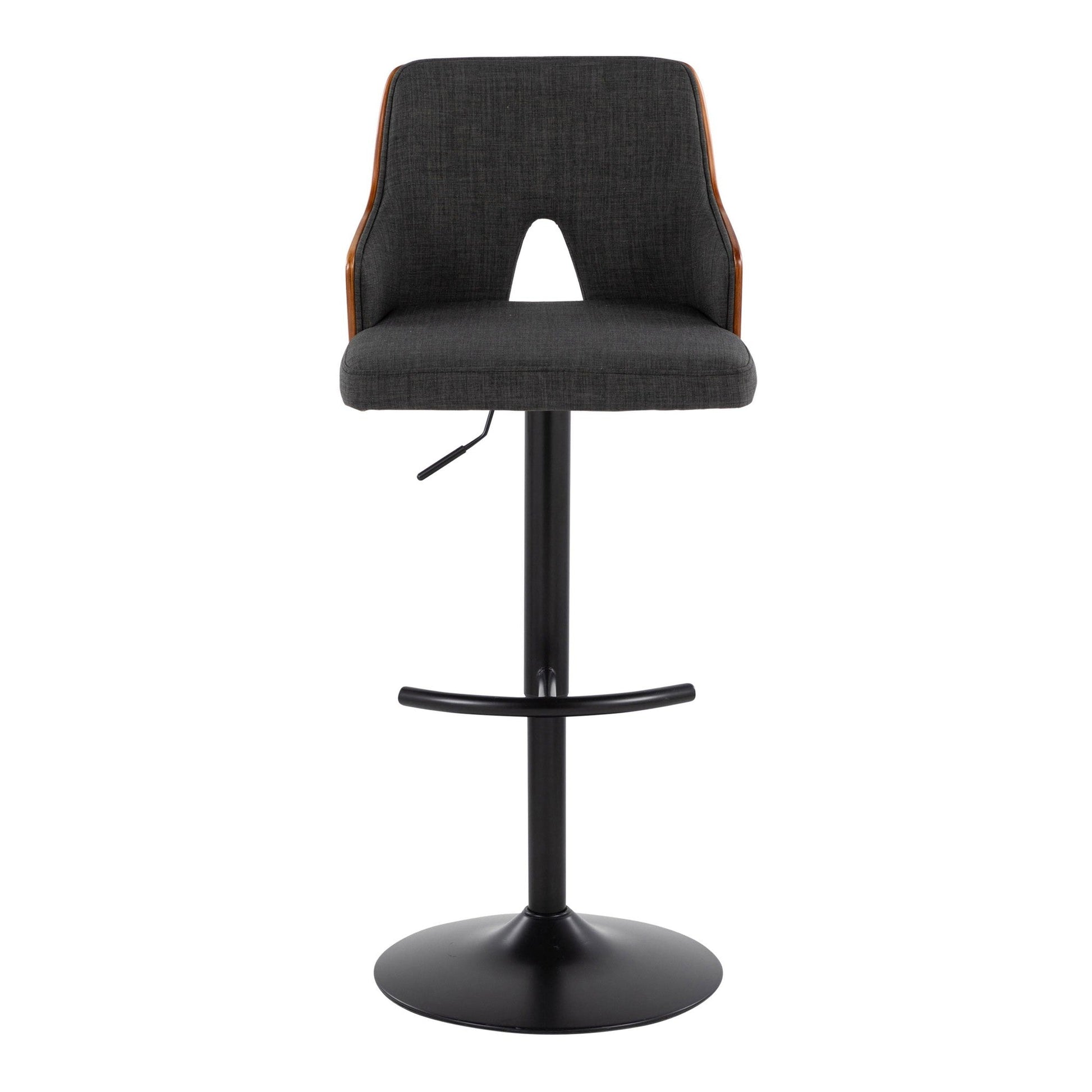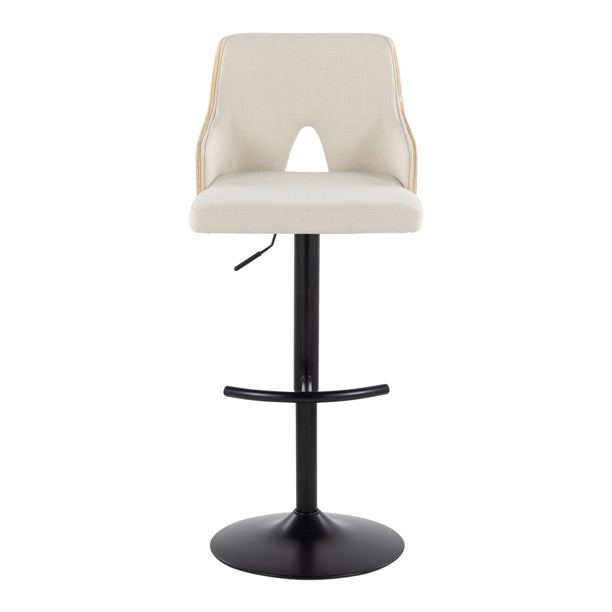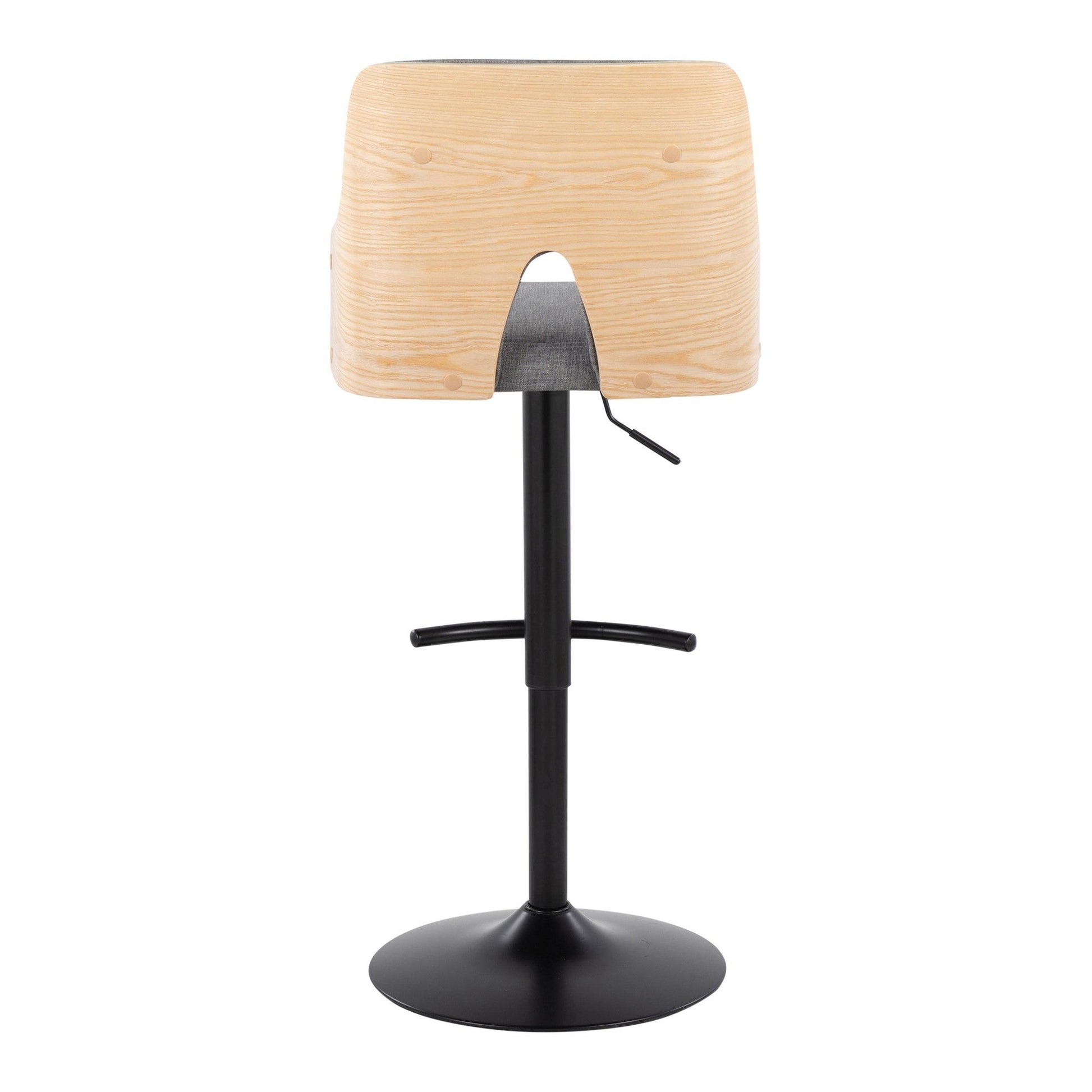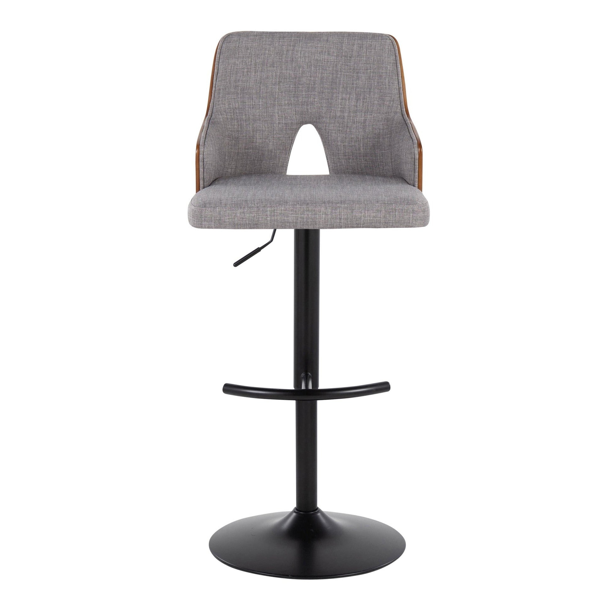 With its peek-a-boo wood back, the Adjustable Barstool by Majestic Office Furniture is both playful and refined, spirited and sophisticated. Add the understated wood armrests, fabric seat, and adjustable metal base, this design is perfect for any space or decor style. Available in various color.